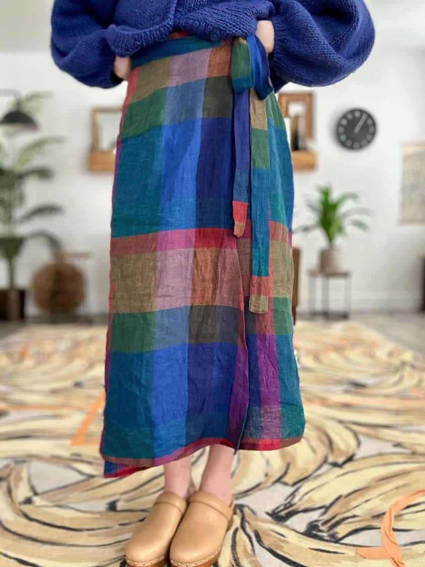 from Peppermint Magazine by Instagram user @emilymadethisstuff in our 100% Linen Multi Color Plaid 7167
