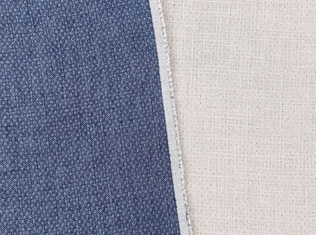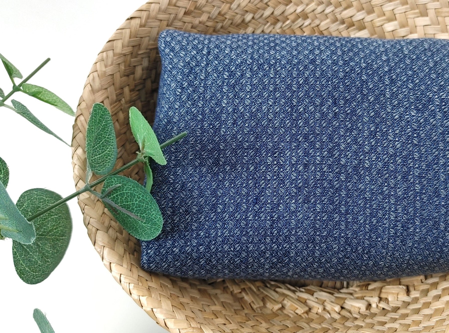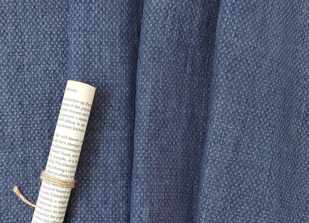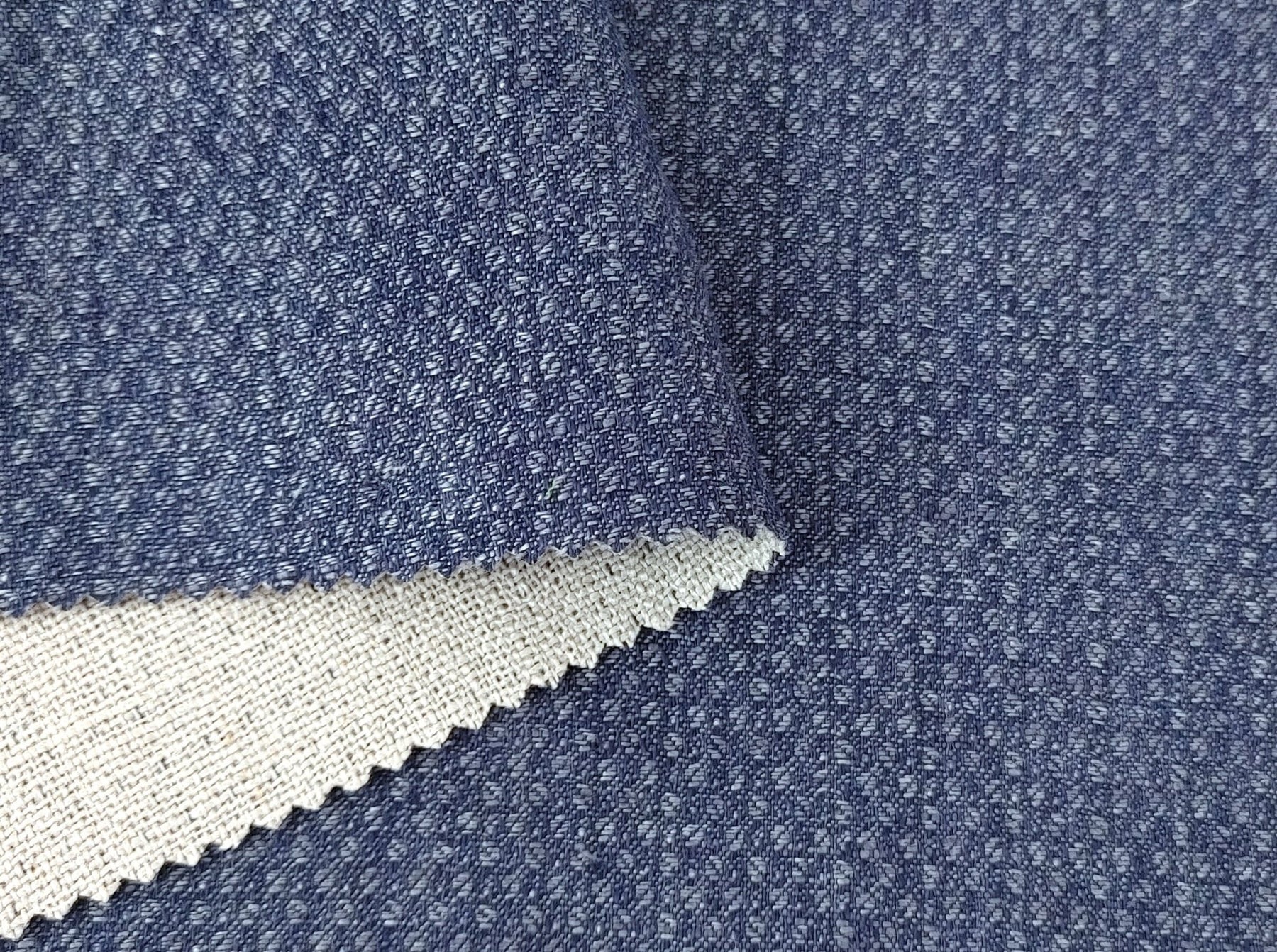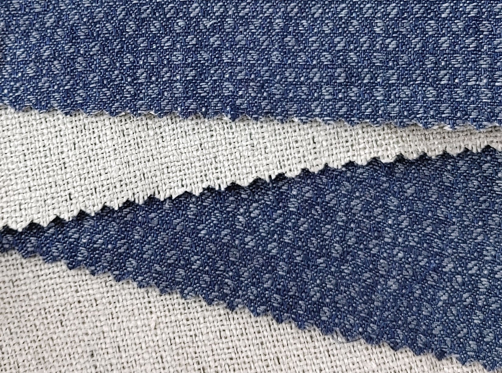 This remarkable fabric is not just heavy in weight but also features a unique double face construction, adding to its allure. On one side, revel in the intricacies of a dobby weave crafted with linen yarn 14s, while the other side presents a plain weave, skillfully woven with linen yarn 5s. The result is a fabric with a very special weaving structure that showcases a dual personality.