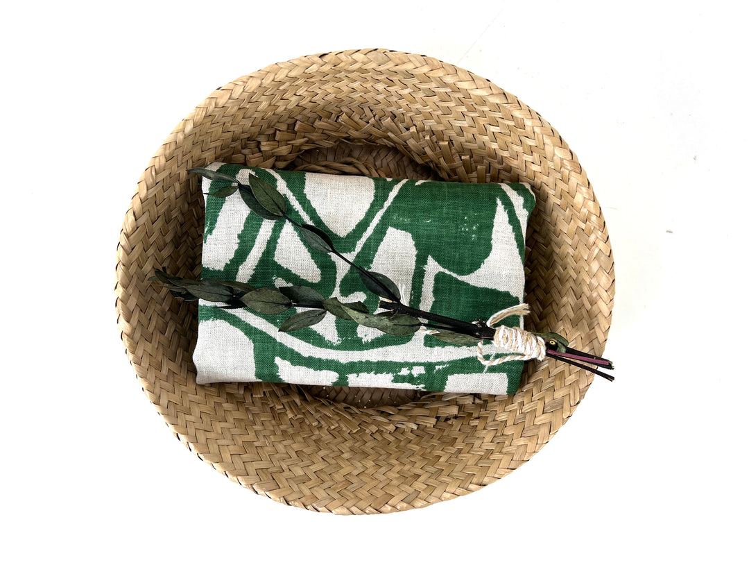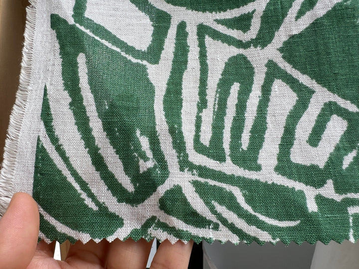 100% Linen Fabric – Green Abstract Print, Light to Medium Weight, Pre-Washed 4036