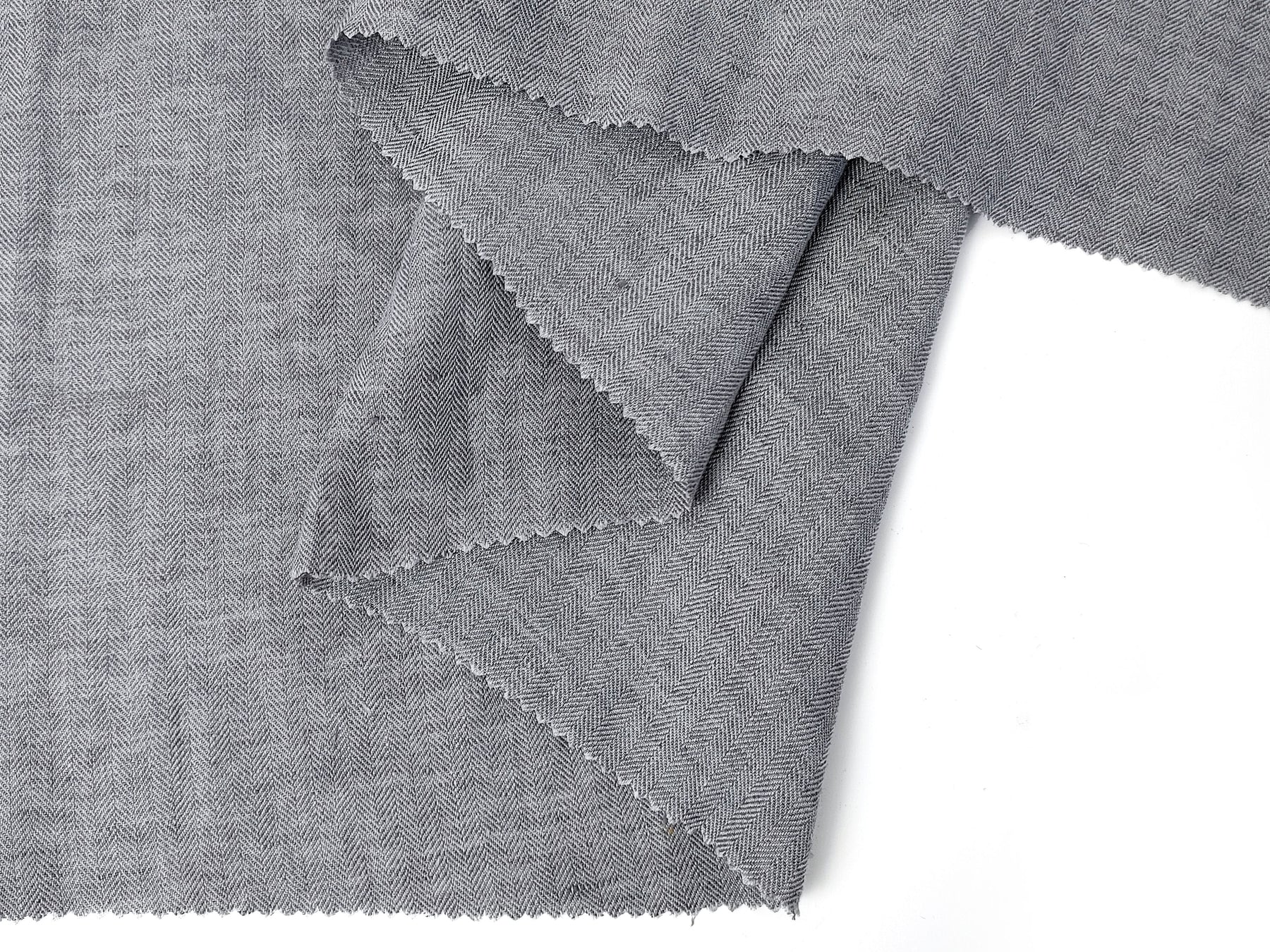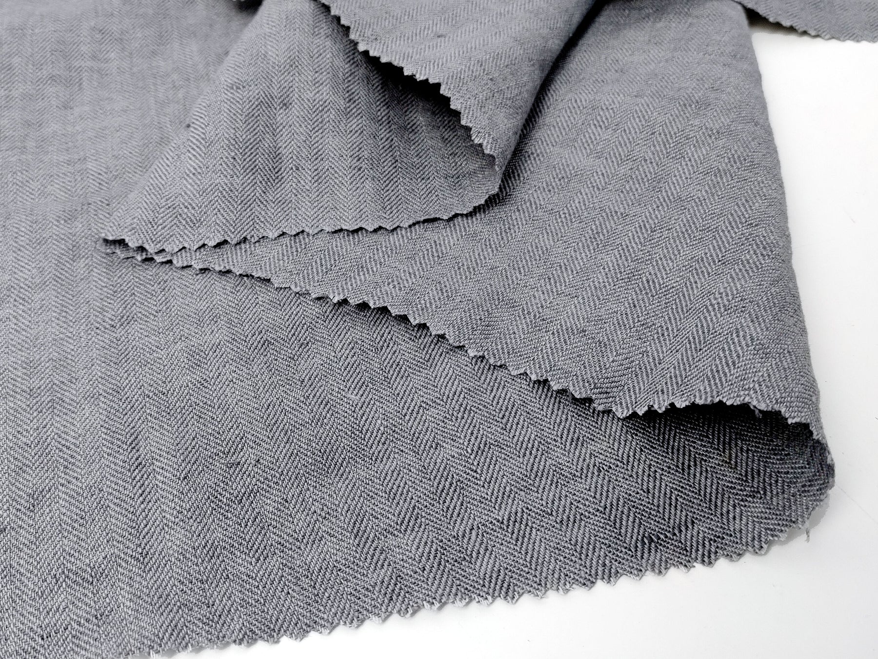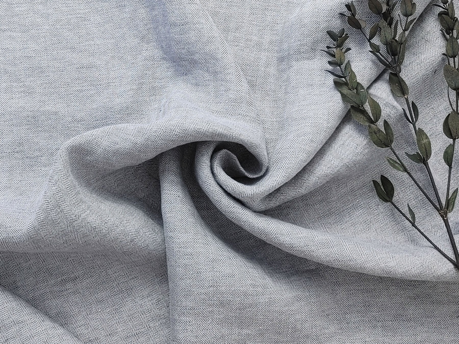 This 100% linen fabric is made with fine 14s linen yarn, featuring a stunning grey chambray effect. The light grey warp and darker grey weft create a beautiful contrast, enhanced by the herringbone twill (HBT) weave. With a medium weight (204 g/sqm or 6.0 oz/sq yard) and a pre-washed, soft handfeel, this fabric offers both texture and comfort. It’s perfect for projects that require a durable yet stylish fabric with a natural, relaxed look.