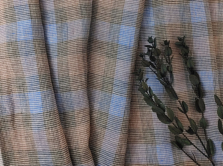 100% Linen, Medium Weight, Modified Star Check Pattern 7179 - The Linen Lab - Brown