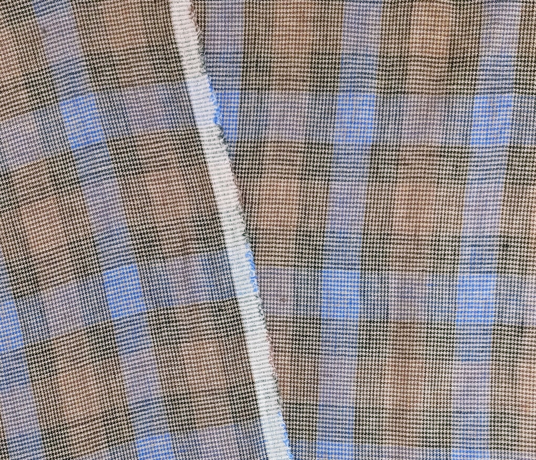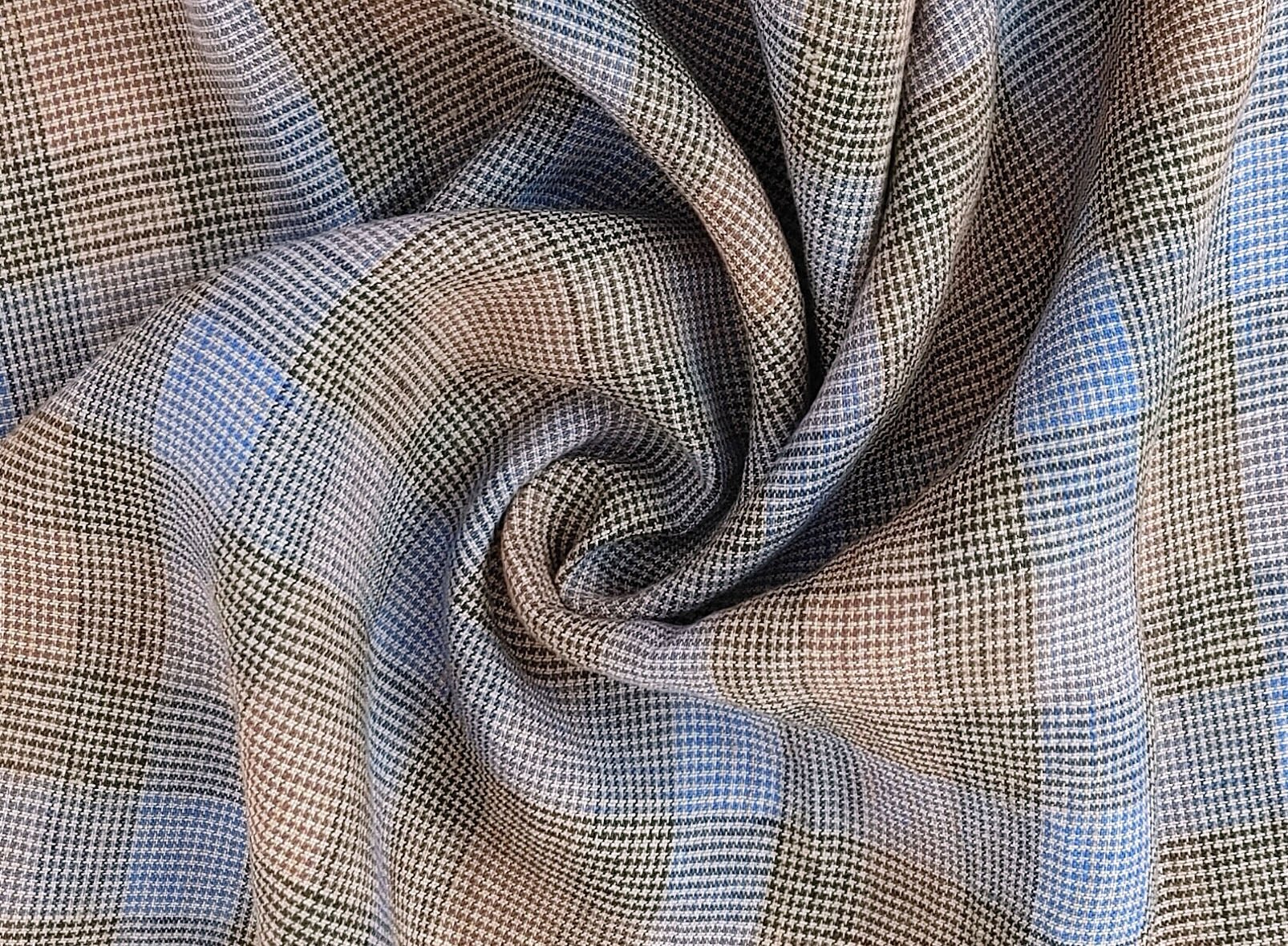Discover our 100% Linen Fabric with a Medium Weight and a Modified Star Check Pattern. This fabric features a subtle combination of small star-check patterns in various colors. The warp and weft consist of fine linen 16s, ensuring a smooth and comfortable feel.