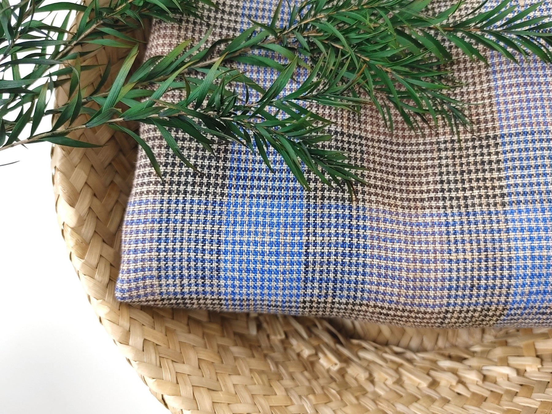 With a width of 52 inches (132cm) and a weight of 155 g/sqm (4.56 oz per square yard), this fabric is suitable for a variety of projects. The pre-washed softness adds to its appeal, and it lacks elasticity for a simple and straightforward option. Embrace the understated charm of this Modified Star Check Pattern Linen for your creative endeavors.