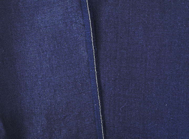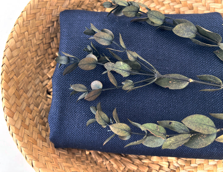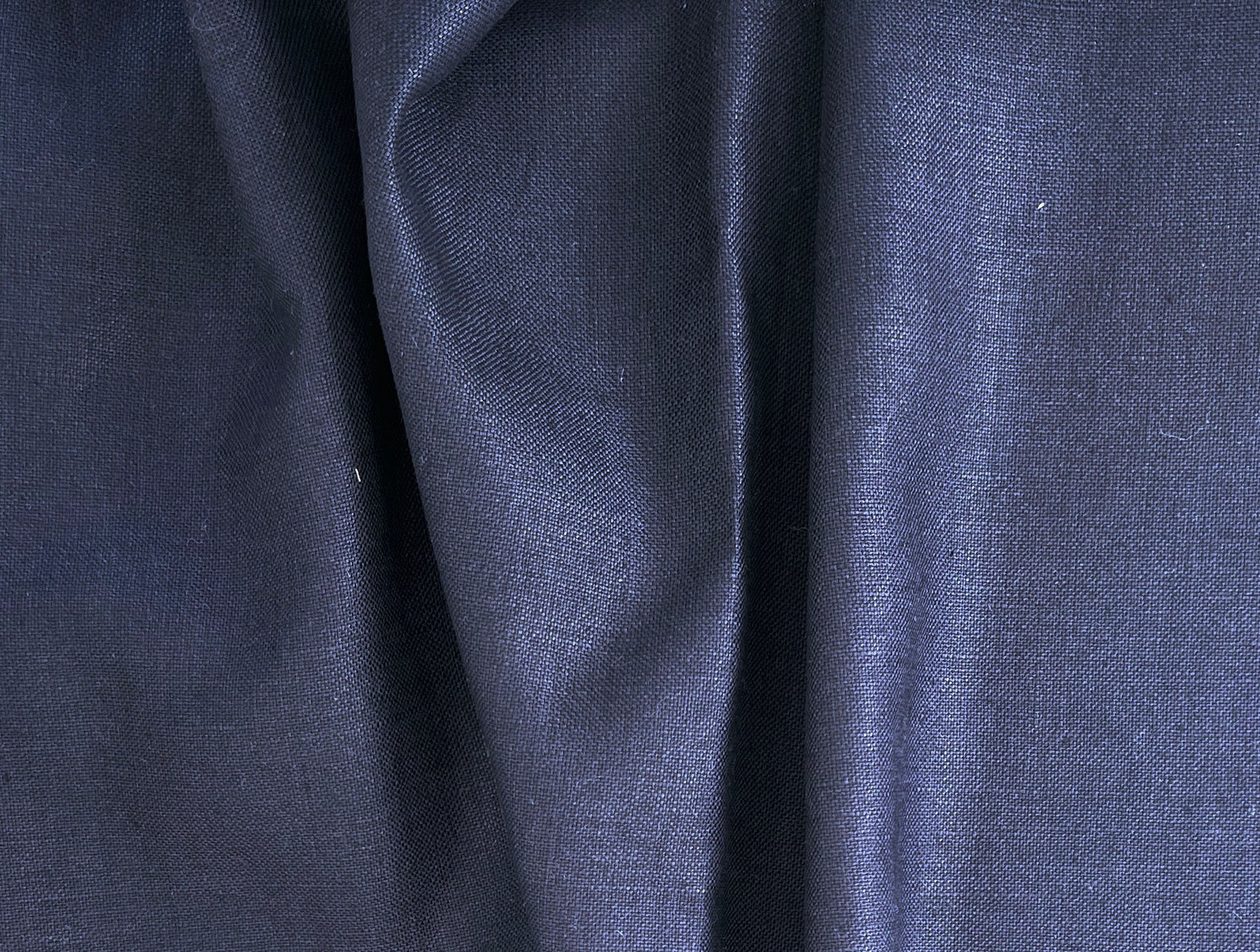 This 100% linen fabric is woven in a 2:1 mat canvas structure, giving it a durable yet refined texture. With its deep navy color and substantial weight, it offers both strength and elegance.