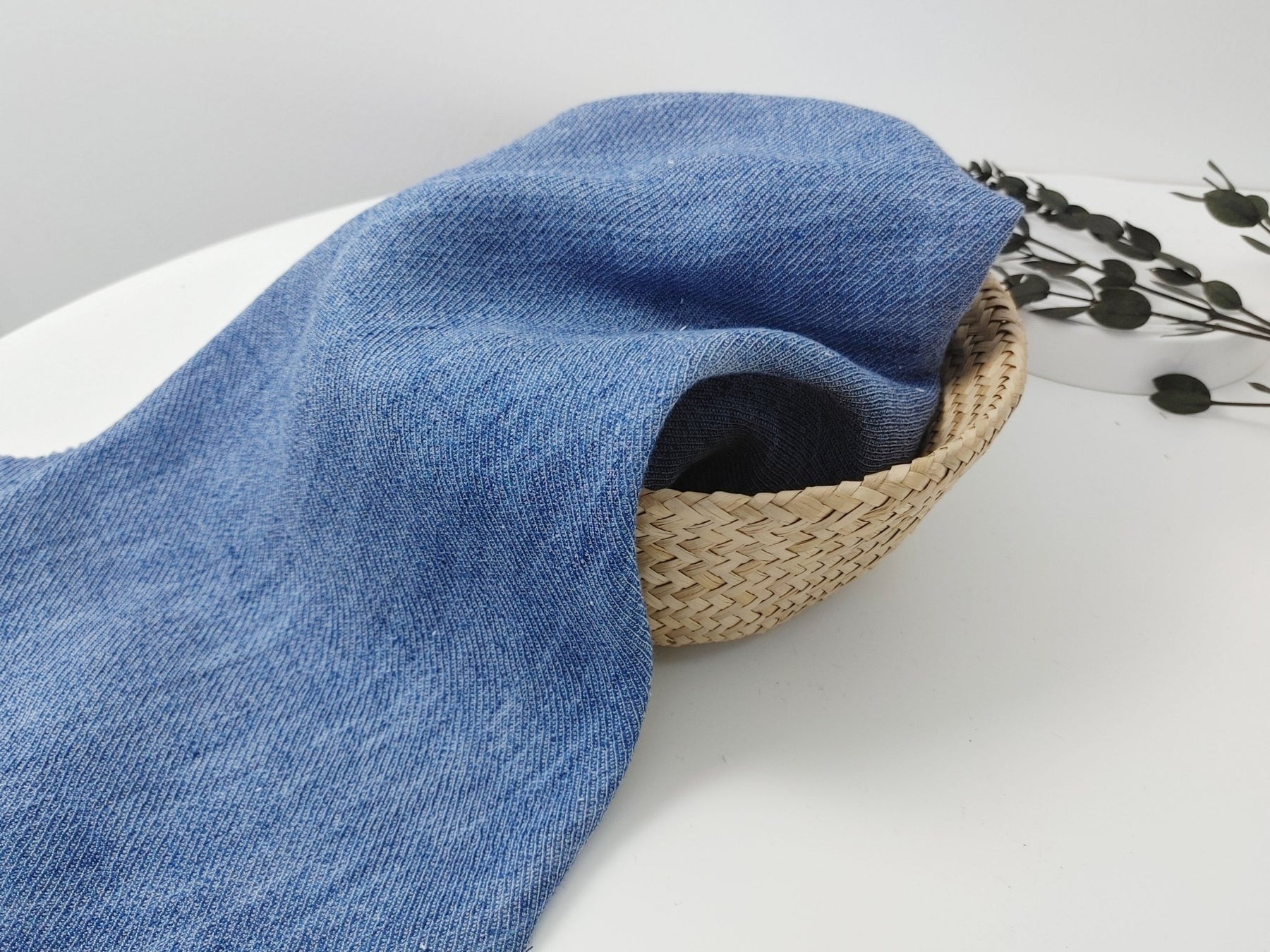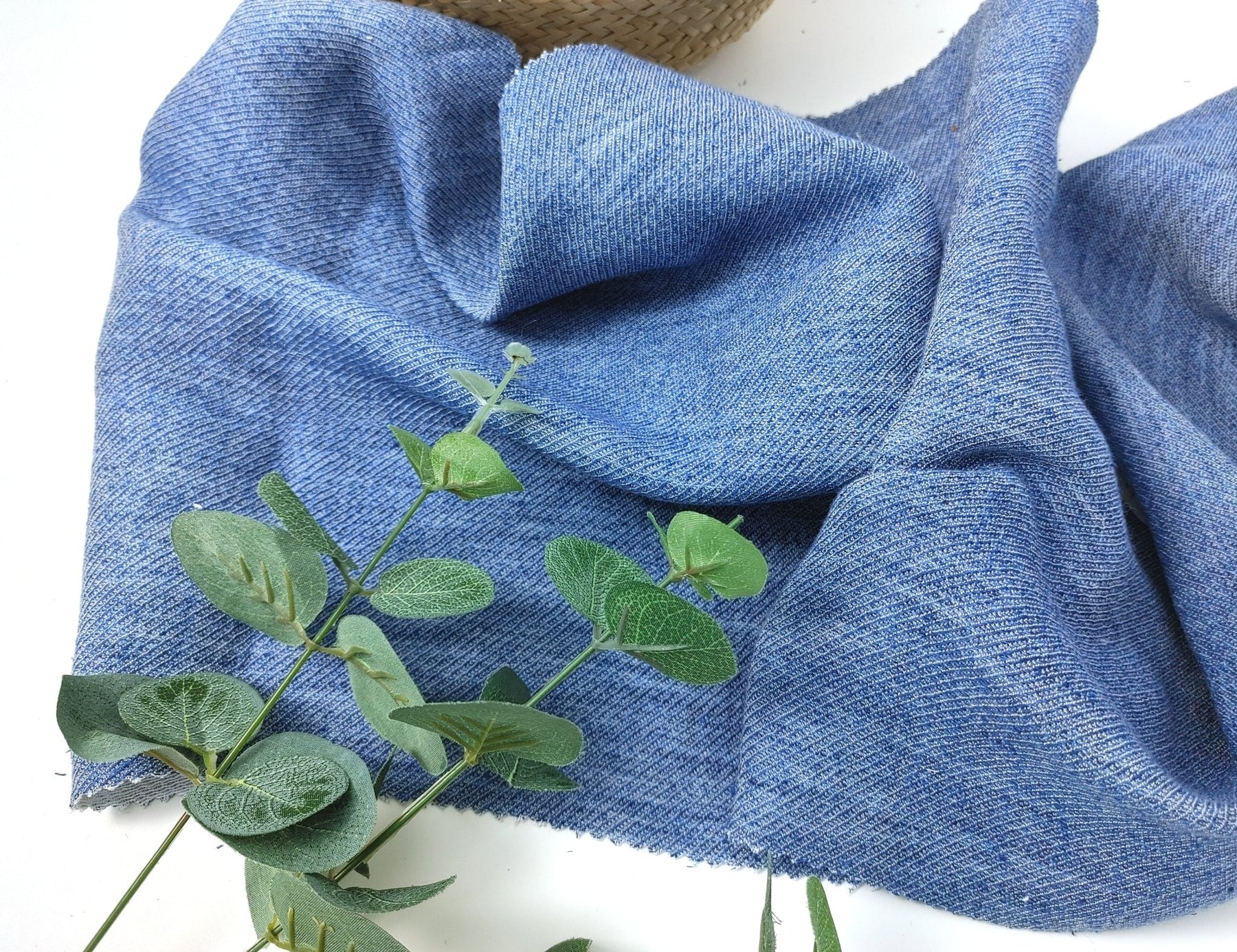 This fabric features a reversible design with one side in blue and the other side in white. With a composition of 32% Linen, 35% Rayon, and 33% Cotton, it offers a balanced blend of natural fibers. The medium weight of 218 g/sqm (6.42 oz per square yard) makes it suitable for various projects. Measuring 55 inches (140 cm) in width, it provides ample space for creative endeavors. The pre-washed fabric has a soft handfeel, ensuring comfort, while the absence of elasticity adds stability to your creations.