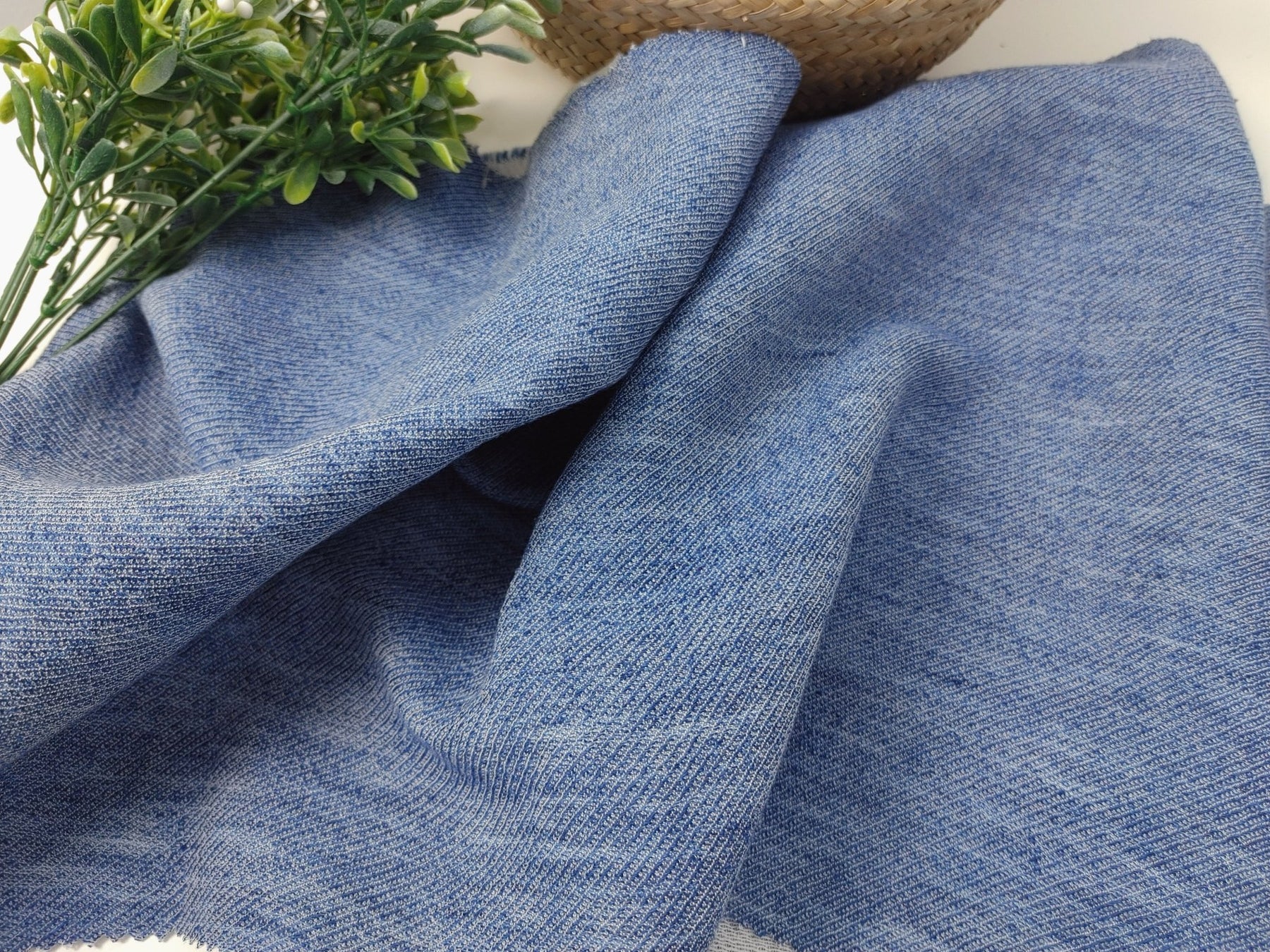 Blue Linen Rayon Cotton Blend Semi-Double-Face Fabric 7146 - The Linen Lab - Blue