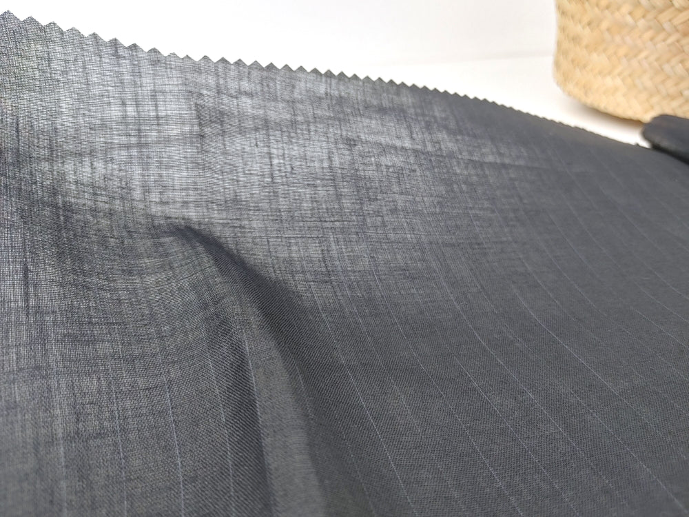 Elevate your sewing projects with our exquisite 100% Ramie fabric, showcased in a sophisticated black hue with a subtle stripe pattern. This fabric offers a perfect balance of elegance and practicality, making it an ideal choice for a variety of applications. The lightweight nature, at 100 g/sqm (2.96 oz per square yard), ensures comfort and ease of wear, while the soft handfeel adds a luxurious touch to any garment or accessory.