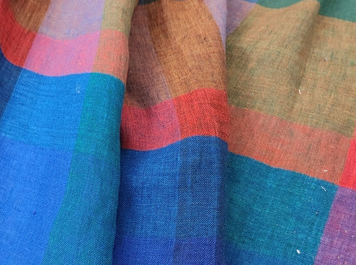 A vibrant blend of blue, green, red, and orange for a uniquely eye-catching design. Weighing at 149 g/sqm or 4.4 oz per square yard, this lightweight linen offers a soft, pre-washed handfeel, ensuring comfort in every use. With no elasticity, it's an ideal choice for a range of projects, effortlessly combining timeless elegance with a modern twist. Elevate your creations with this distinctive and high-quality linen fabric.