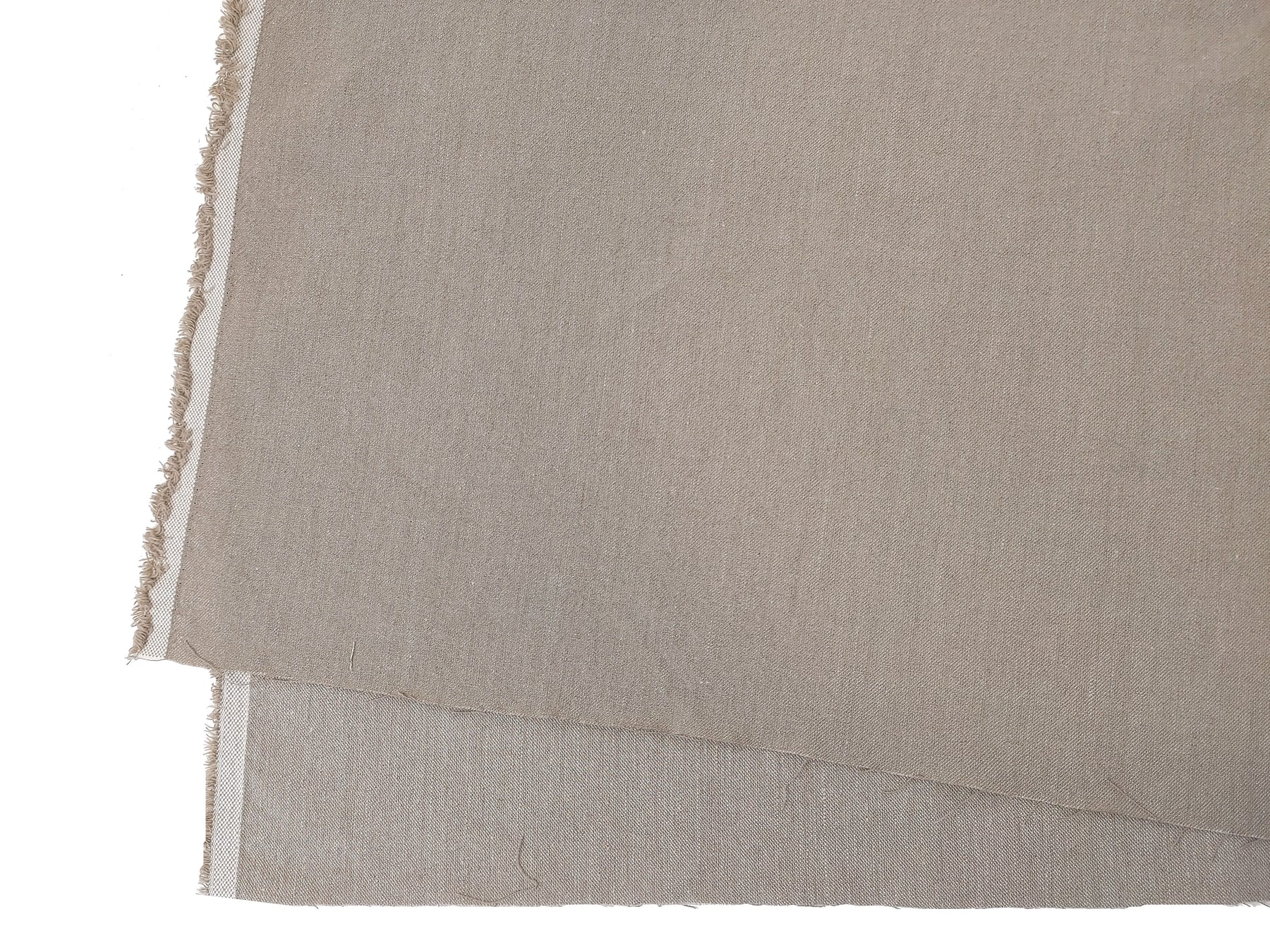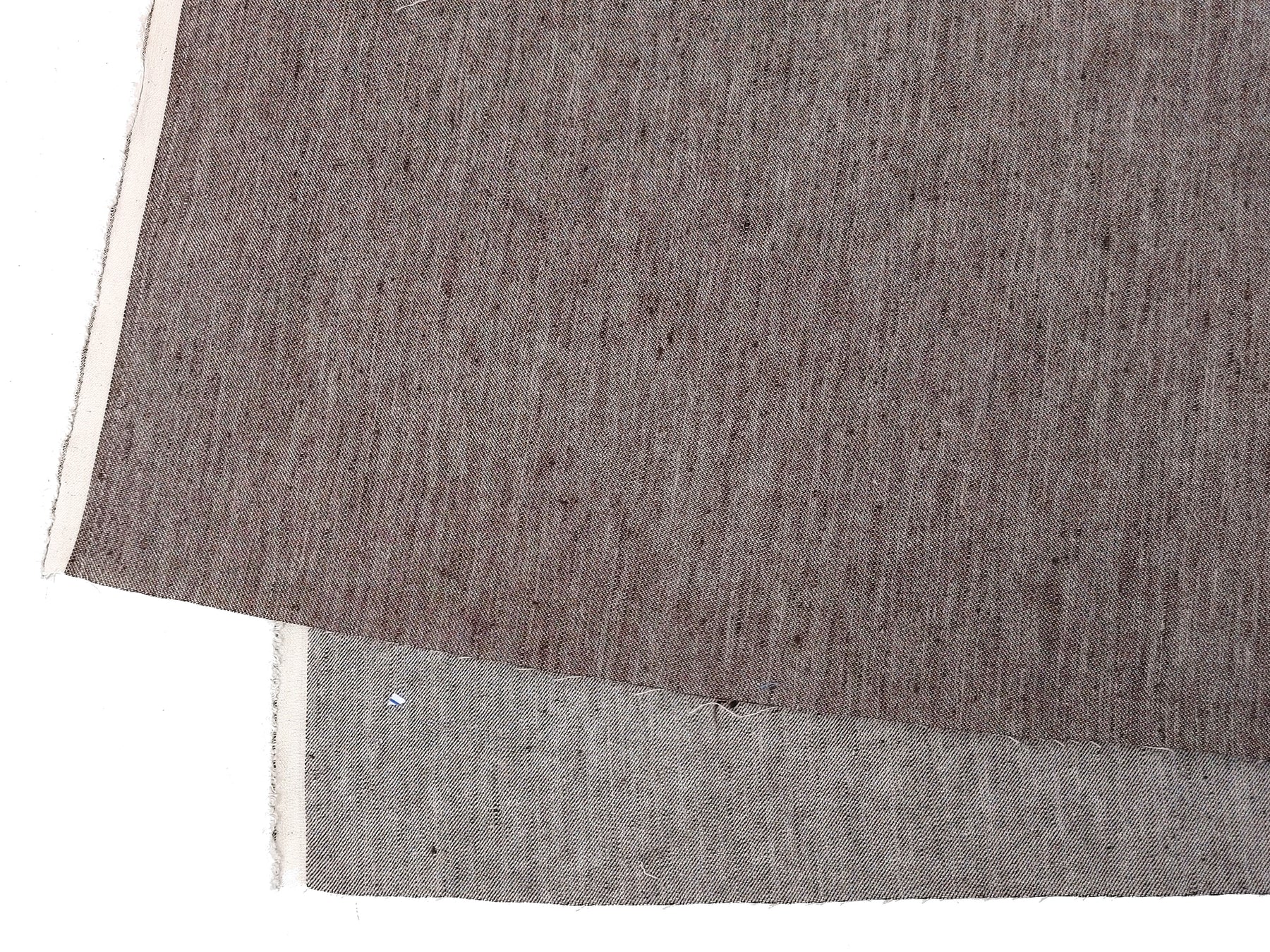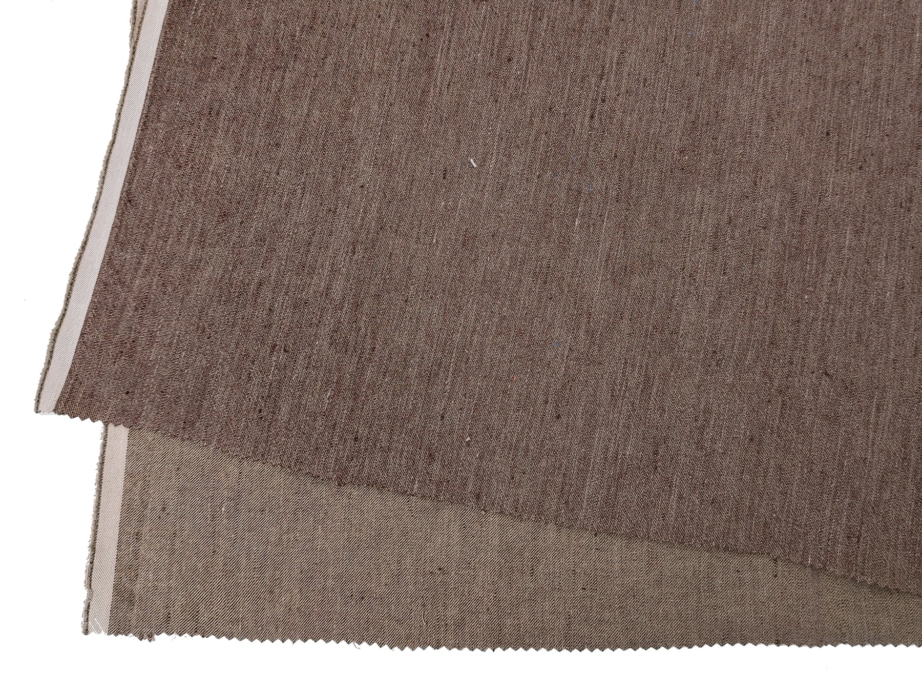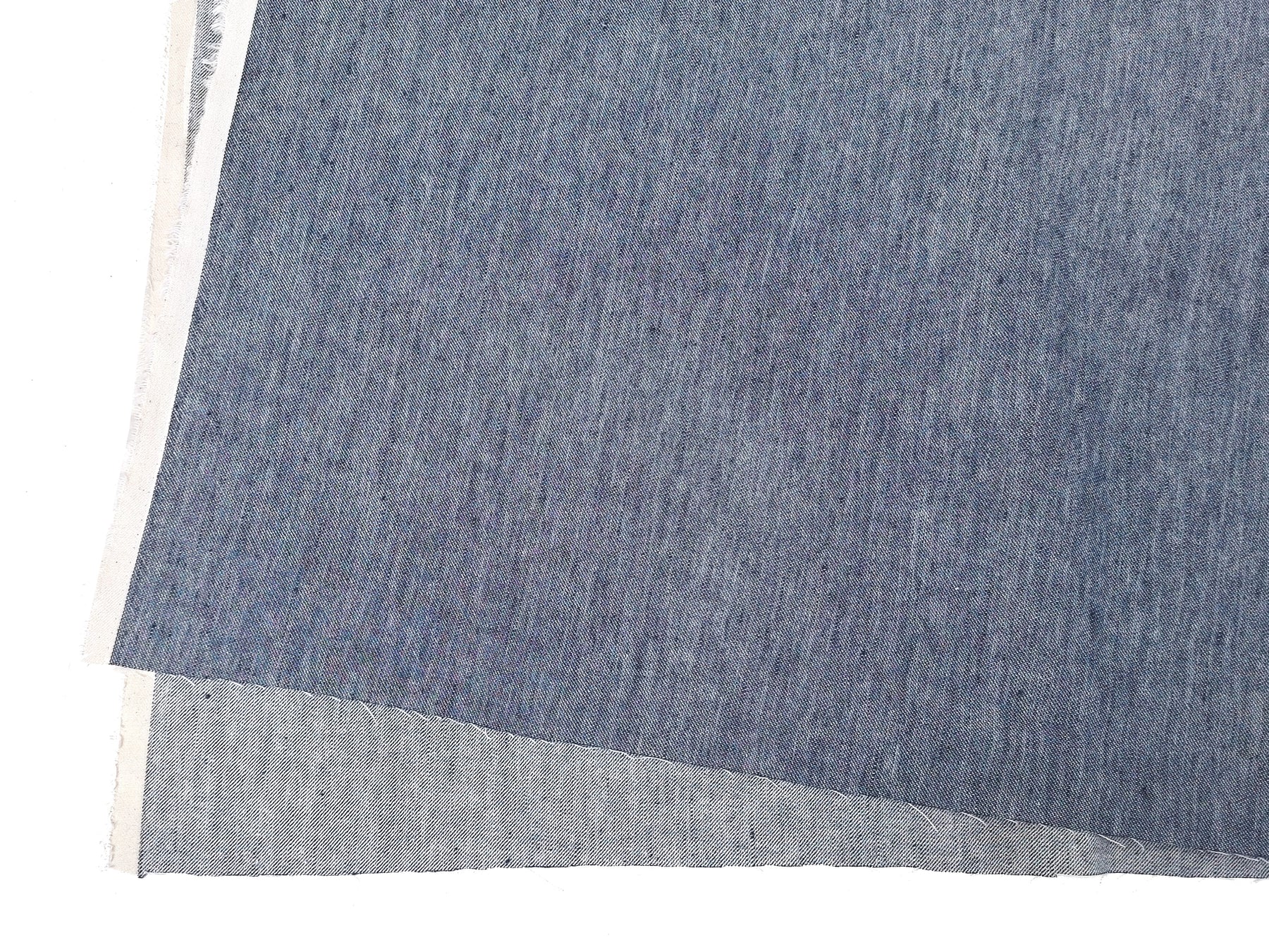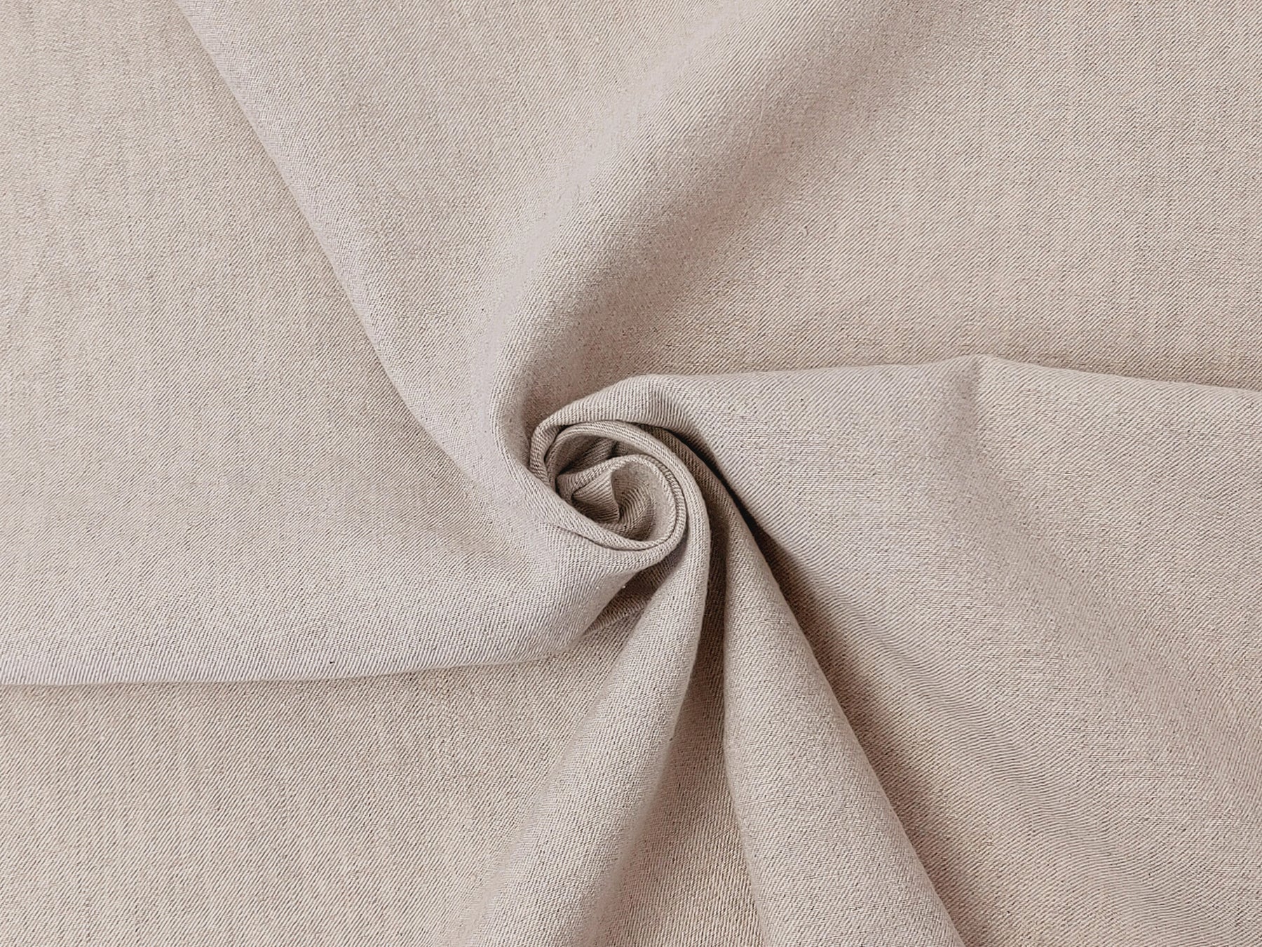 This linen cotton blend fabric (55% linen, 45% cotton) features a denim-inspired twill weave, giving it a unique, slightly rough texture that adds character and depth to your projects. The medium weight of 195 g/sqm (5.7 oz per square yard) makes it durable yet comfortable, ideal for creating a variety of garments or accessories with a denim-like look and feel.