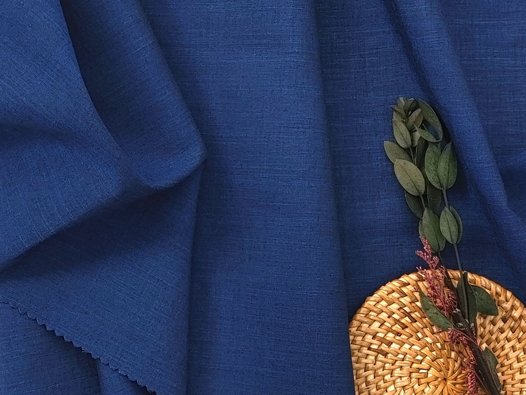 Midnight Blue Elegance: Lightweight Linen Cotton Chambray Fabric 4933