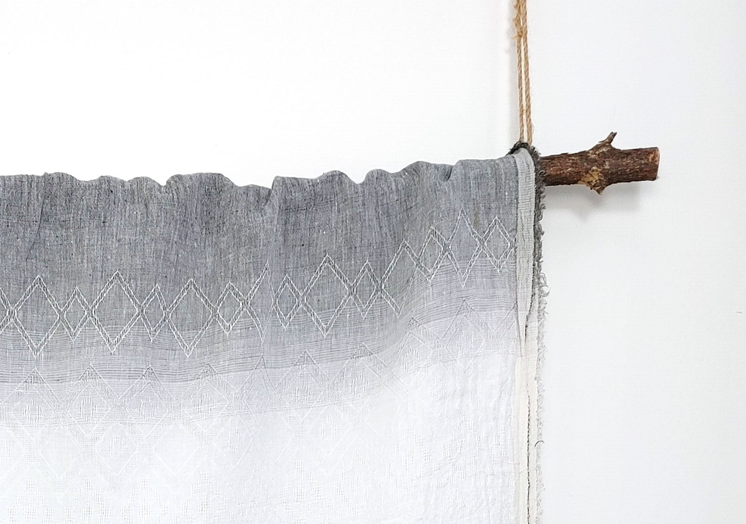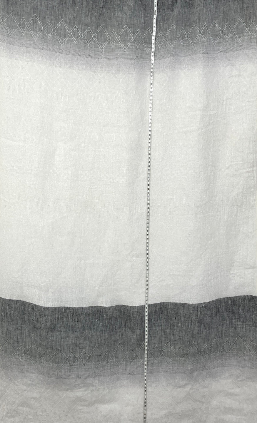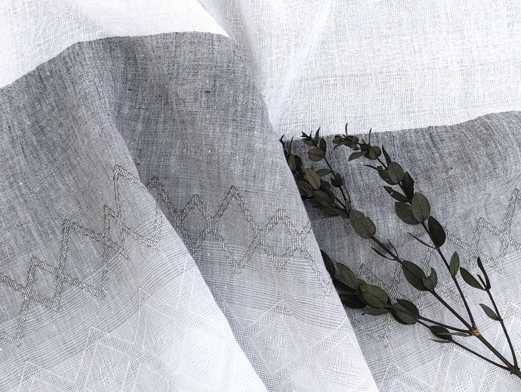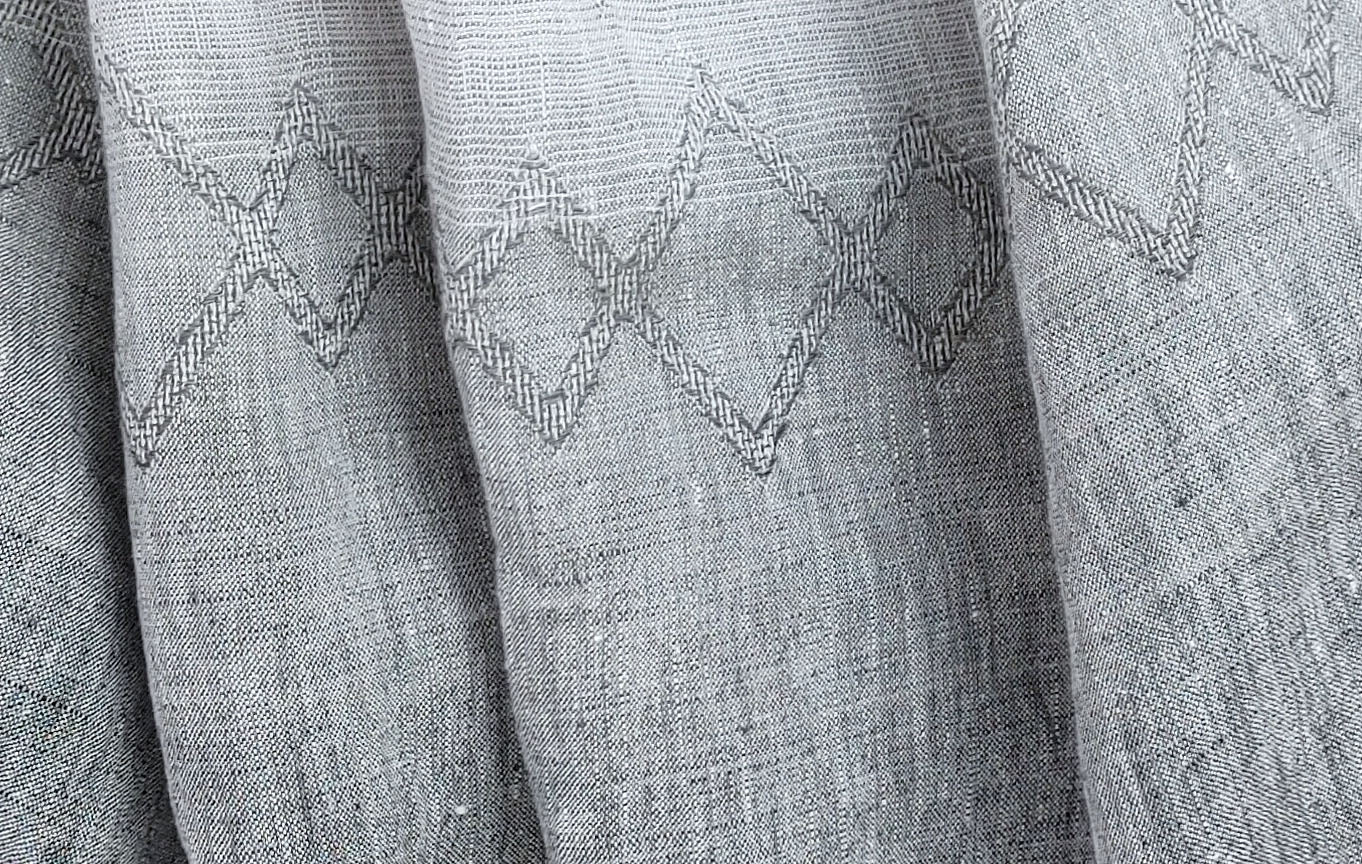 Experience the allure of our 'Dark Sunrise Symphony' jacquard fabric, a unique composition of 100% linen that seamlessly blends rhombus patterns with other intricate designs. The captivating gradation adds depth and dimension to this fabric, making it a truly distinctive choice for your projects.