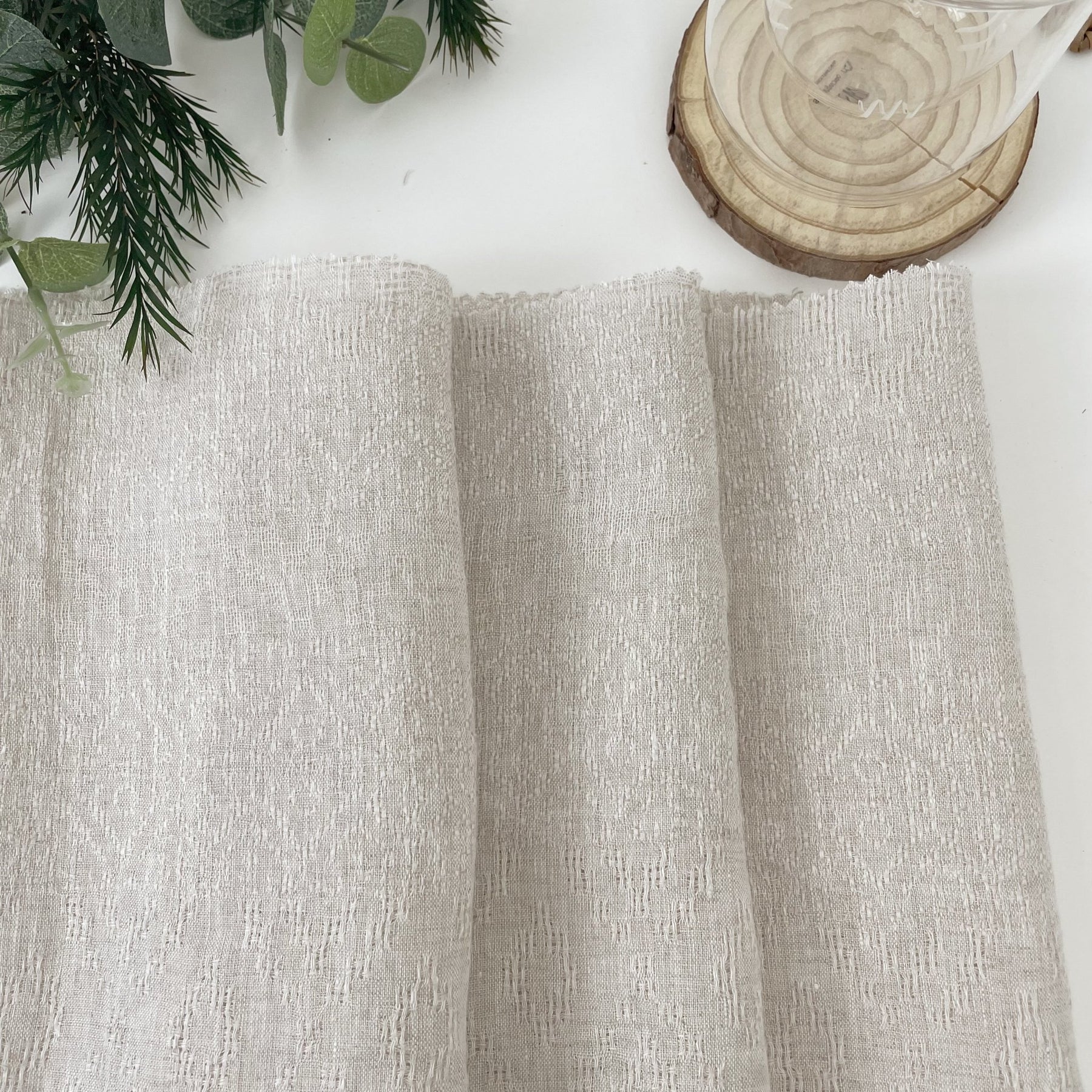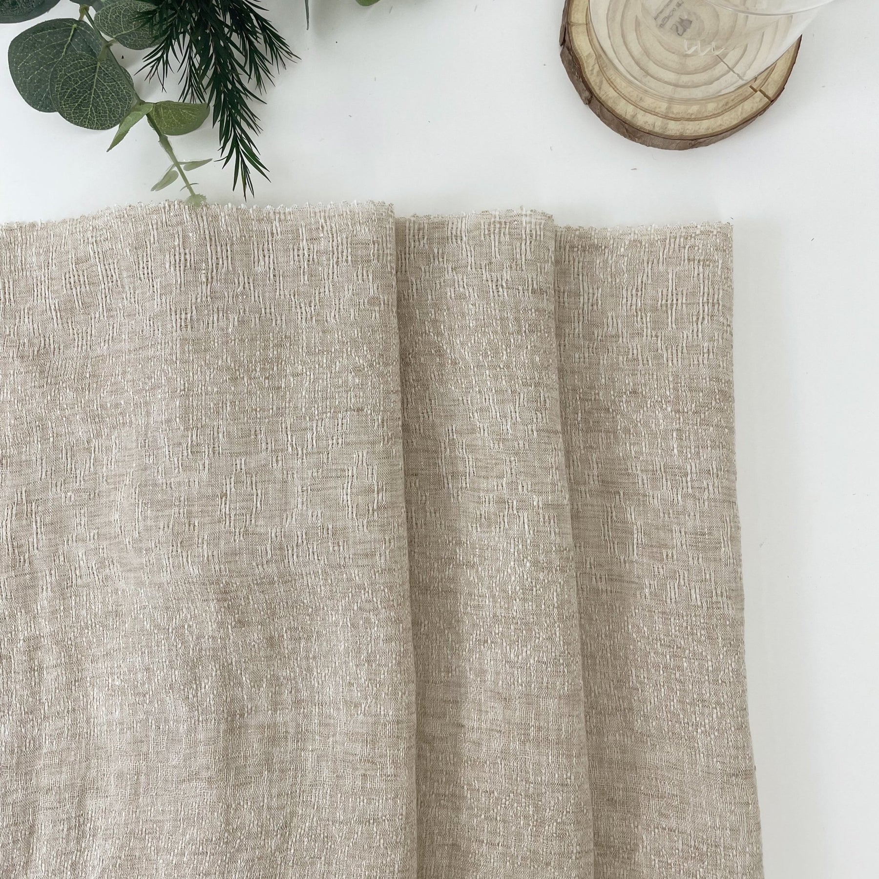 Linen Jacquard Multi Pattern Fabric - The Linen Lab - Beige