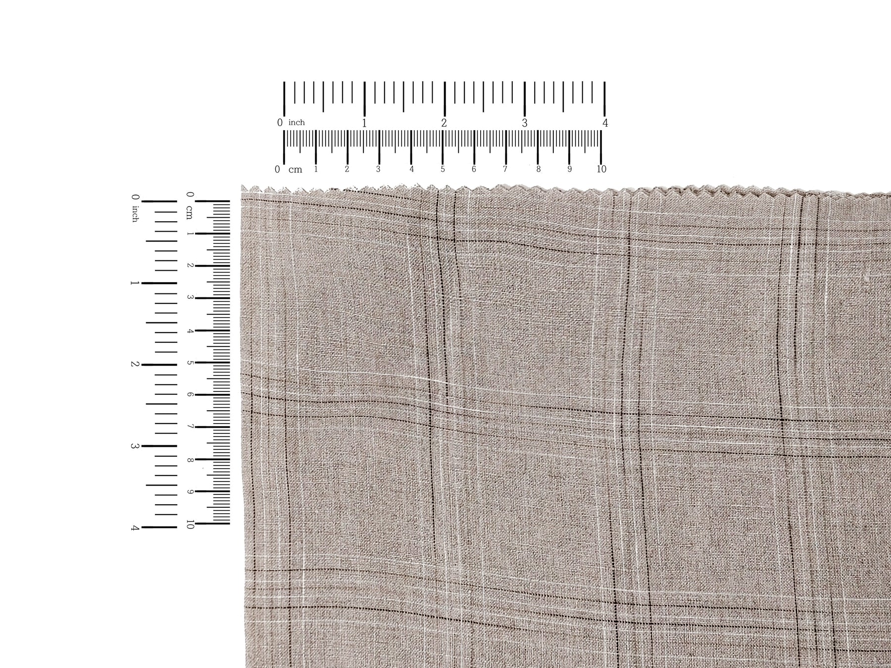 100% Linen Fabric – Natural Windowpane Check with Space-Dyed Yarns in Brown and White 8110