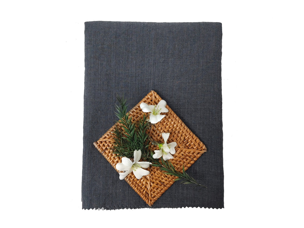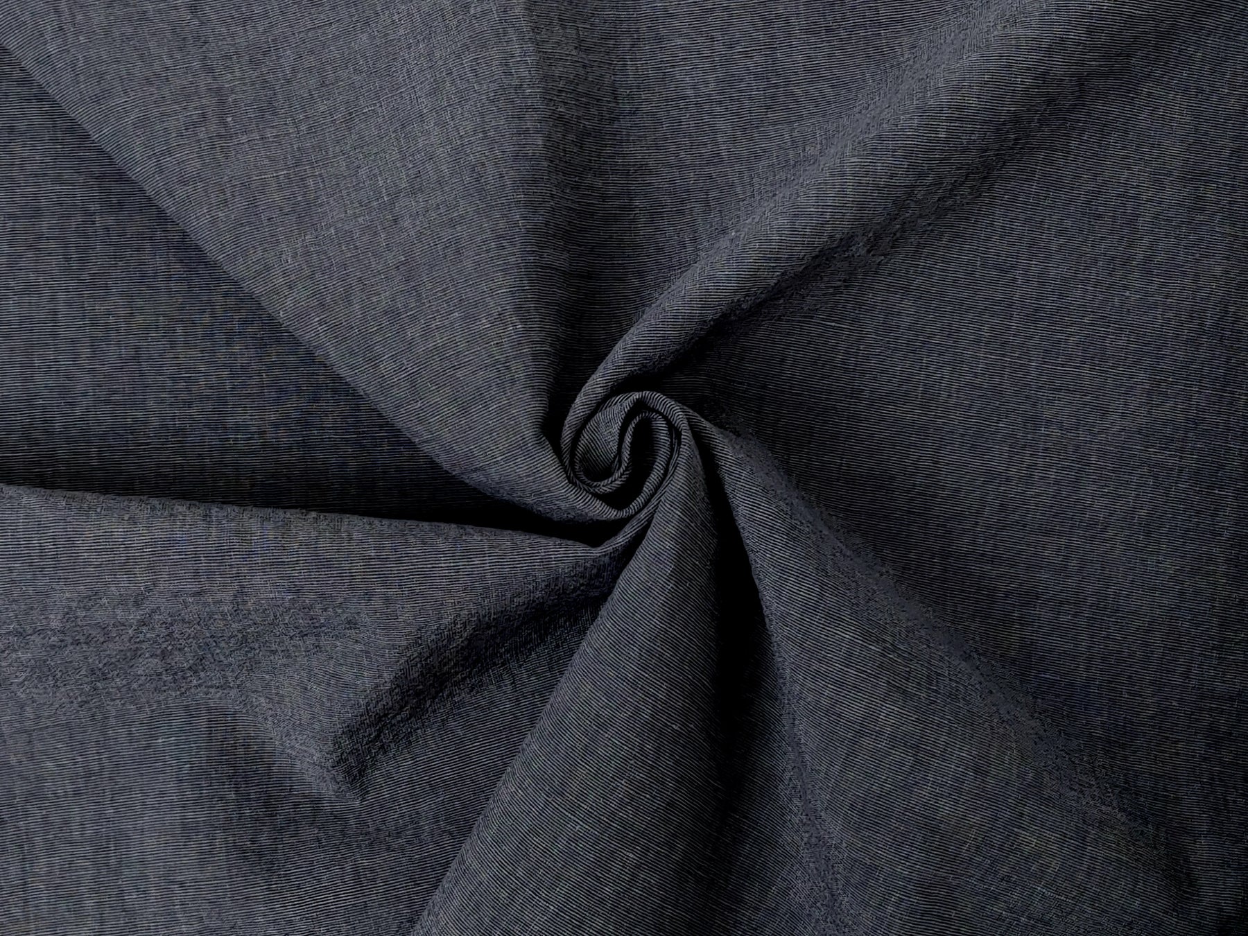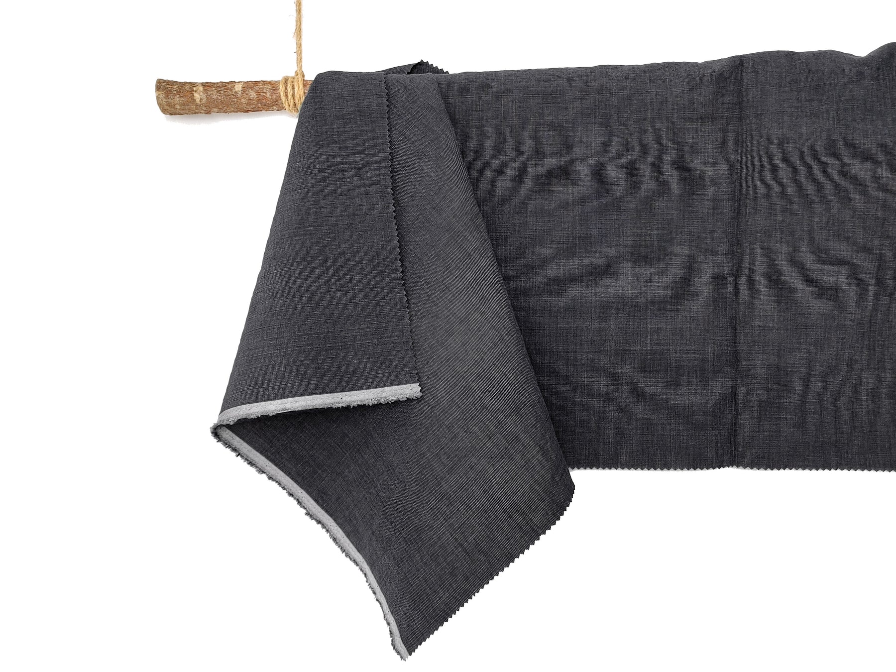 This fabric combines the natural qualities of linen and cotton, featuring a subtle chambray weave that creates a soft, textured appearance. The dark grey color is achieved by blending grey linen yarn with black cotton yarn, resulting in a sophisticated and versatile tone.