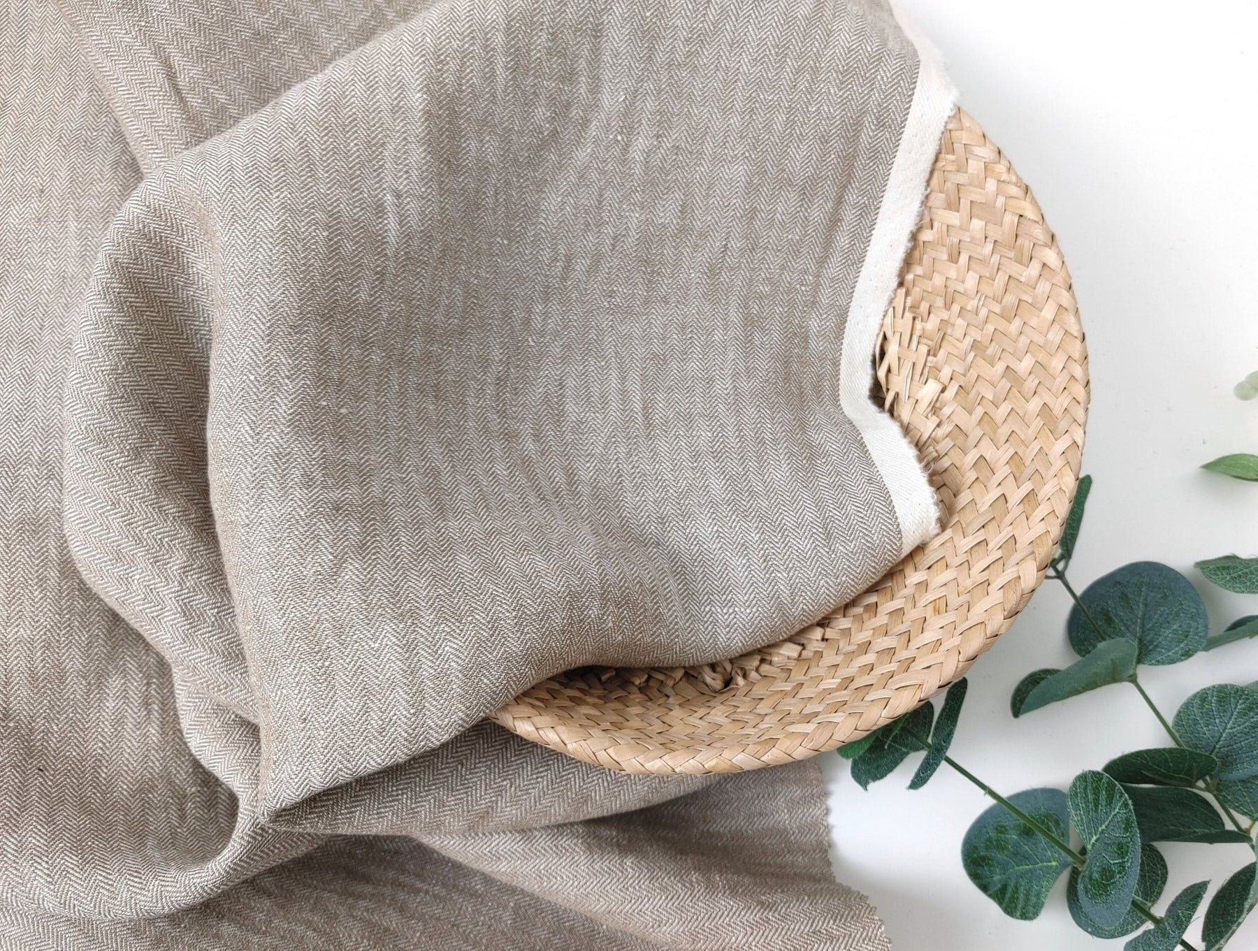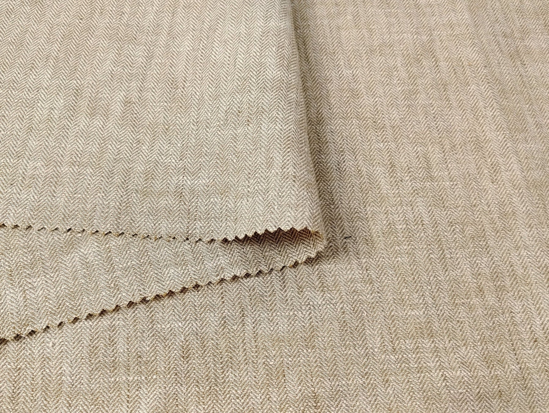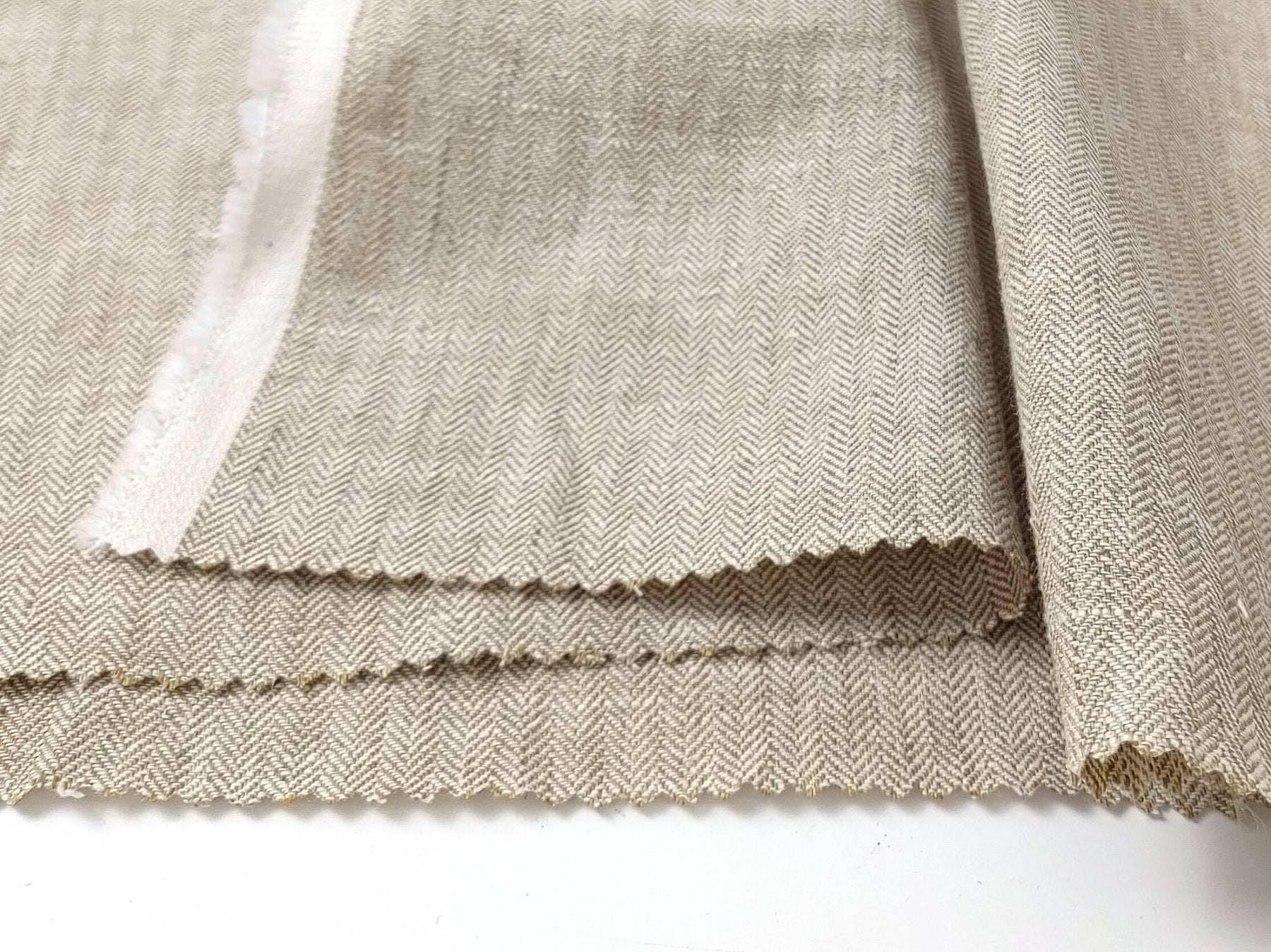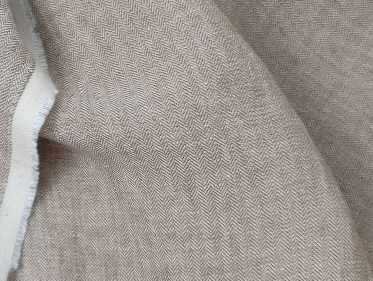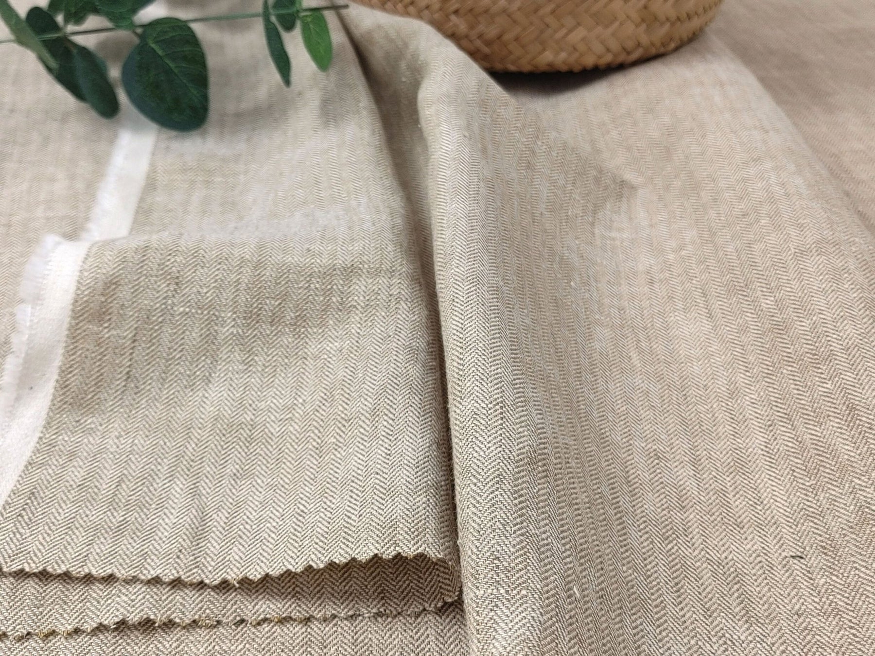 HBT Linen Ramie Cotton Blend Fabric: Yarn Dyed Chambray, Medium Weight 7837 7838 7840 - The Linen Lab - Beige(Dark)