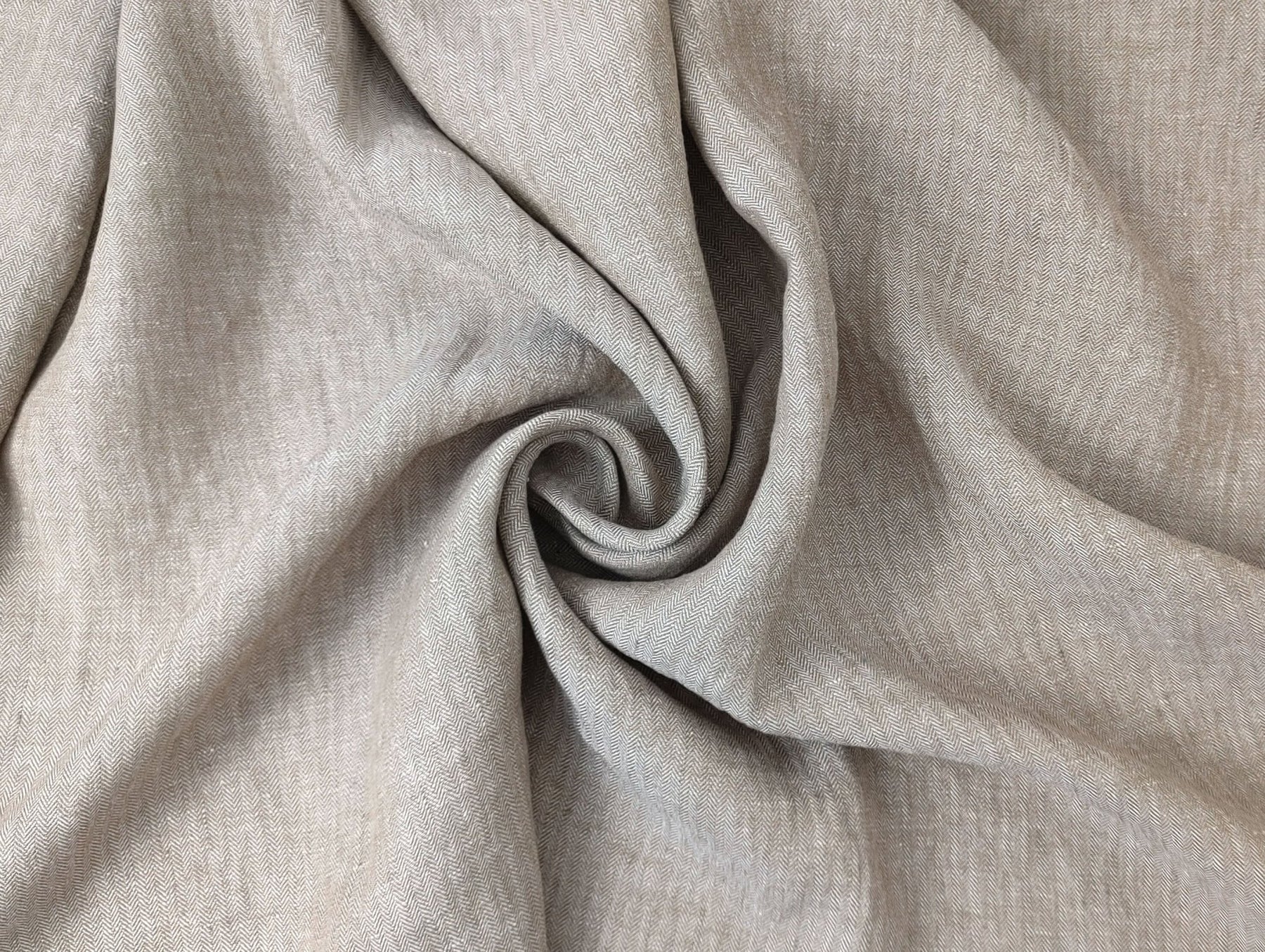 HBT Linen Ramie Cotton Blend Fabric: Yarn Dyed Chambray, Medium Weight 7837 7838 7840 - The Linen Lab - Beige