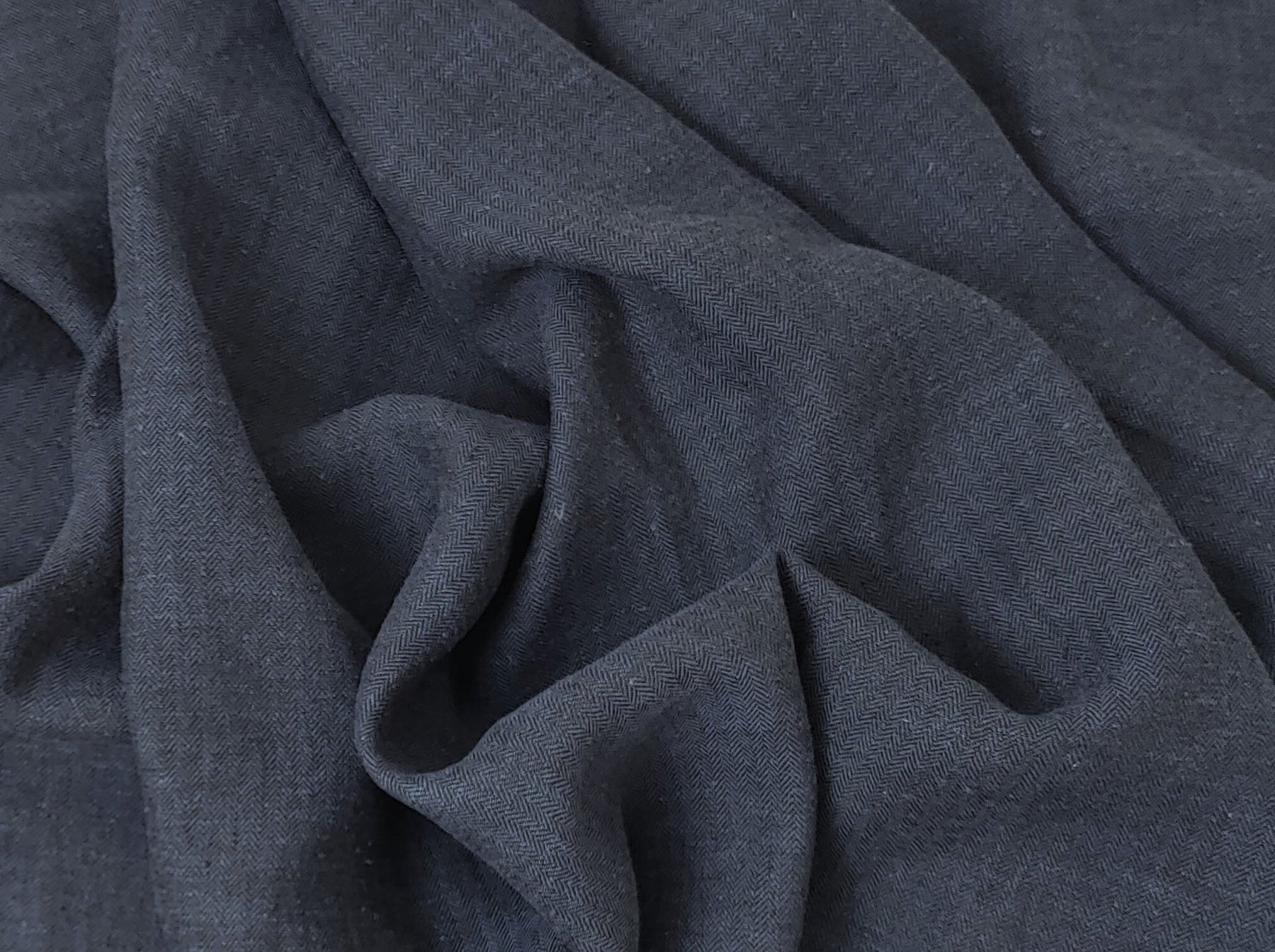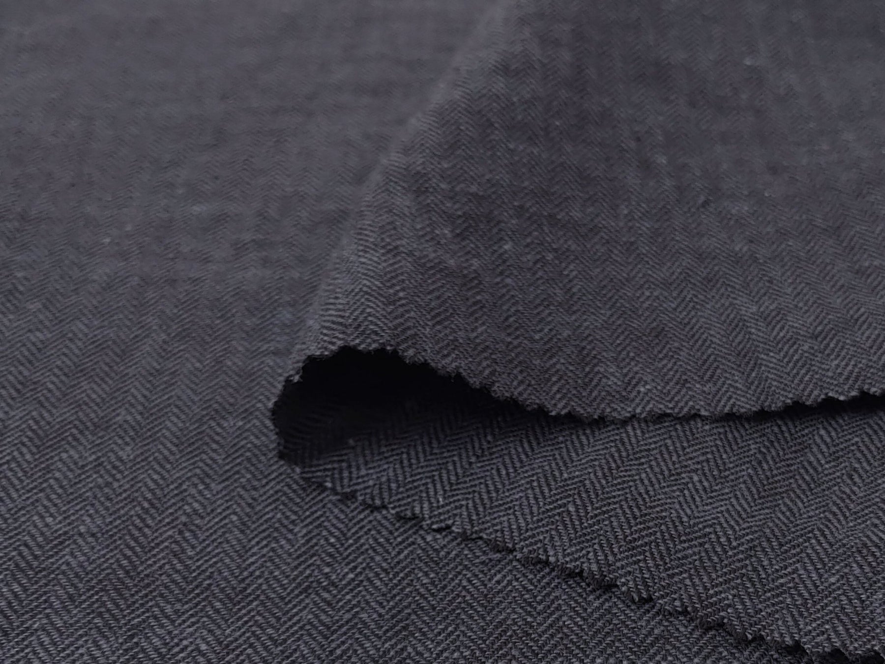 HBT Linen Ramie Cotton Blend Fabric: Yarn Dyed Chambray, Medium Weight 7837 7838 7840 - The Linen Lab - Gray(Dark)