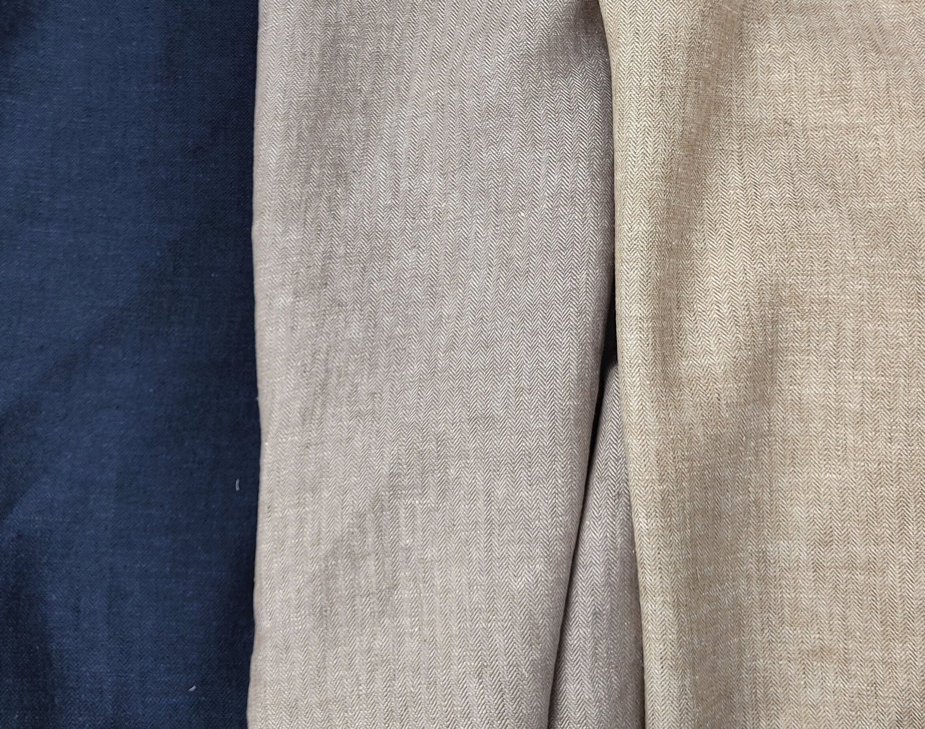 HBT Linen Ramie Cotton Blend Fabric: Yarn Dyed Chambray, Medium Weight 7837 7838 7840