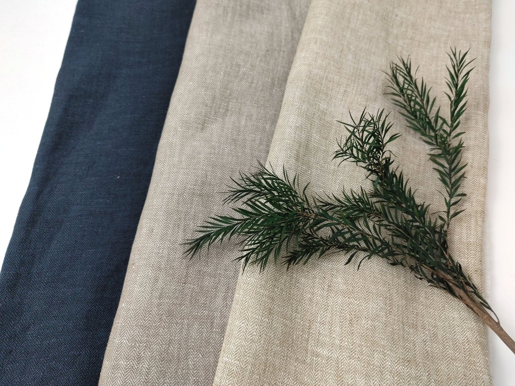 Introducing our new fabric blend: the 50% Linen, 8% Cotton, 42% Ramie HBT Blend Fabric. This medium-weight fabric combines three natural fibers for a versatile and practical material. With its yarn dyed chambray design, this fabric offers a classic and refined look suitable for various projects.
