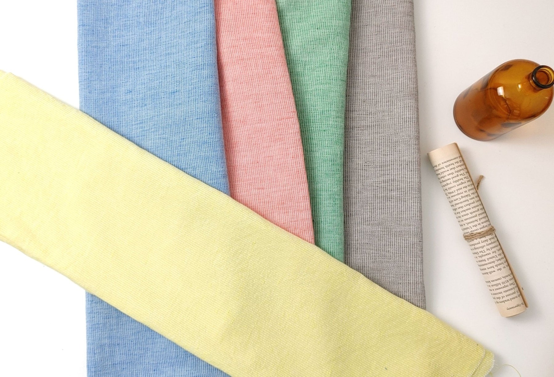 Light Weight Linen Cotton Stripe Fabric with Subtle Wrinkle Effect 7790 7791 7792 7793 7794 - The Linen Lab - Yellow