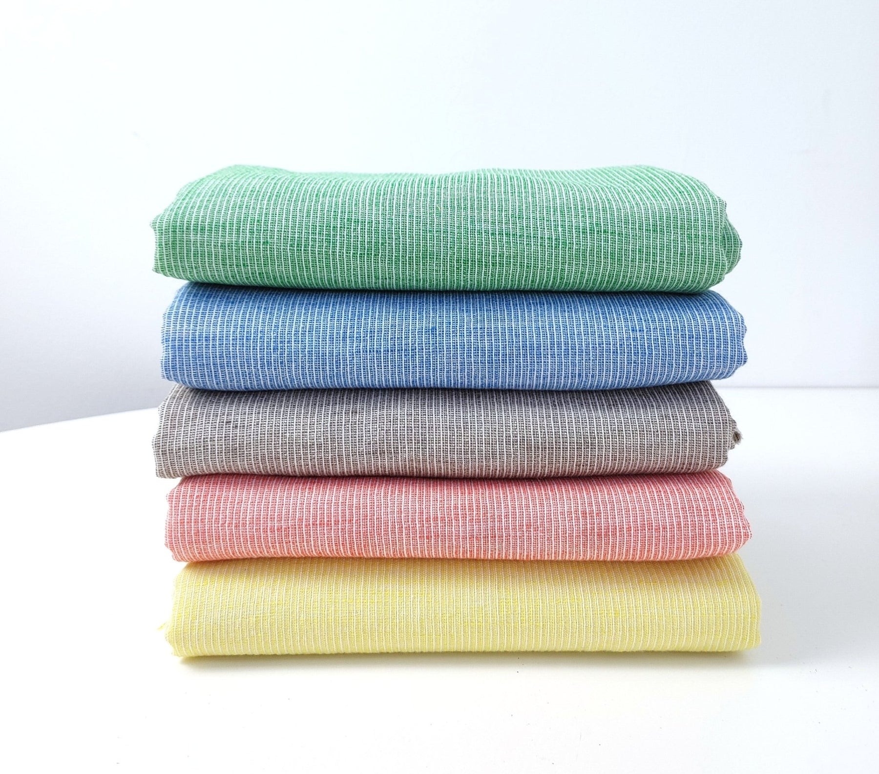 Light Weight Linen Cotton Stripe Fabric with Subtle Wrinkle Effect 7790 7791 7792 7793 7794 - The Linen Lab - Green