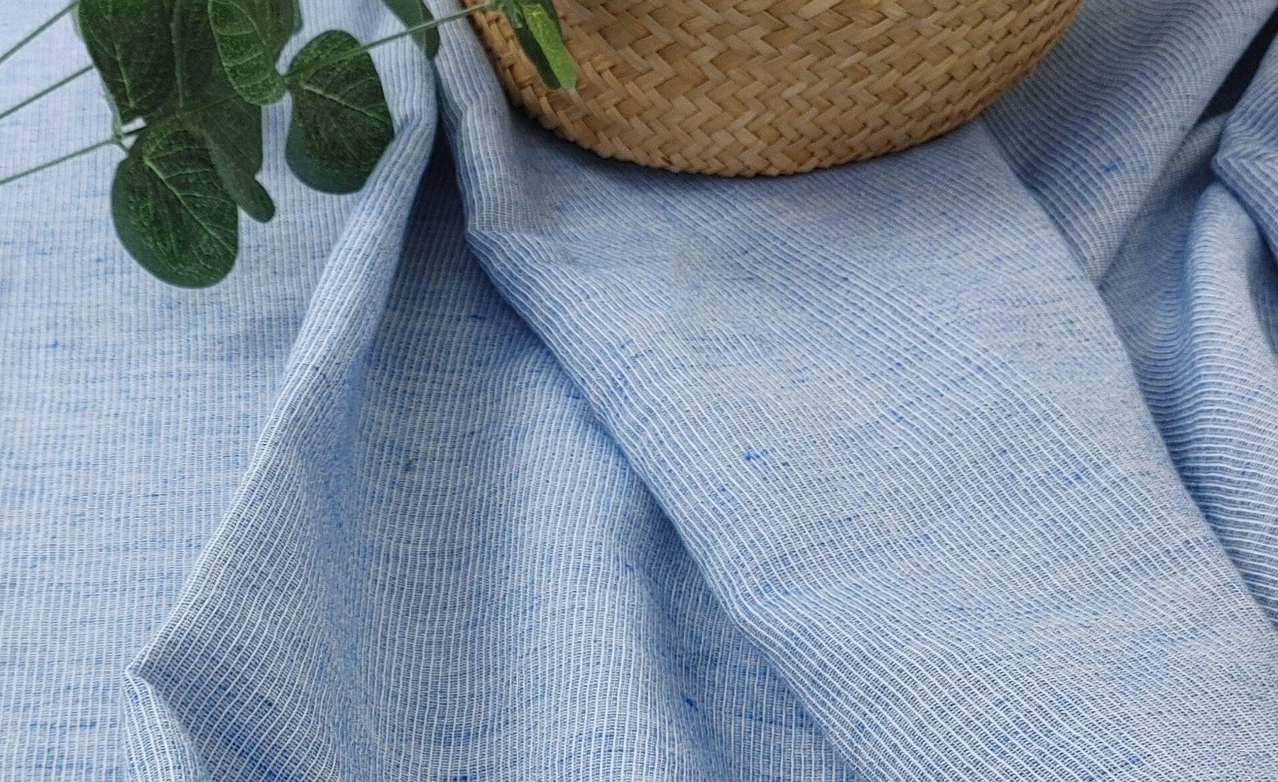 Light Weight Linen Cotton Stripe Fabric with Subtle Wrinkle Effect 7790 7791 7792 7793 7794 - The Linen Lab - Blue