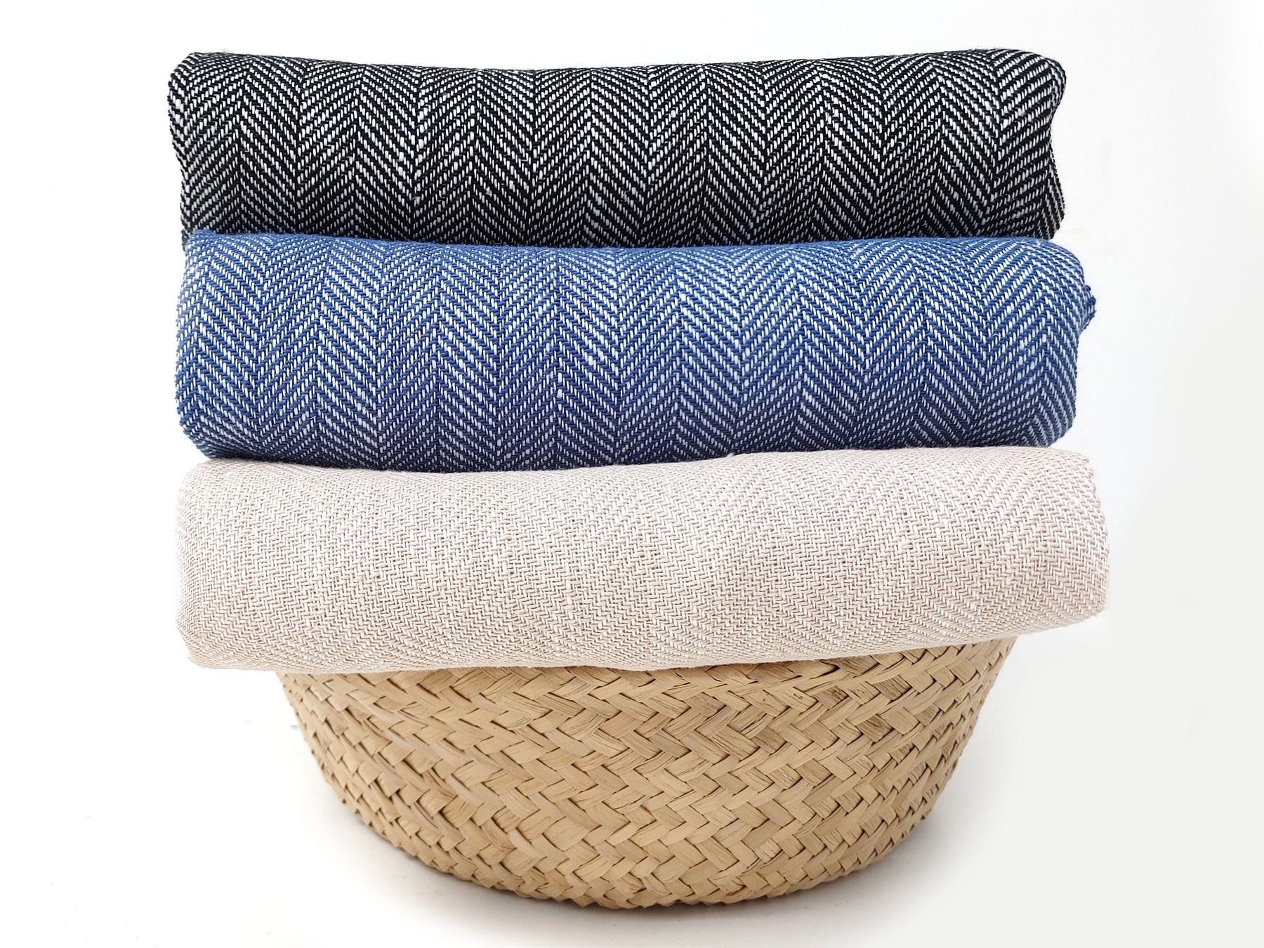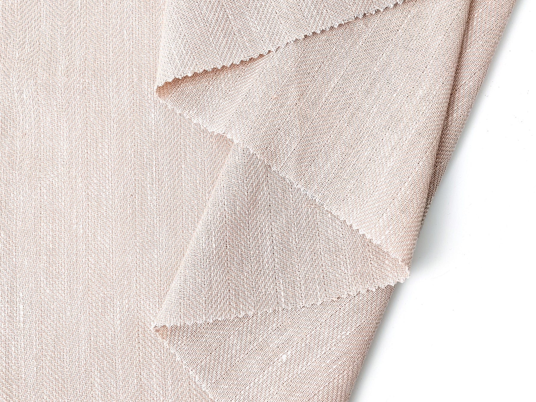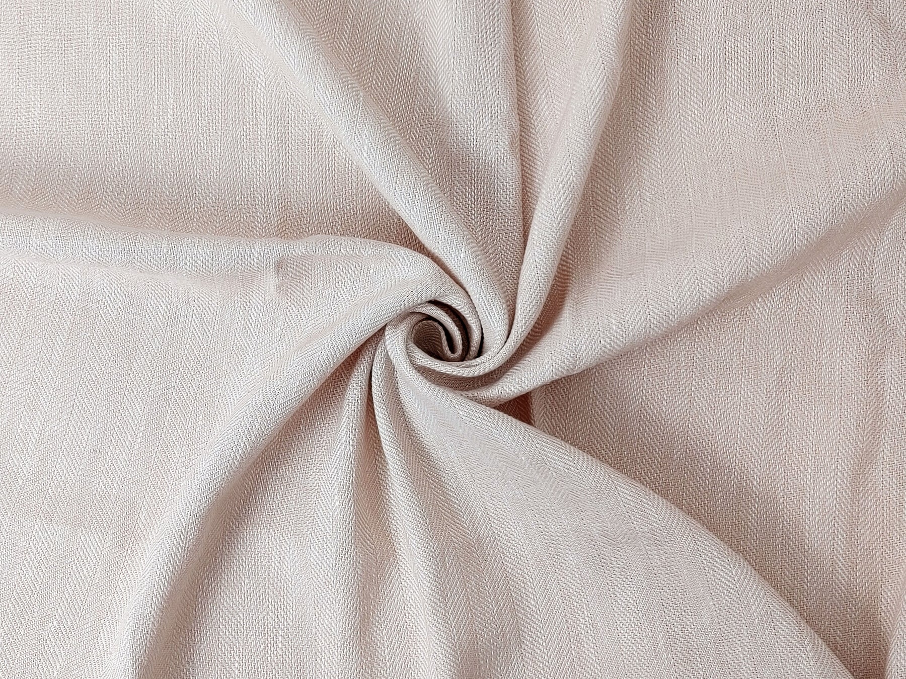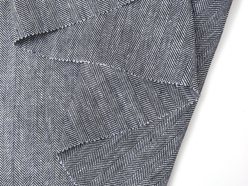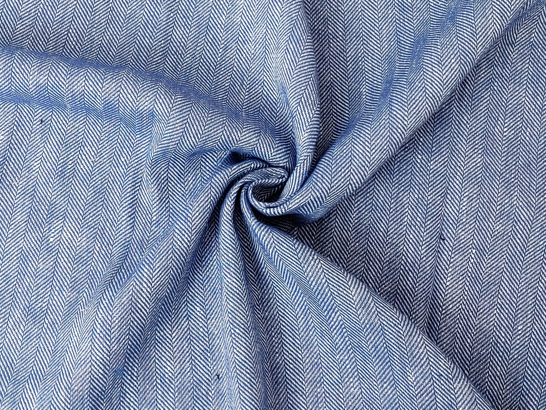 This linen-cotton herringbone twill chambray fabric features thick yarns for both the warp (5.6s linen) and the weft (7s cotton), creating a durable and textured material with a robust structure. With a medium to heavy weight, it is perfect for creating jackets, trousers, or home décor items that require both strength and comfort. The herringbone twill pattern adds depth and visual interest, while the pre-washed finish ensures a soft handfeel and a relaxed, natural appearance. The combination of 51% linen and 49% cotton offers a timeless blend of breathability and durability, with no elasticity for a firm, structured drape.
