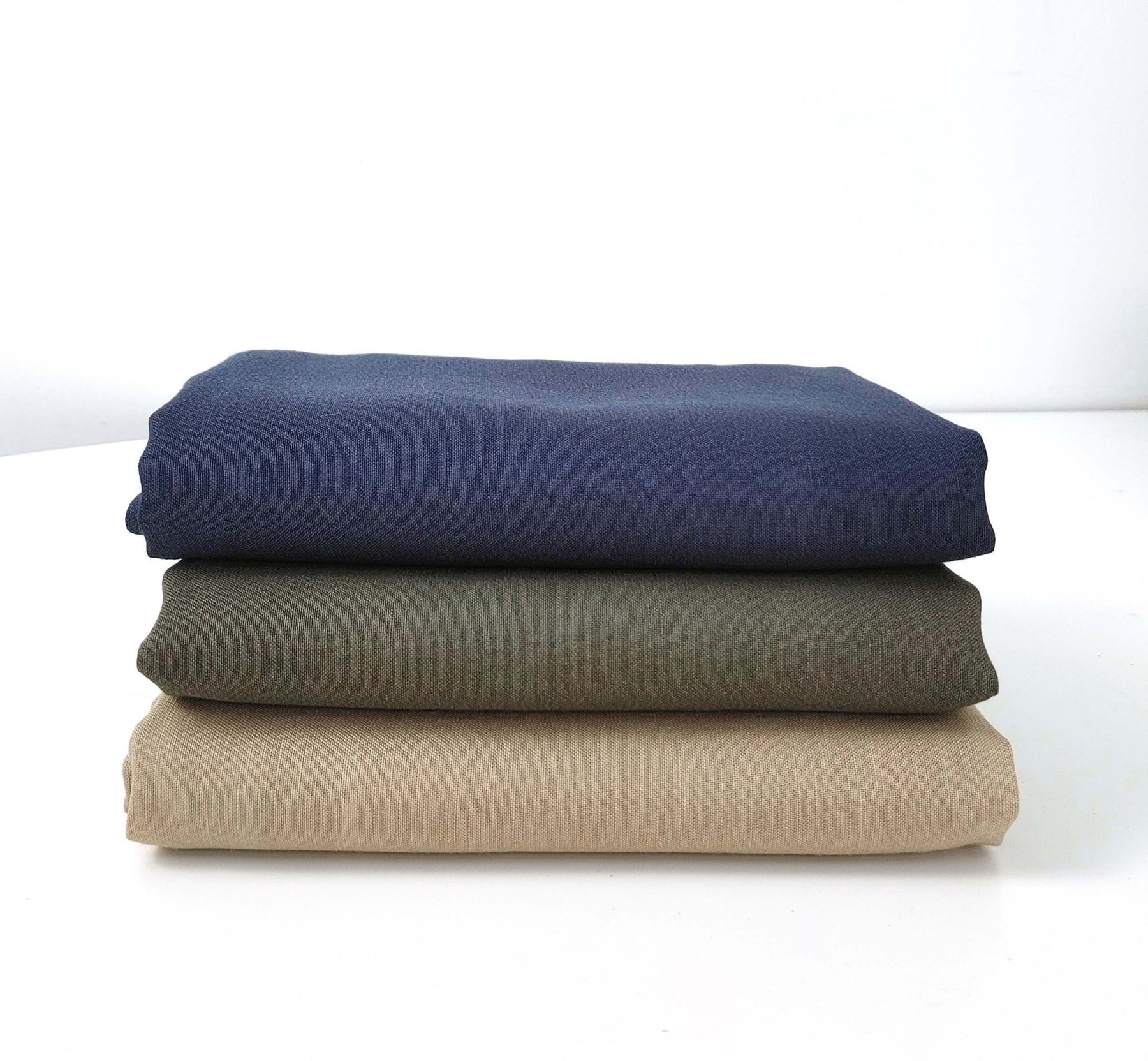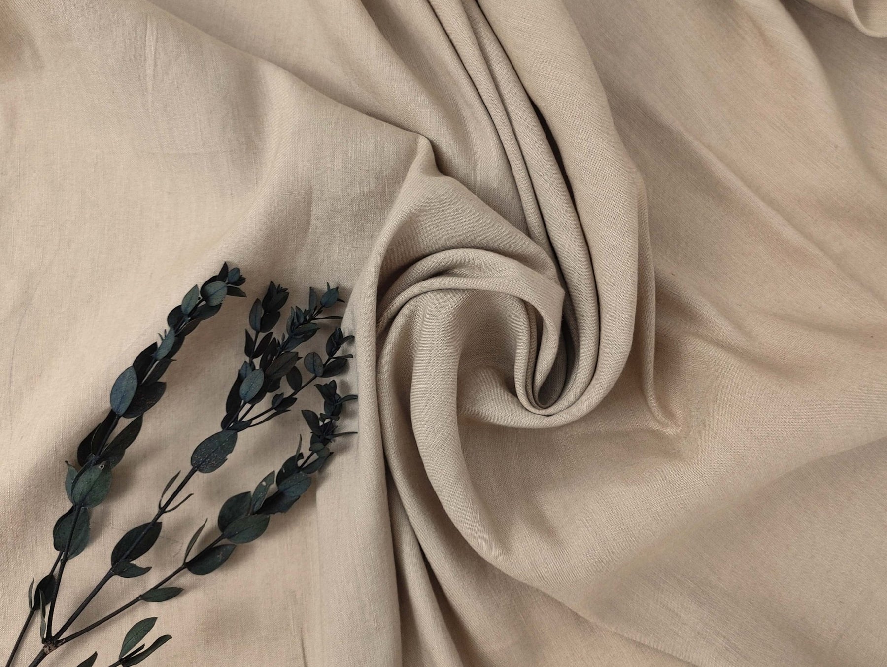 This Linen Tencel Silk Fabric features a light-weight construction and a plain weave design, offering a delicate and luxurious feel. The warp is crafted from linen 14s yarn, while the weft consists of a blend of tencel and silk yarns, twisted to enhance the fabric's texture. With its soft and opulent touch, this fabric is ideal for creating elegant and comfortable apparel pieces.