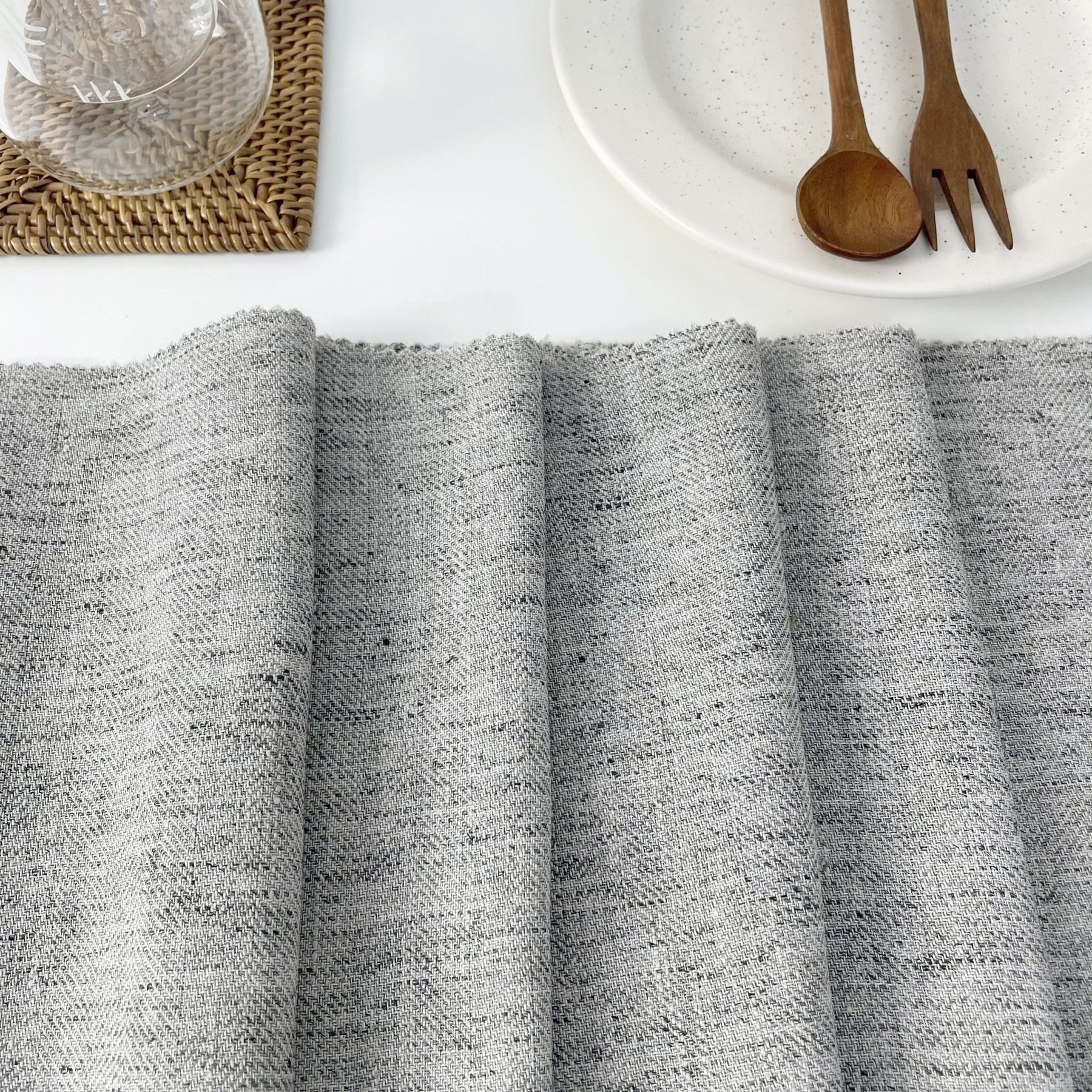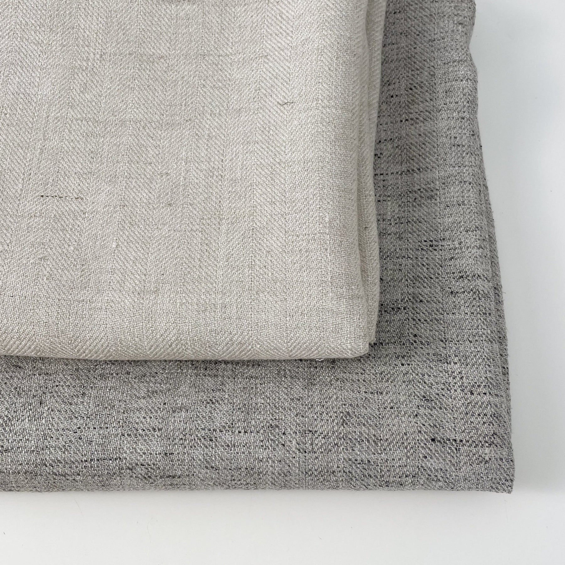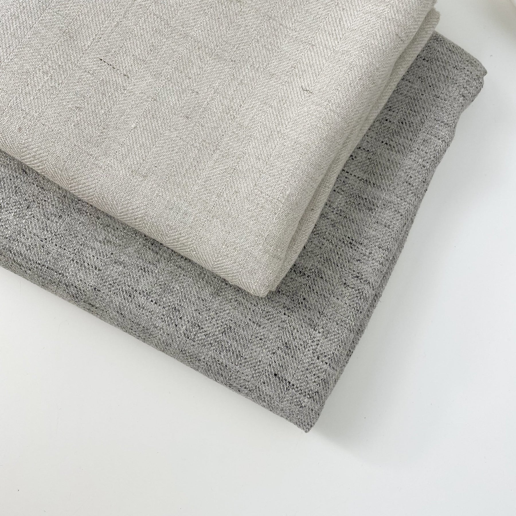 Linen Melange Fabric HBT Herringbone Twill (6667 6668) - The Linen Lab - Grey