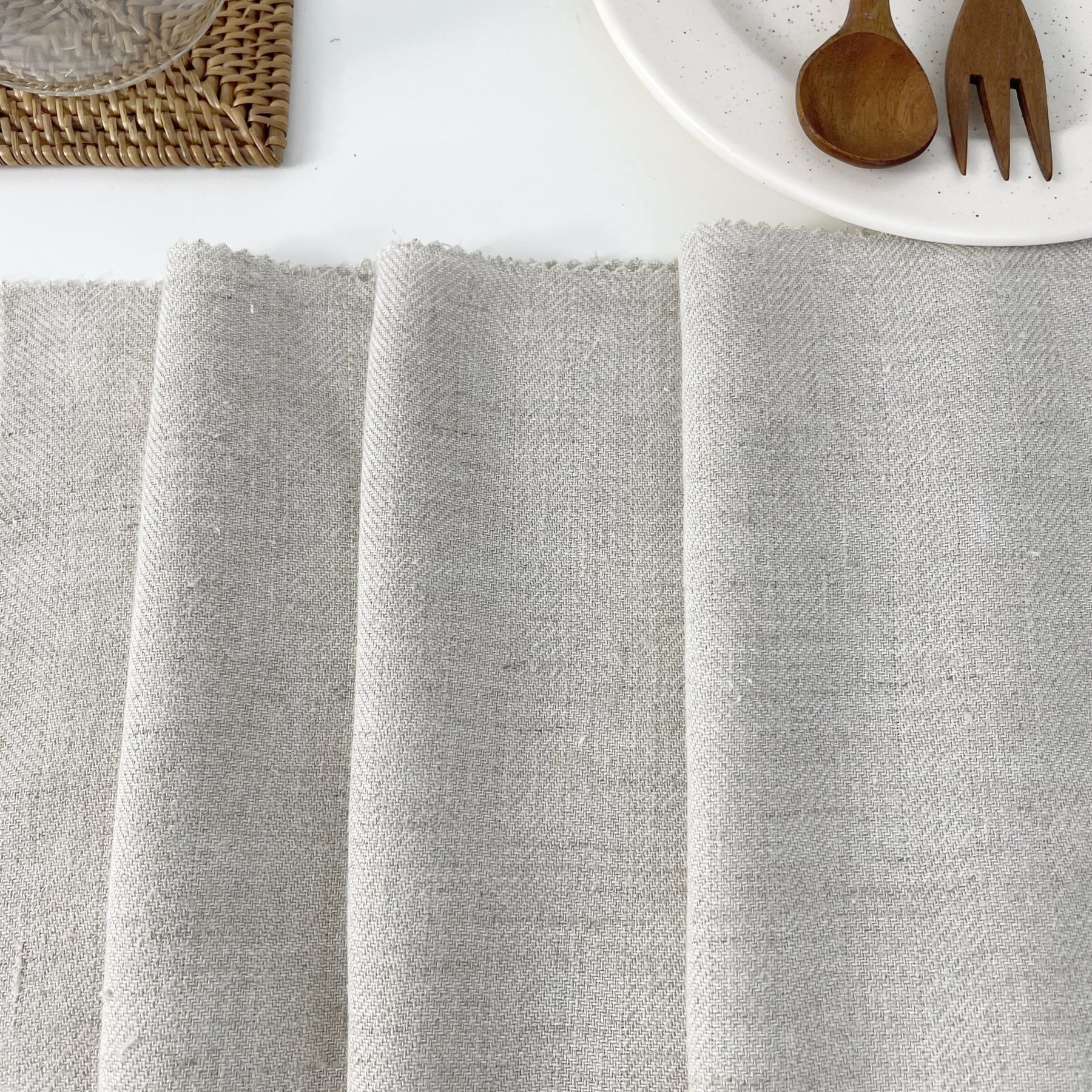 Linen Melange Fabric HBT Herringbone Twill (6667 6668) - The Linen Lab - Light Natural