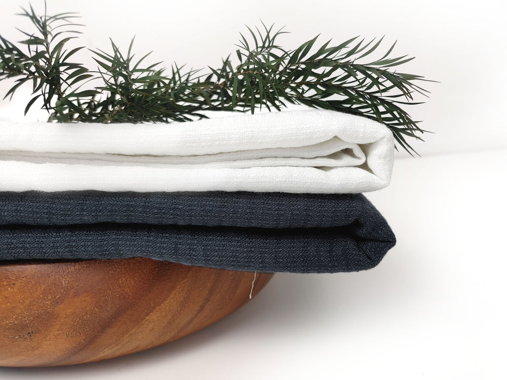 This linen, rayon, and cotton blend fabric features a unique combination of natural fibers, woven into a double-faced textile with a soft, pre-washed finish. Composed of 44% linen, 18% rayon, and 38% cotton, this fabric balances breathability with structure, perfect for creating comfortable yet durable garments. Its medium-heavy weight of 270 g/sqm (7.96 oz/yard²) provides a substantial feel without sacrificing flexibility.