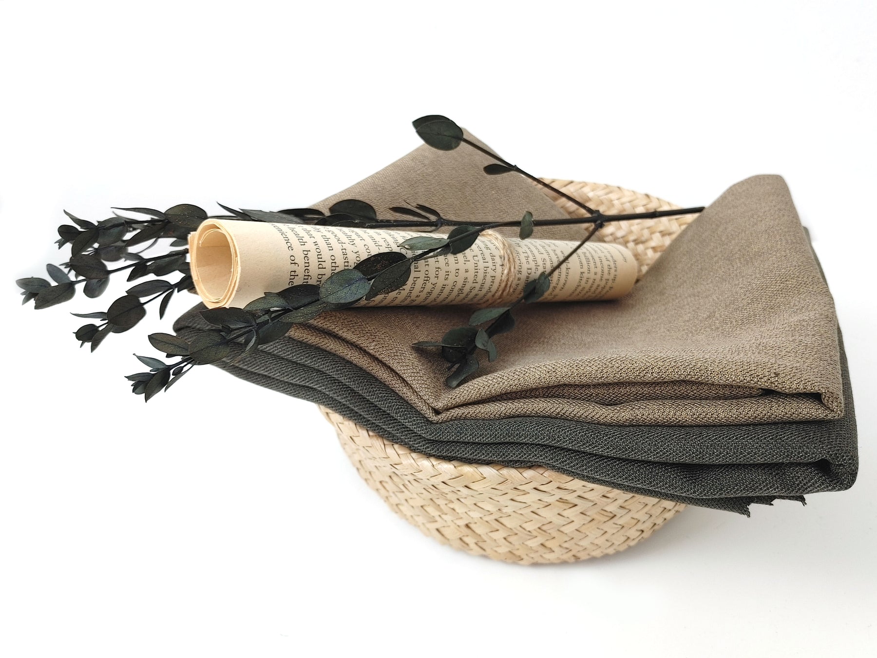 This fabric blends 26% linen, 27% rayon, and 47% polyester, featuring a unique 3-tone chambray effect. The yarn is dyed first and then twisted with different colors to create the rich, multi-dimensional look. With a medium weight (218 g/sqm or 6.4 oz/sq yard) and pre-washed softness, it’s perfect for a variety of projects. The twill weave adds durability, while the fabric is soft to the touch and resists wrinkles better than 100% linen, making it easy to care for with a natural, relaxed look.