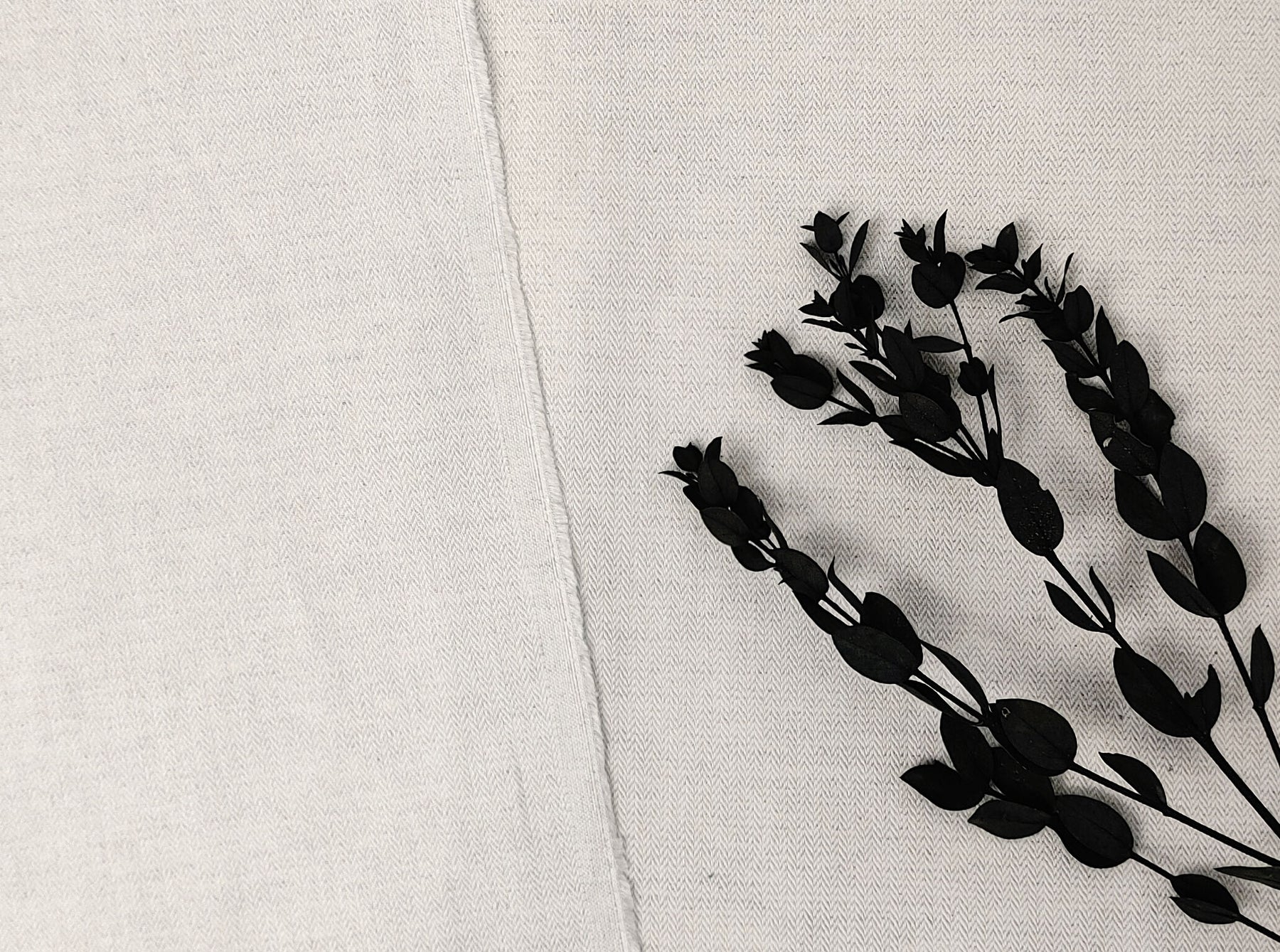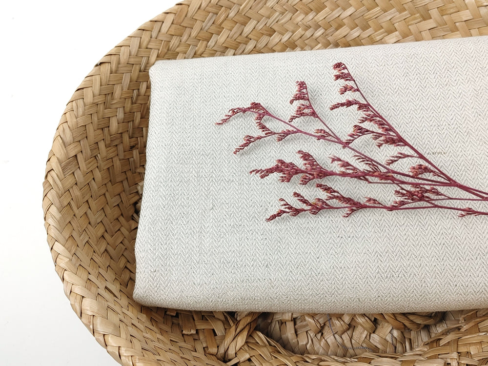 This natural-colored linen cotton herringbone twill fabric offers a beautiful blend of 44% linen and 56% cotton, creating a soft yet durable textile. With a medium to slightly heavy weight of 220gsm (6.48 oz/yd²), it’s perfect for crafting garments, home décor, or accessories that require structure without sacrificing comfort.