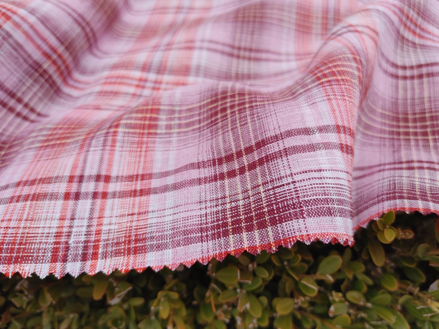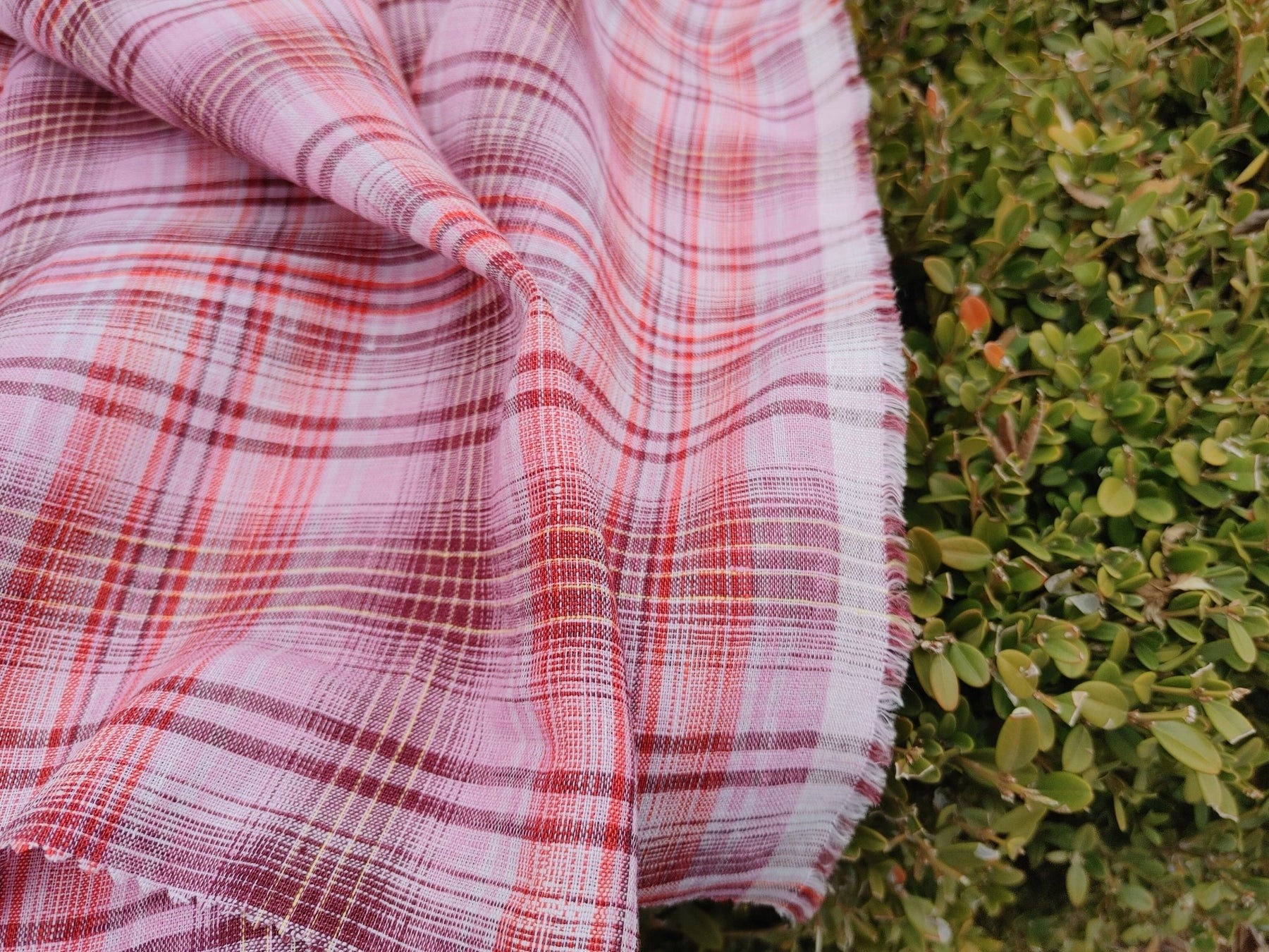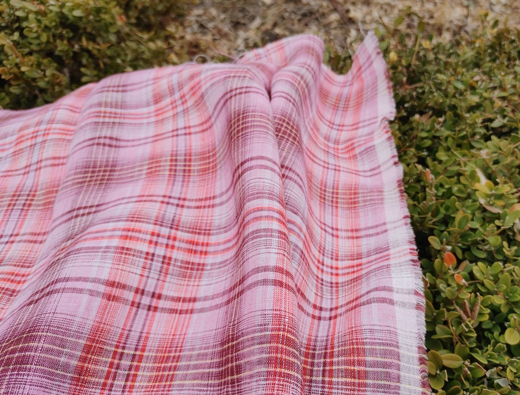 100% Linen Light Weight Madras Plaid Fabric 7608 7609 - The Linen Lab - Pink