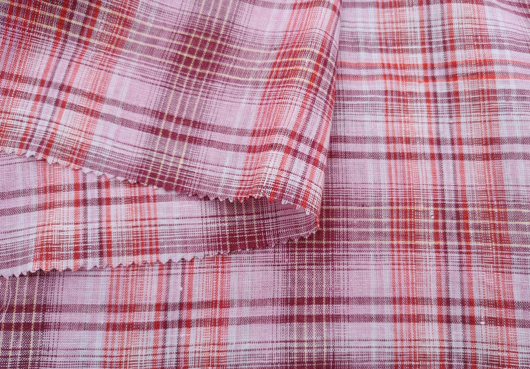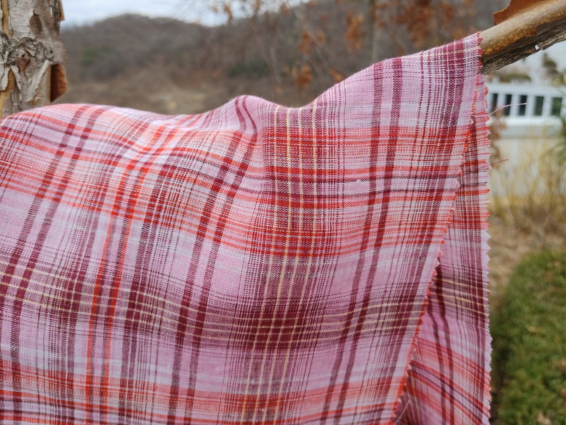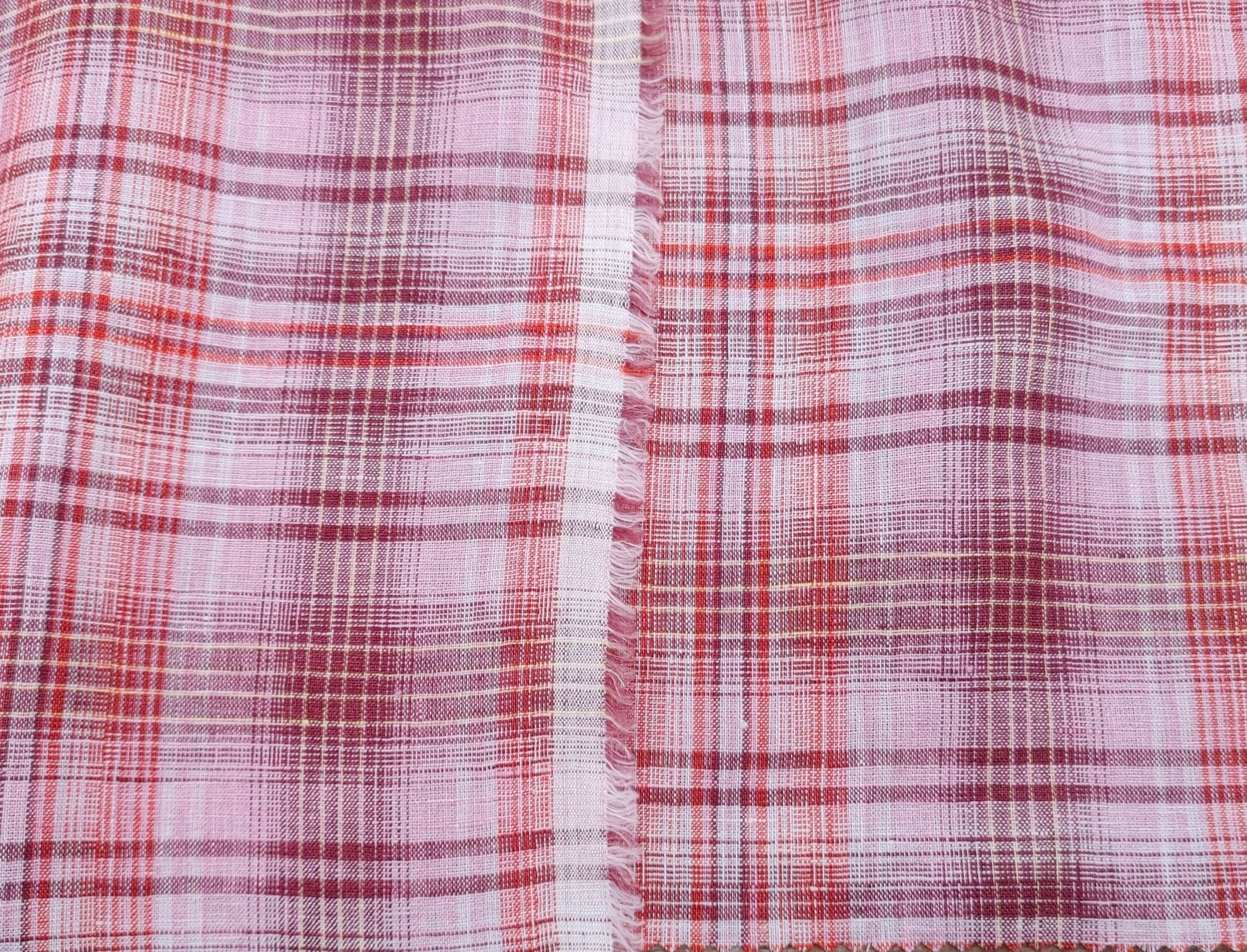 100% Linen Light Weight Madras Plaid Fabric 7608 7609 - The Linen Lab - Pink