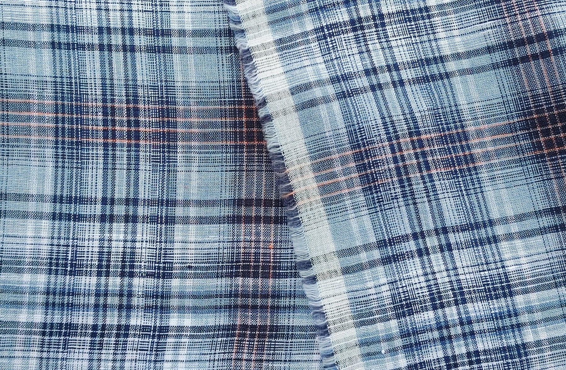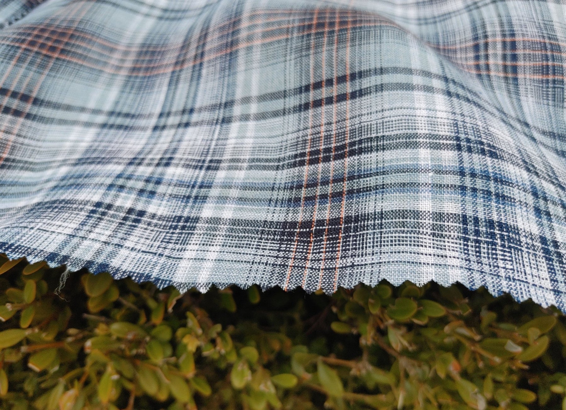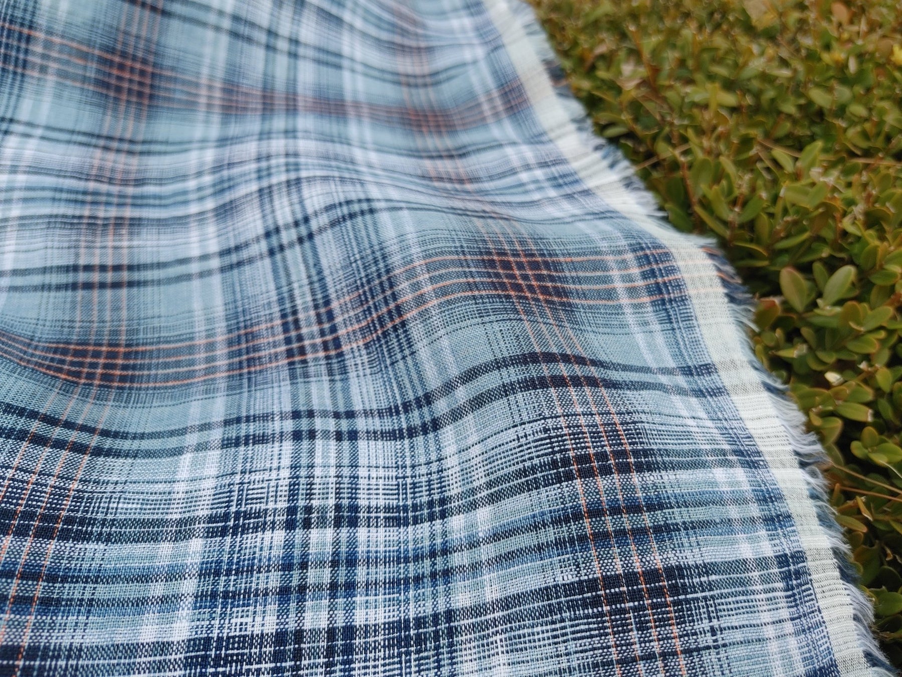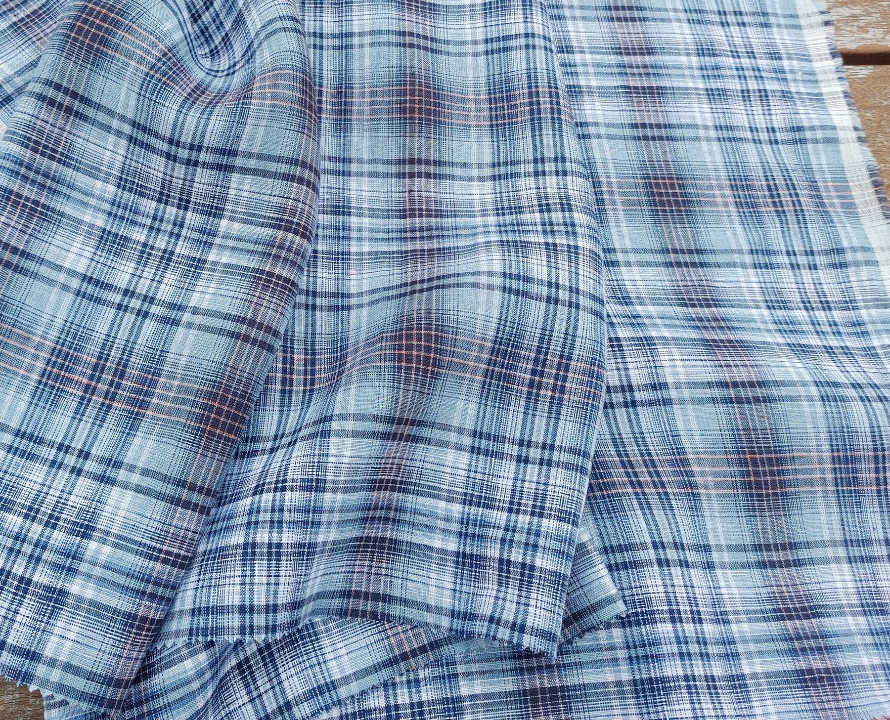 100% Linen Light Weight Madras Plaid Fabric 7608 7609 - The Linen Lab - Blue(Dark)