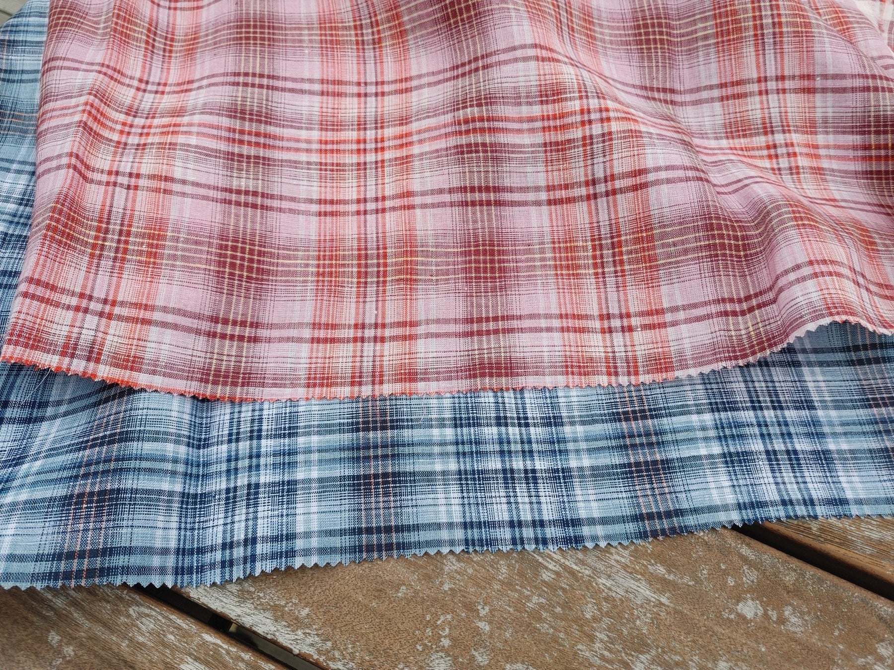 100% Linen Light Weight Madras Plaid Fabric 7608 7609
