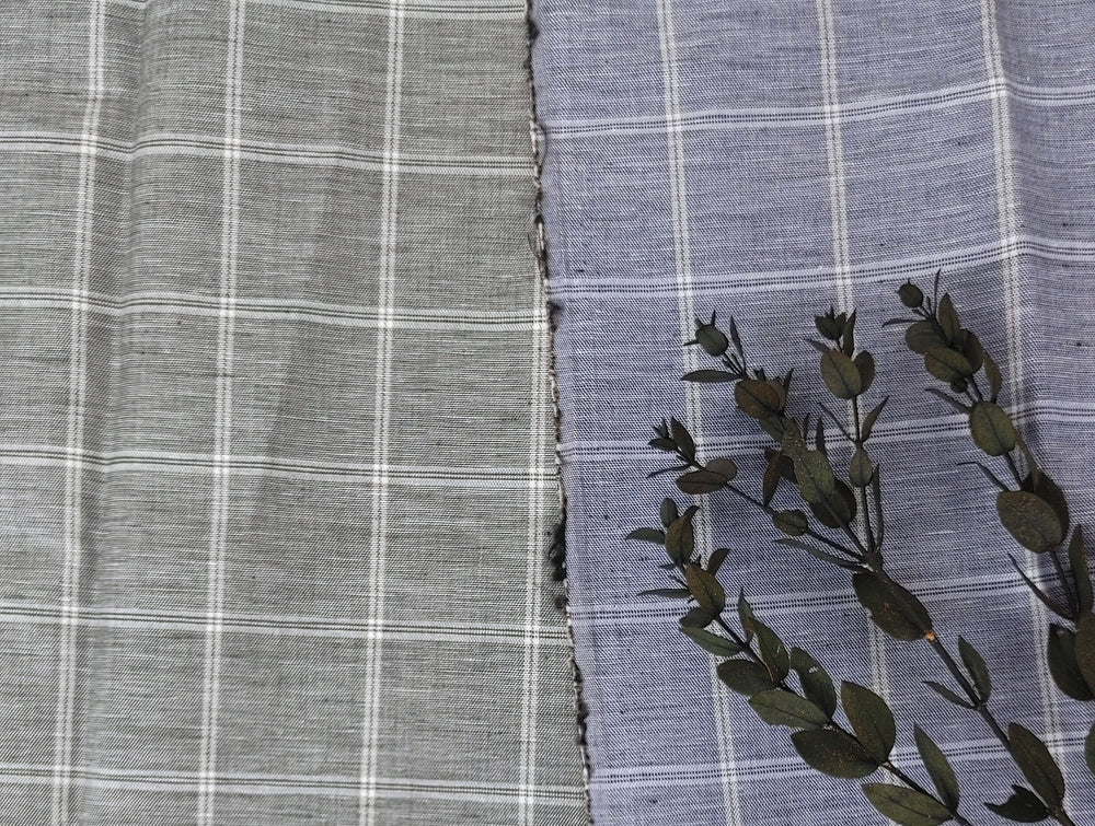This elegant fabric combines 58% linen and 42% cotton, offering a balanced mix of linen’s natural breathability and cotton’s softness. Featuring a classic windowpane pattern with a twill weave, it provides a soft handfeel and a structured yet comfortable drape. The linen-cotton blend ensures durability while maintaining a lightweight, airy quality, making it ideal for a range of garments such as shirts, dresses, and tailored pieces. The timeless windowpane design adds a touch of sophistication to both casual and formal clothing.
