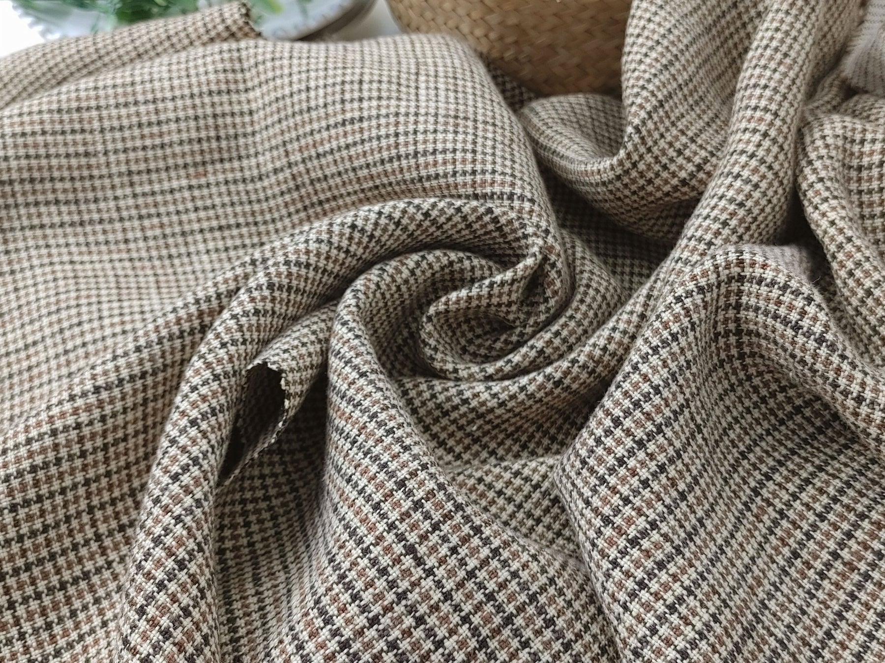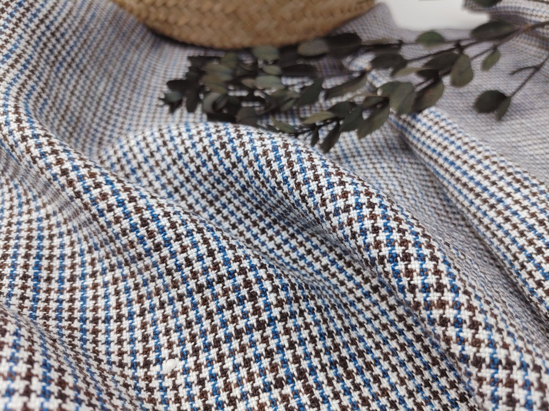 100% Linen Houndstooth StarCheck Fabric: Heavyweight Elegance - The Linen Lab - Brown