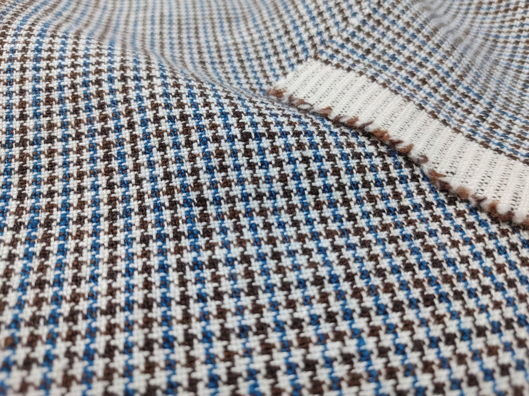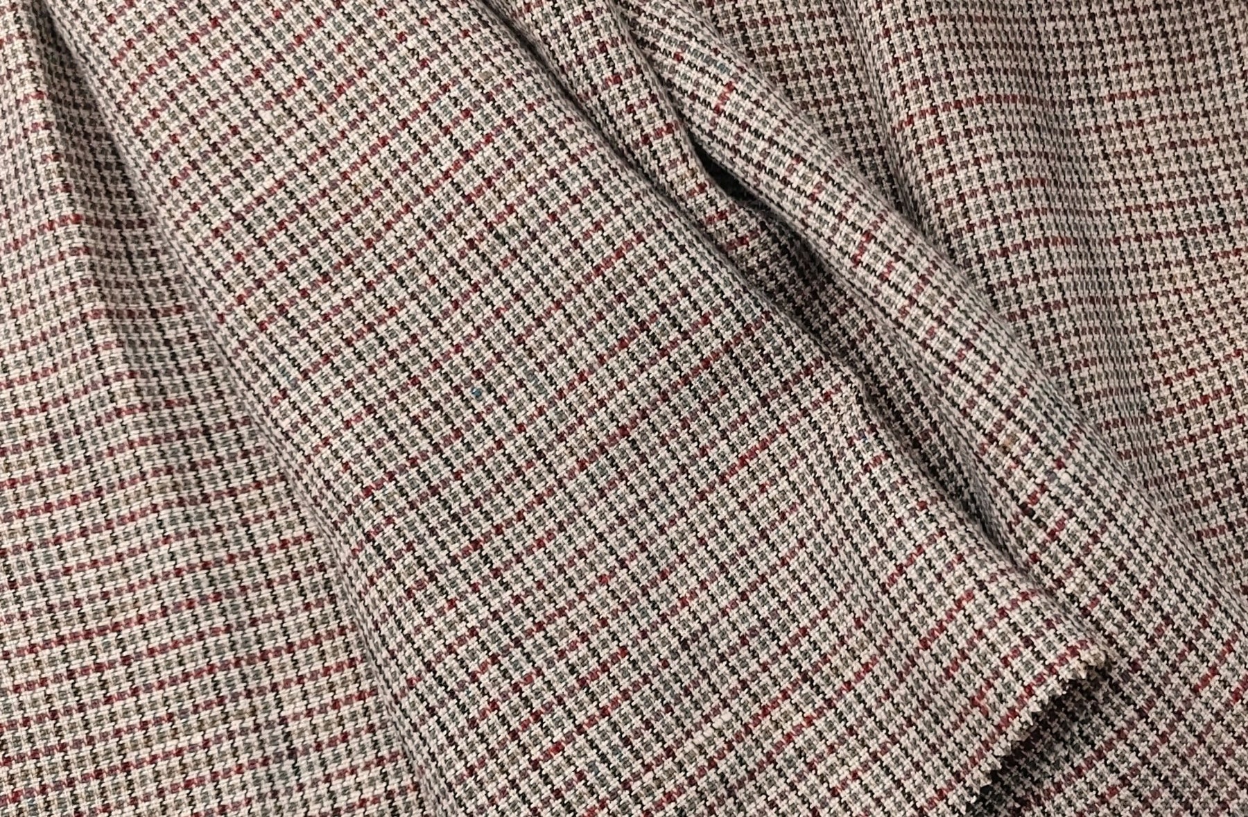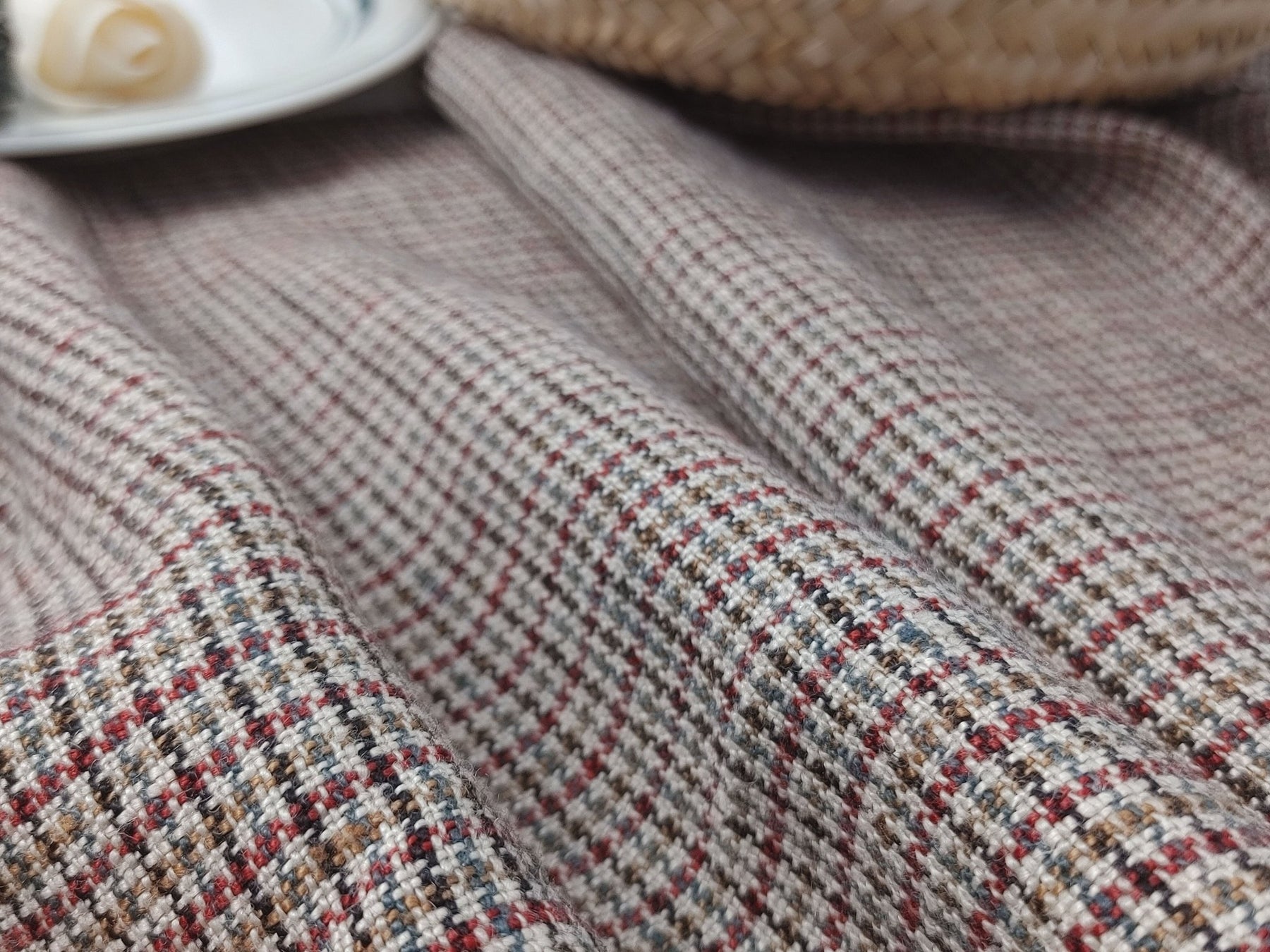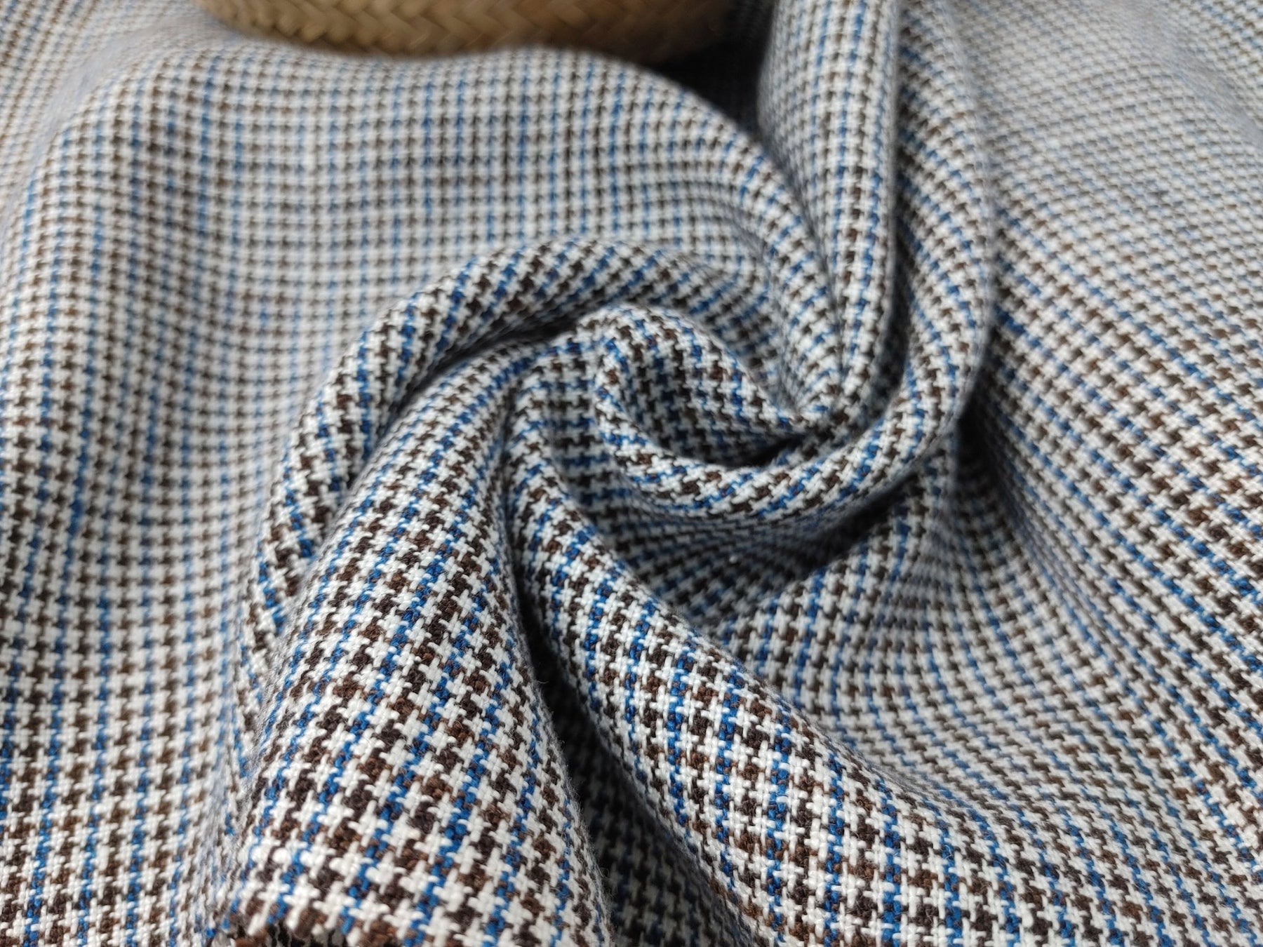 This fabric is exclusively crafted from 100% linen, embodying the essence of elegance with its distinctive houndstooth star-check pattern. The heavy weight of 278 g/sqm (8.82 oz per square yard) ensures a substantial and luxurious feel, making it an excellent choice for sophisticated projects.