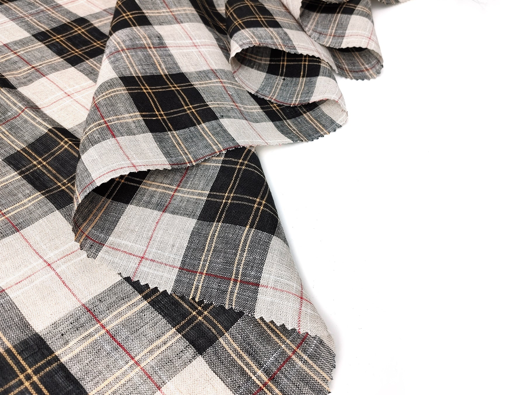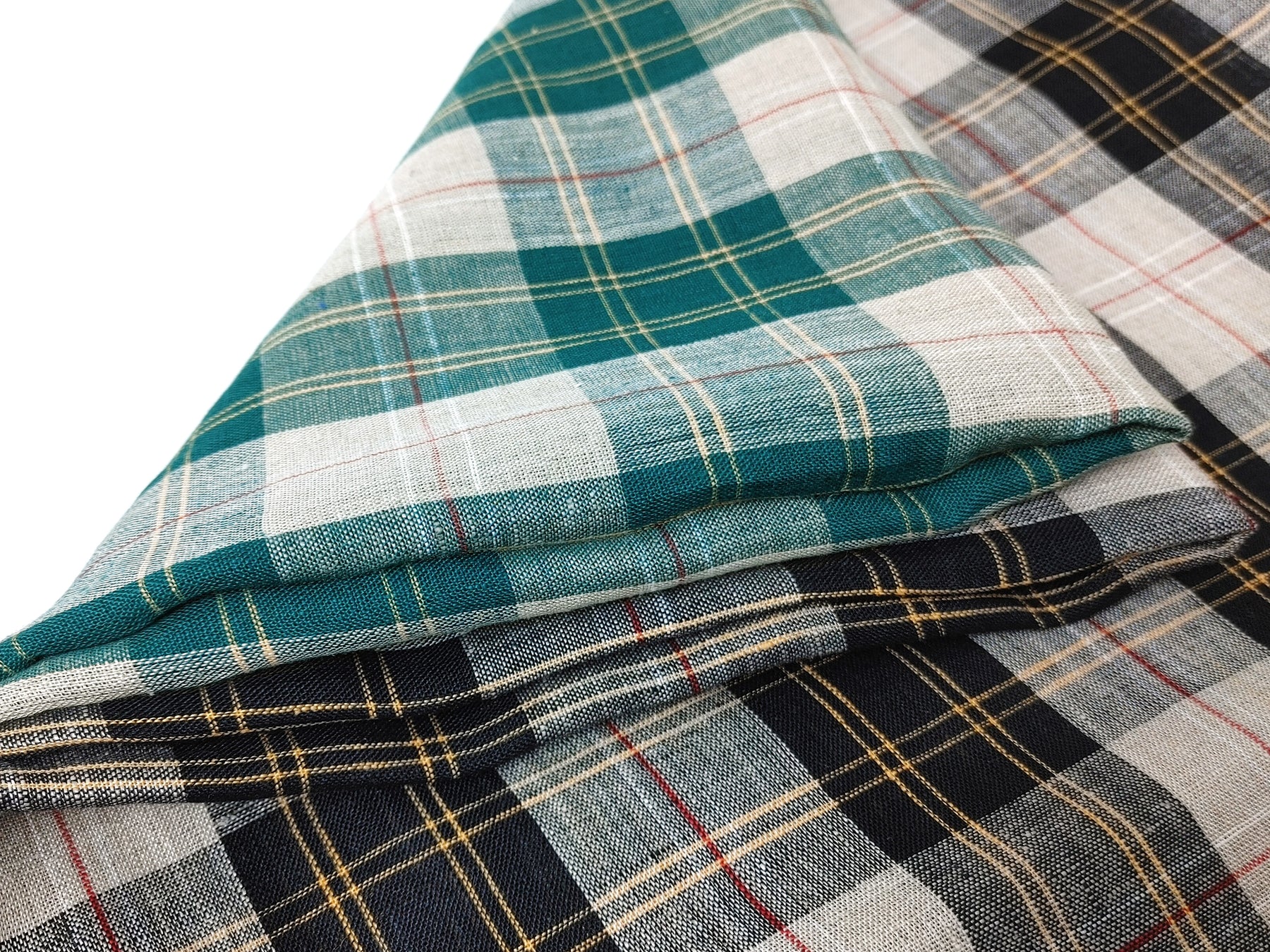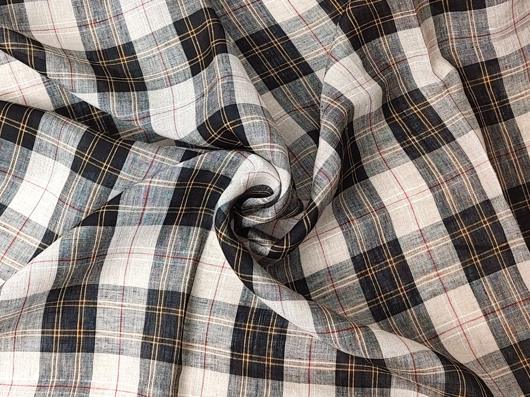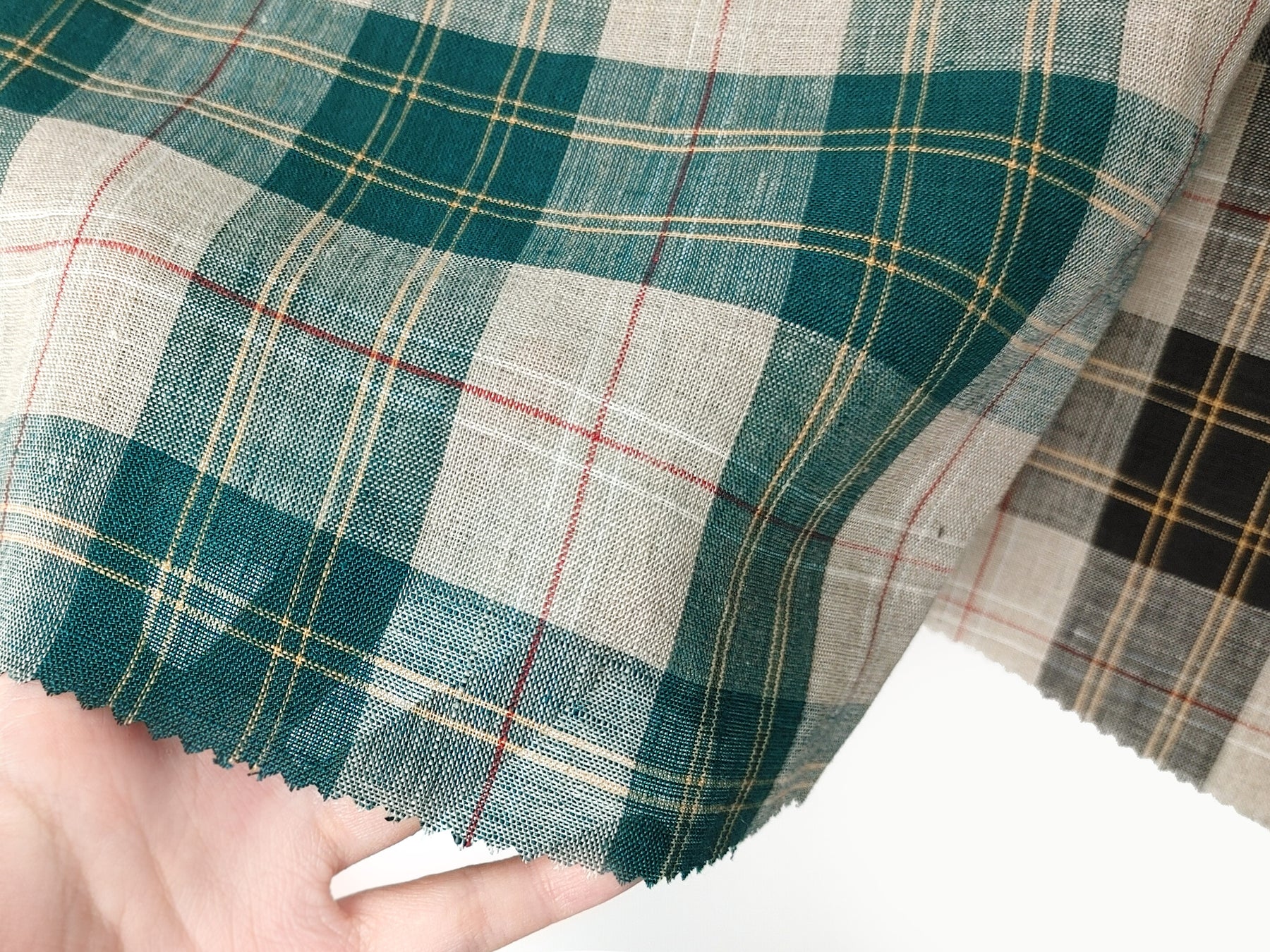 This 100% linen fabric strikes the perfect balance between classic charm and modern practicality. Lightweight and breathable, it features a stylish plaid pattern with a harmonious blend of green, black, natural, and pink. Ideal for creating airy garments or elegant home decor, this fabric adds both vibrancy and sophistication to your projects.