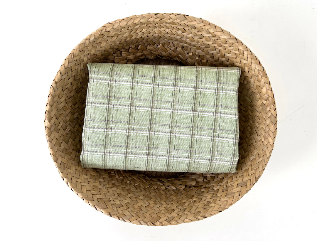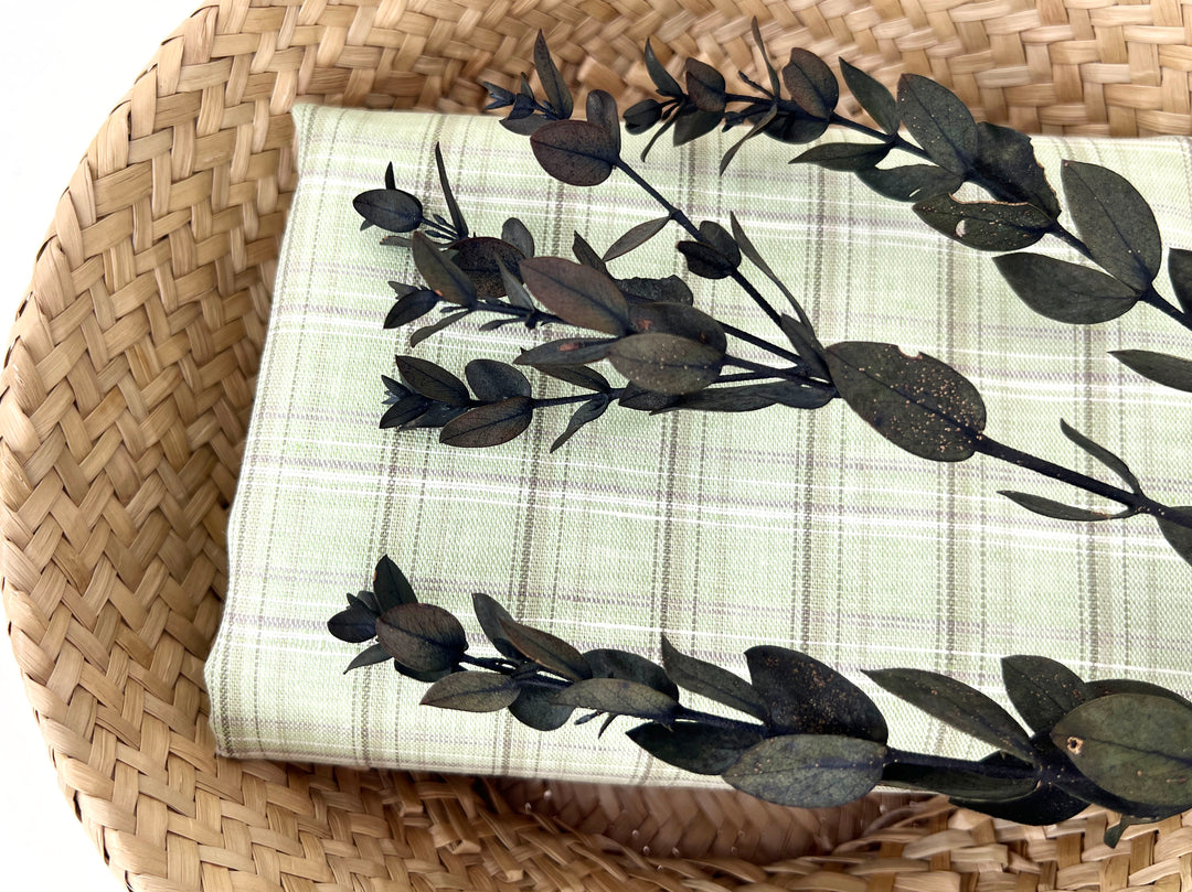 A timeless plaid design in a fresh green tone with soft grey and white accents, this linen cotton fabric blends natural texture with everyday versatility.
