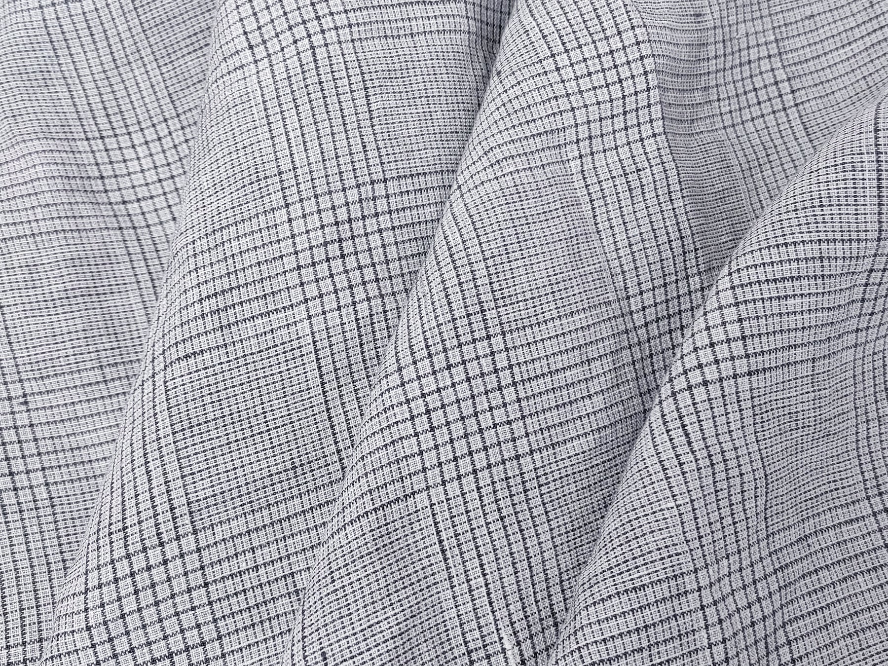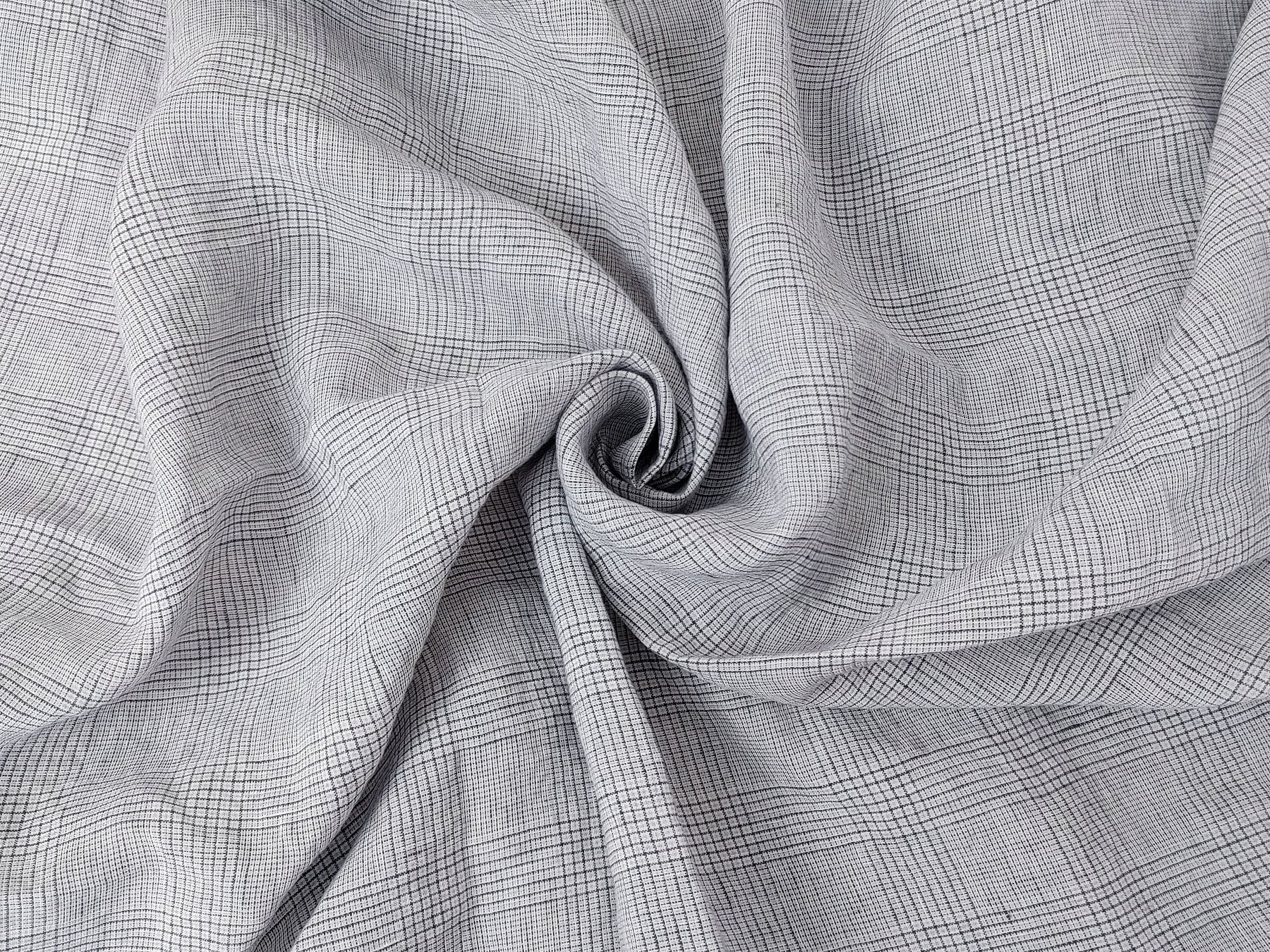 This 100% linen fabric in grey features a blend of small houndstooth and starcheck patterns, coming together to create an elegant glen plaid design. The intricate combination of these classic motifs adds depth and texture, making it a versatile choice for both apparel and interior projects. Pre-washed for a soft, smooth handfeel, this fabric showcases the natural breathability and beauty of linen. With no elasticity, it offers a structured yet comfortable drape, embodying the timeless sophistication and durability expected from high-quality linen.