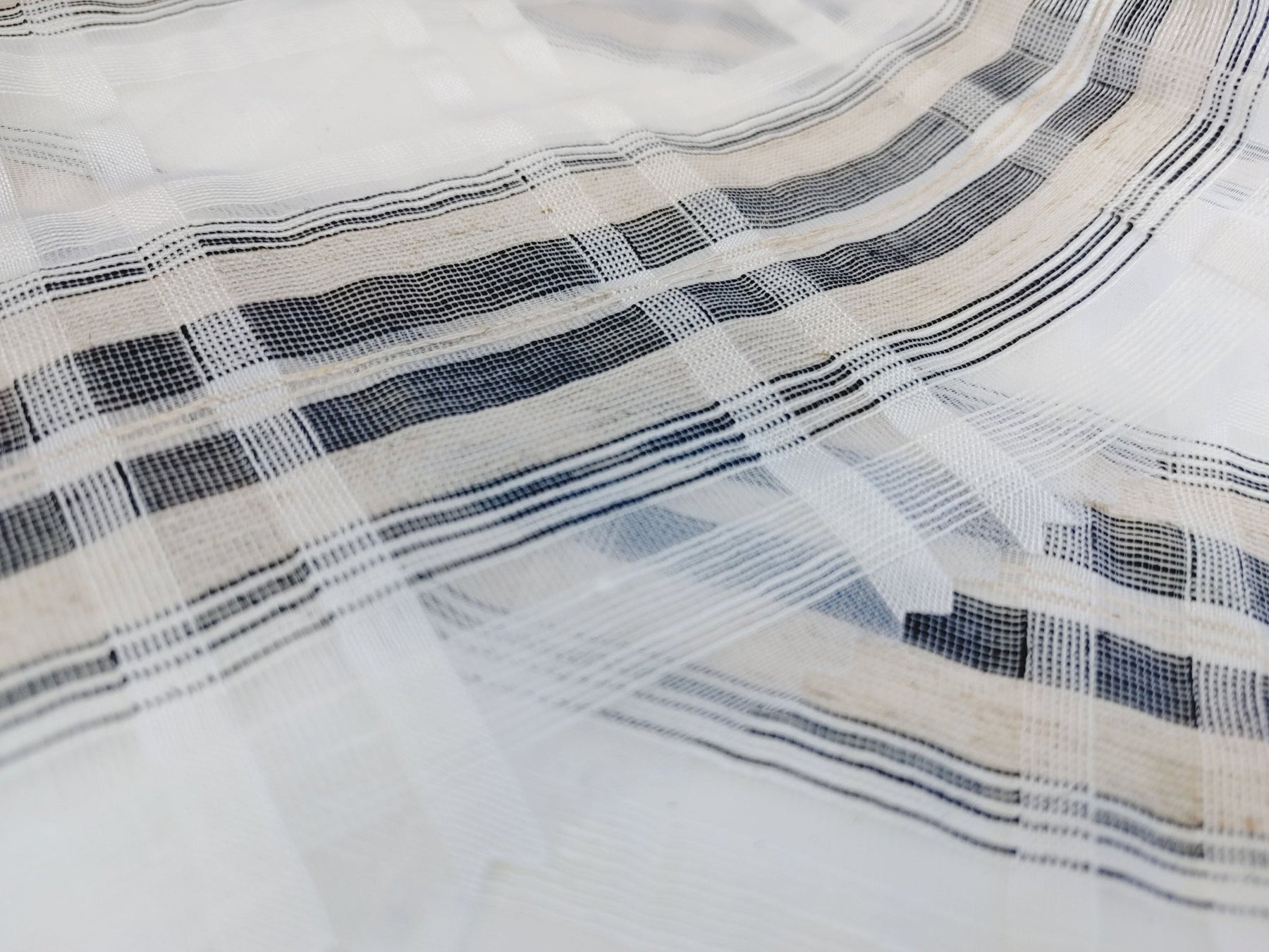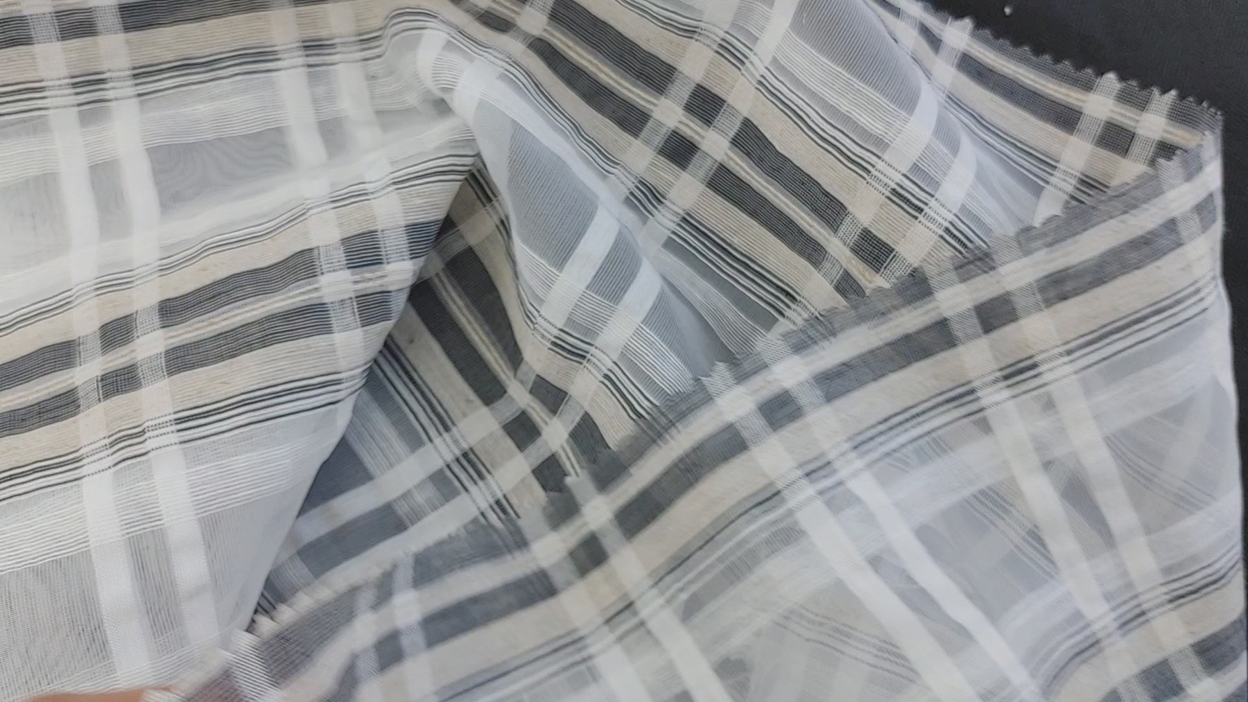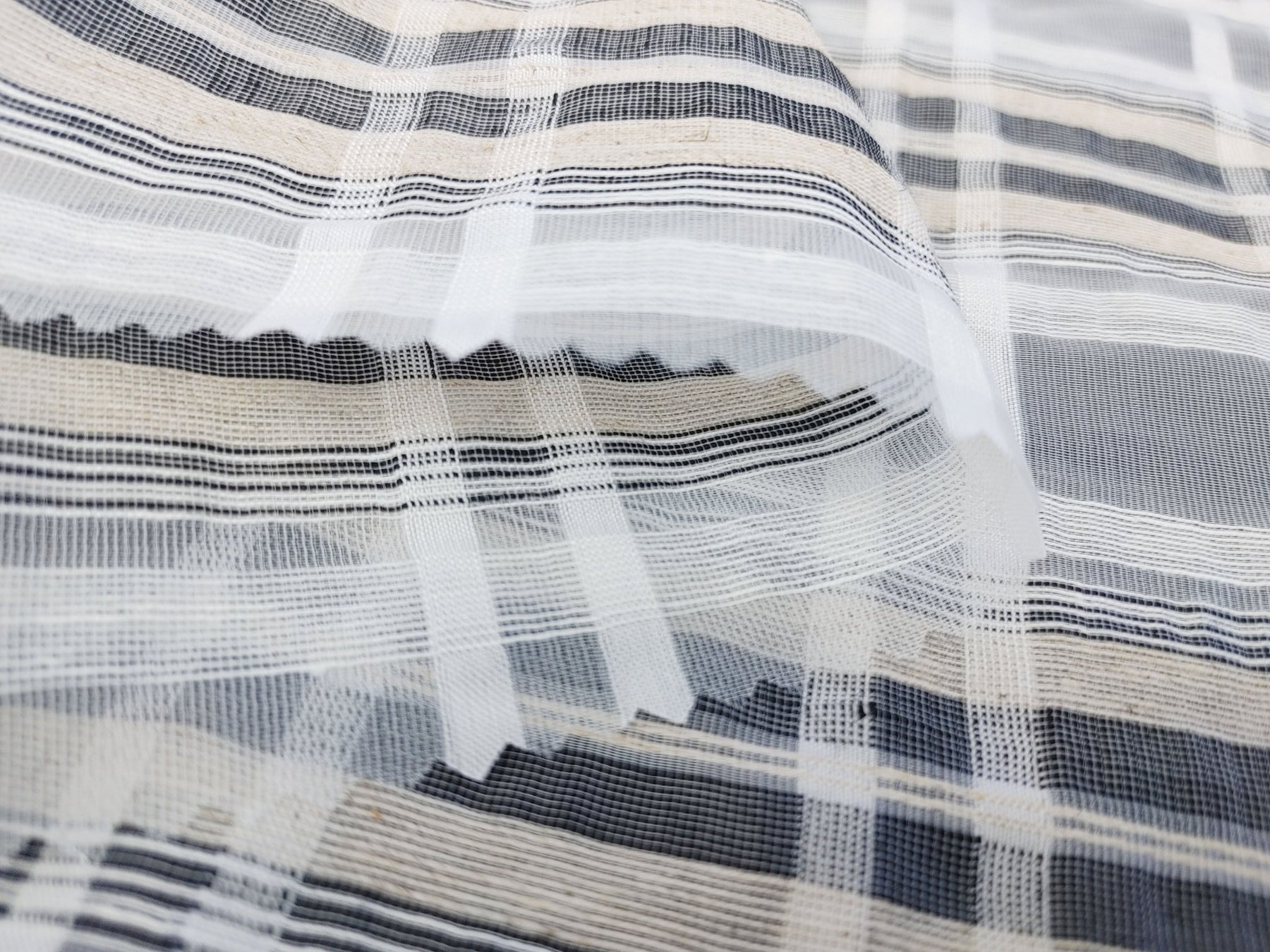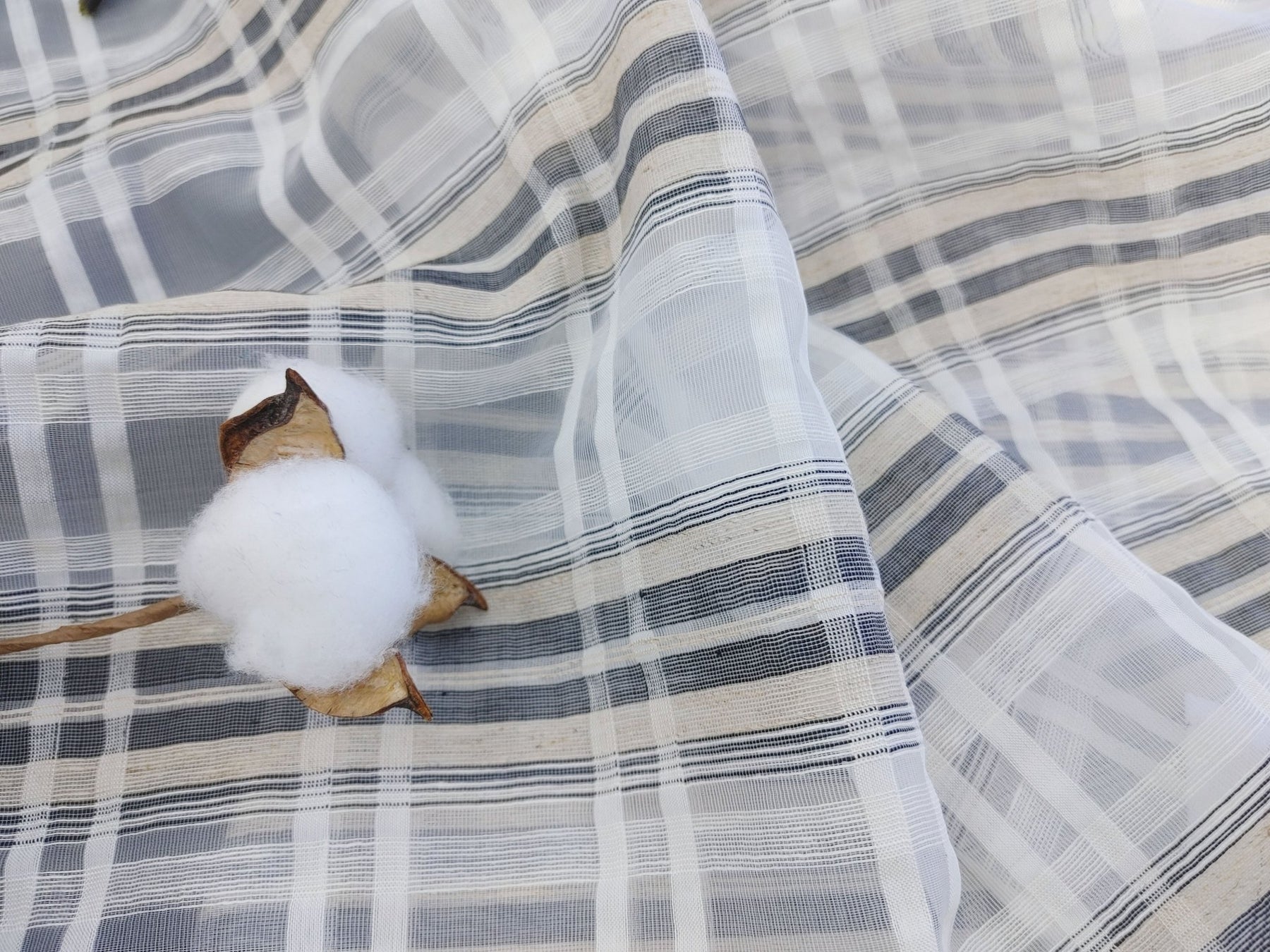 Immerse yourself in the understated allure of our grey melange plaid fabric, a masterpiece of textile artistry. Crafted with precision, this fabric seamlessly combines the delicate transparency of thin polyester filament yarn with the sophistication of black-colored melange linen yarn and the natural elegance of neutral-colored yarn. The result is a visual symphony that brings modernity to the timeless charm of a classic plaid pattern.