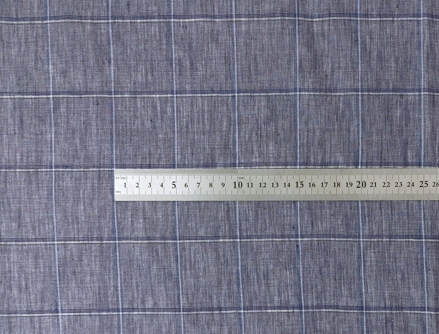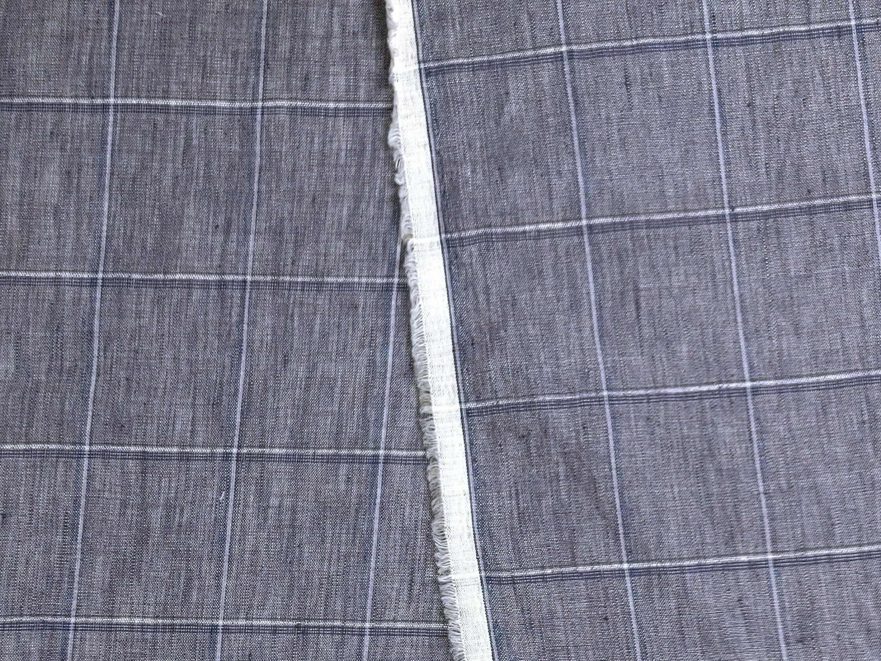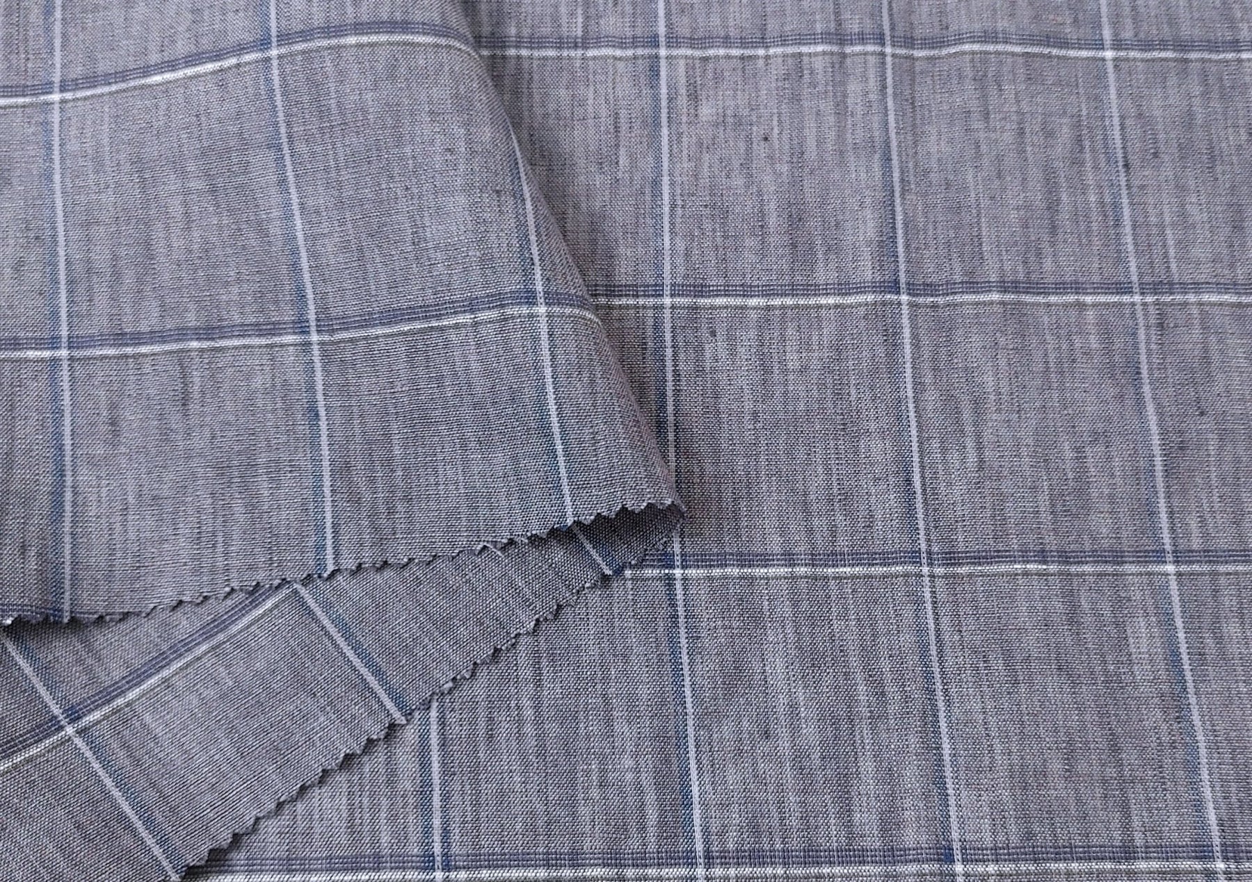 Lightweight Grey Window Pane Check: 100% Linen Fabric 3850