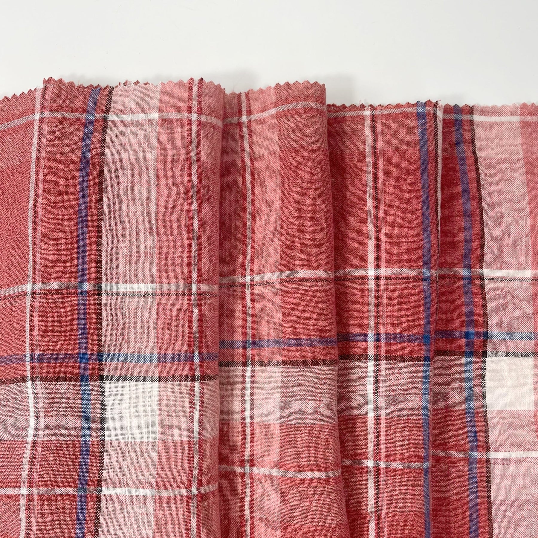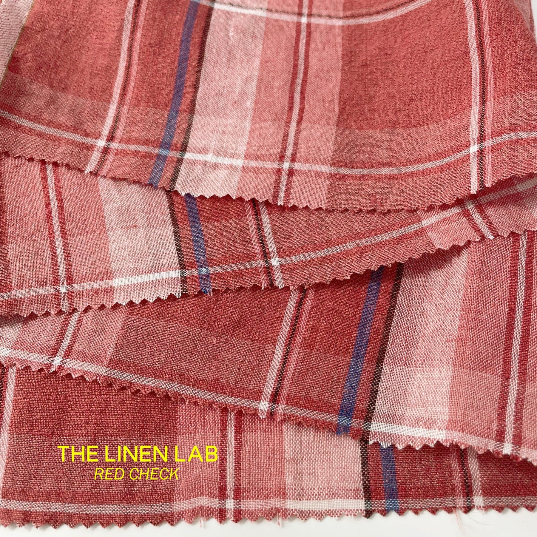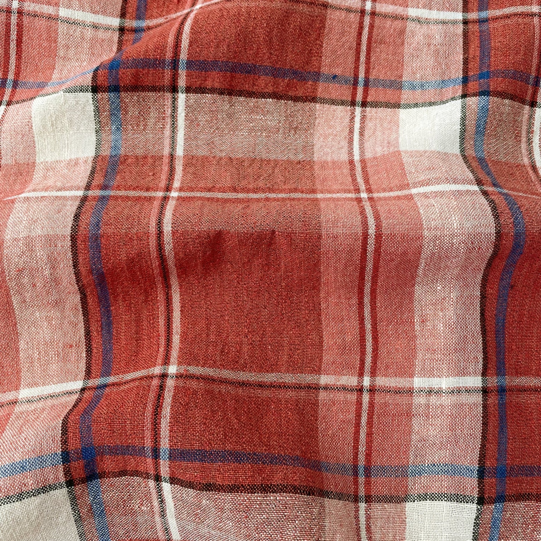 Linen Cotton Polyester Red Check Fabric (7159) - The Linen Lab - Red