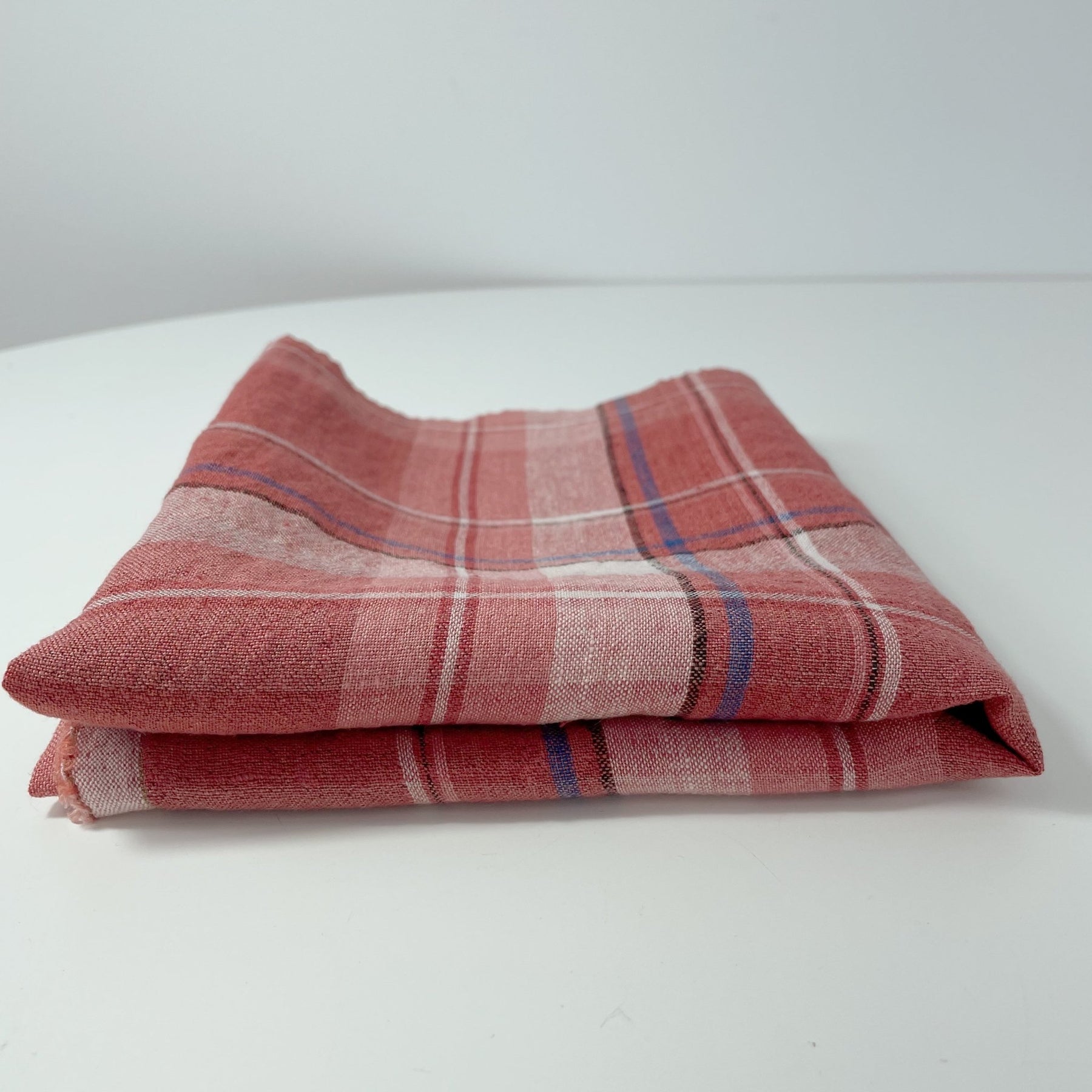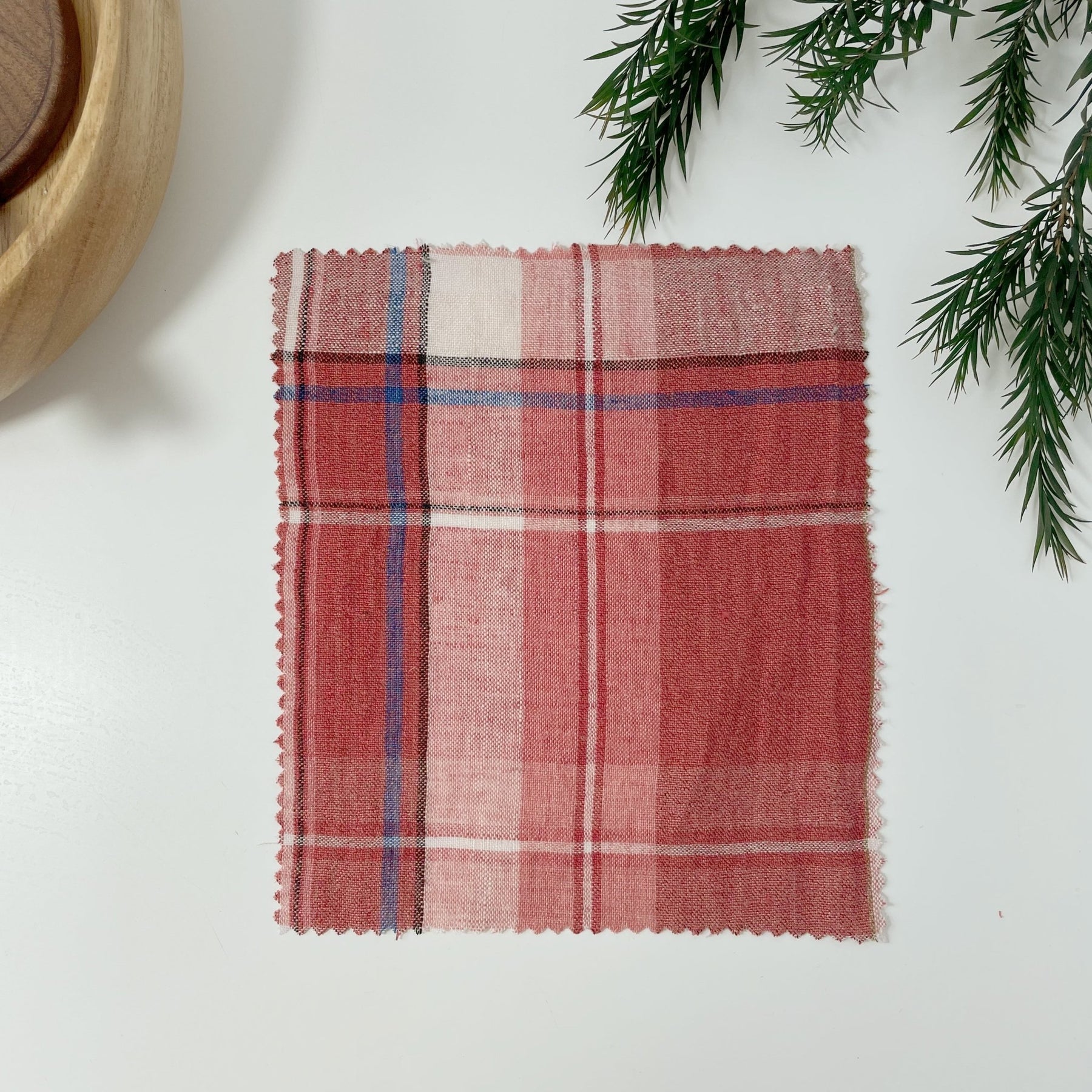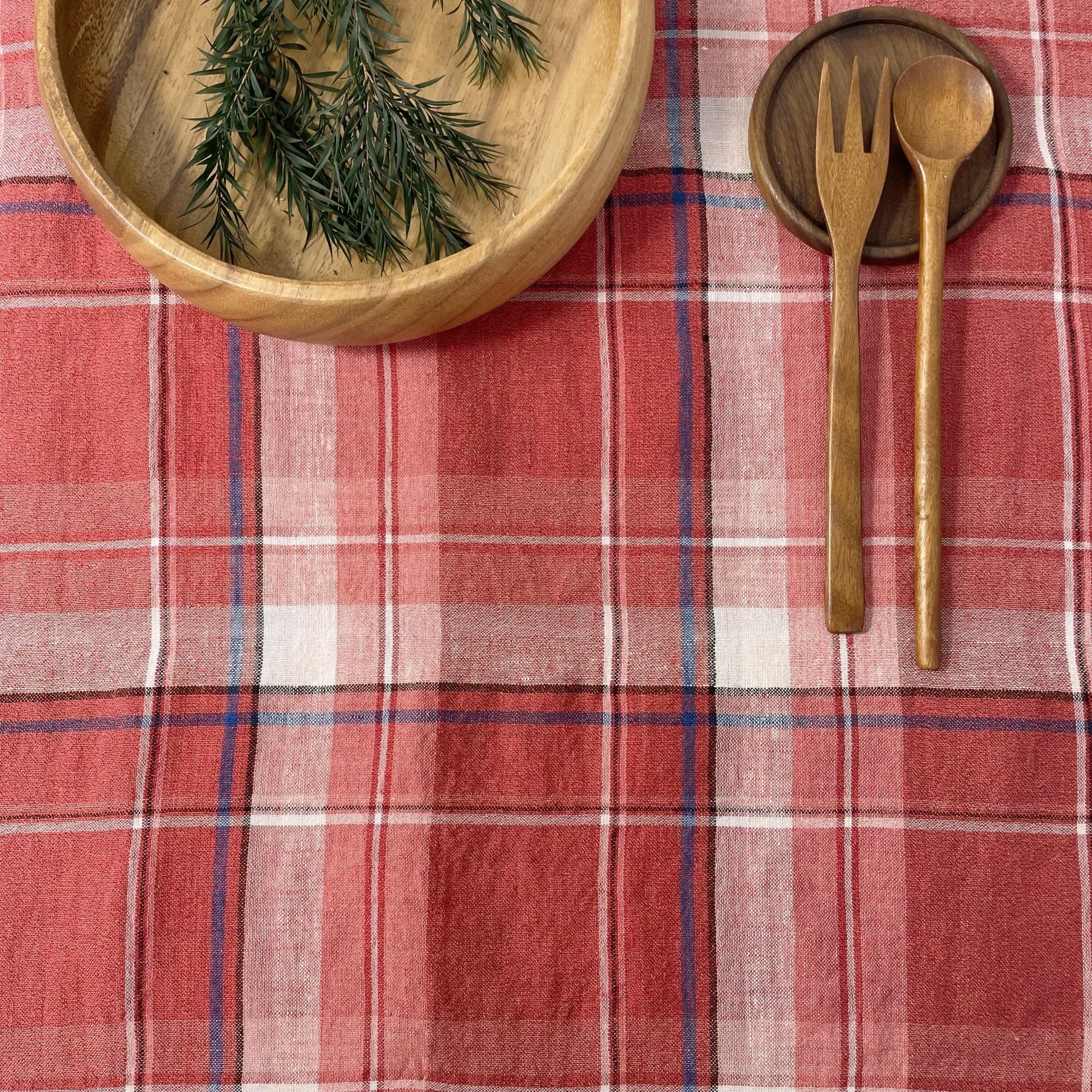 Linen Cotton Polyester Red Check Fabric (7159) - The Linen Lab - Red