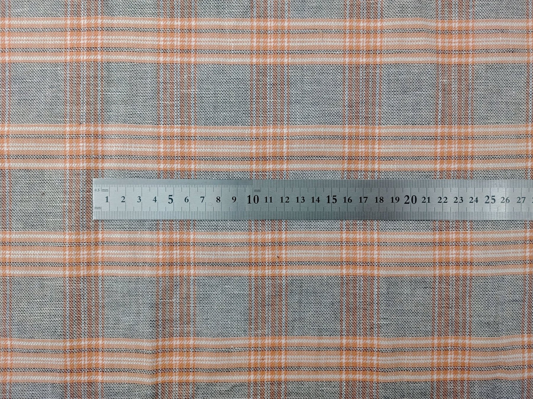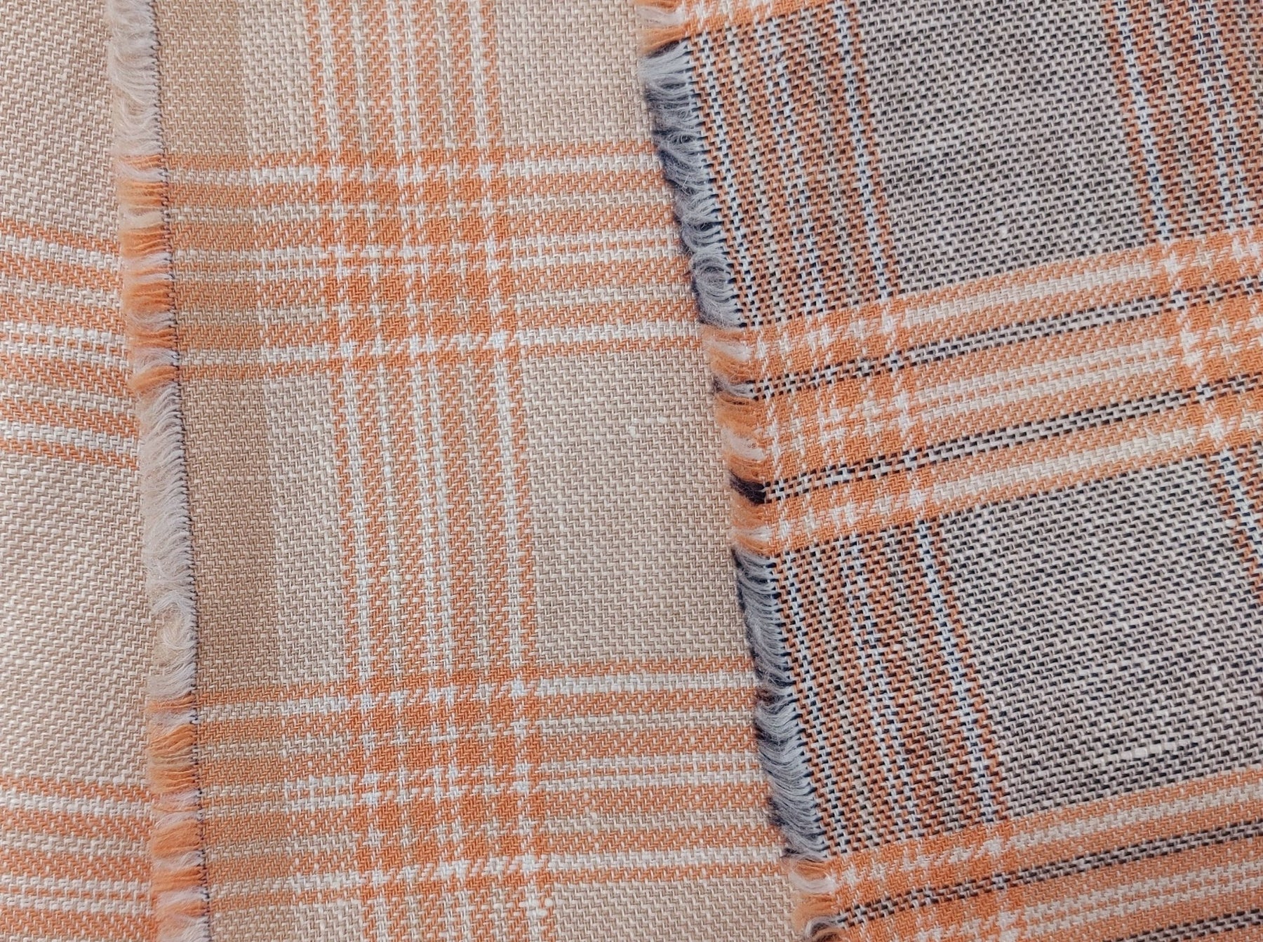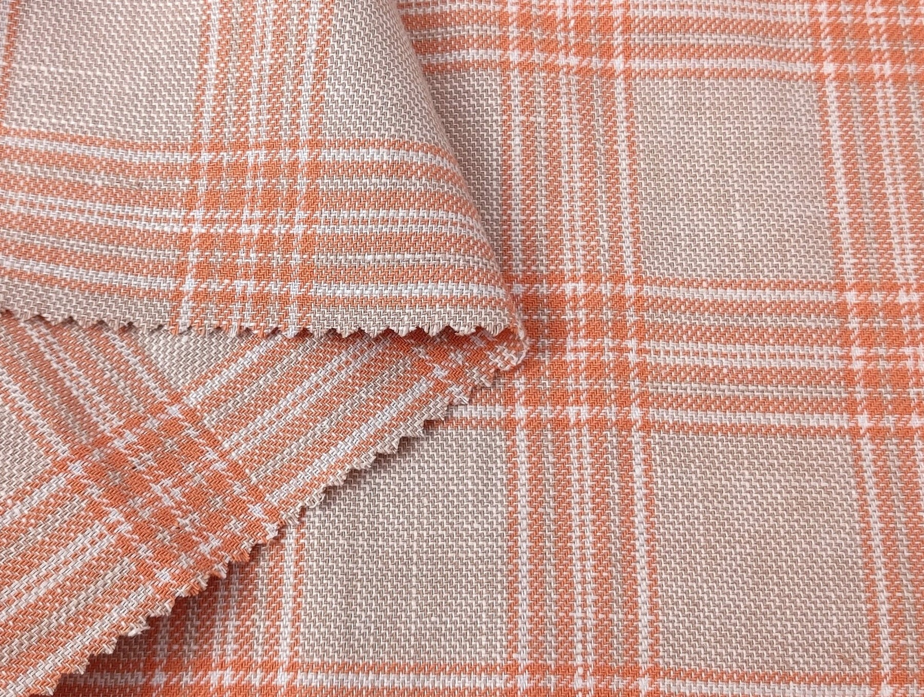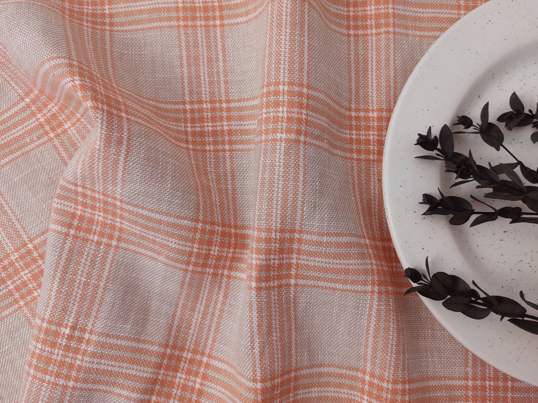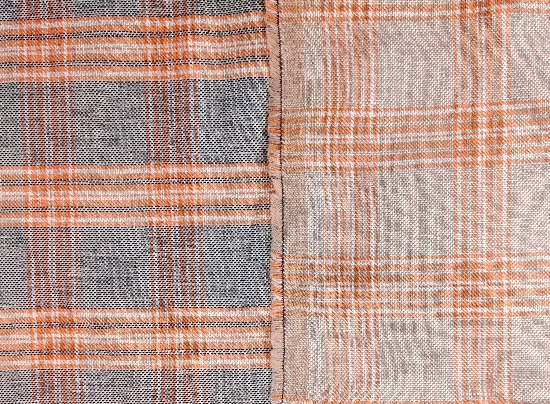 Introducing Linen Cotton Twill Plaid Fabric, available in orange and navy colors. This medium-weight fabric, composed of 45% linen and 55% cotton, strikes a balanced combination of natural elegance and softness.