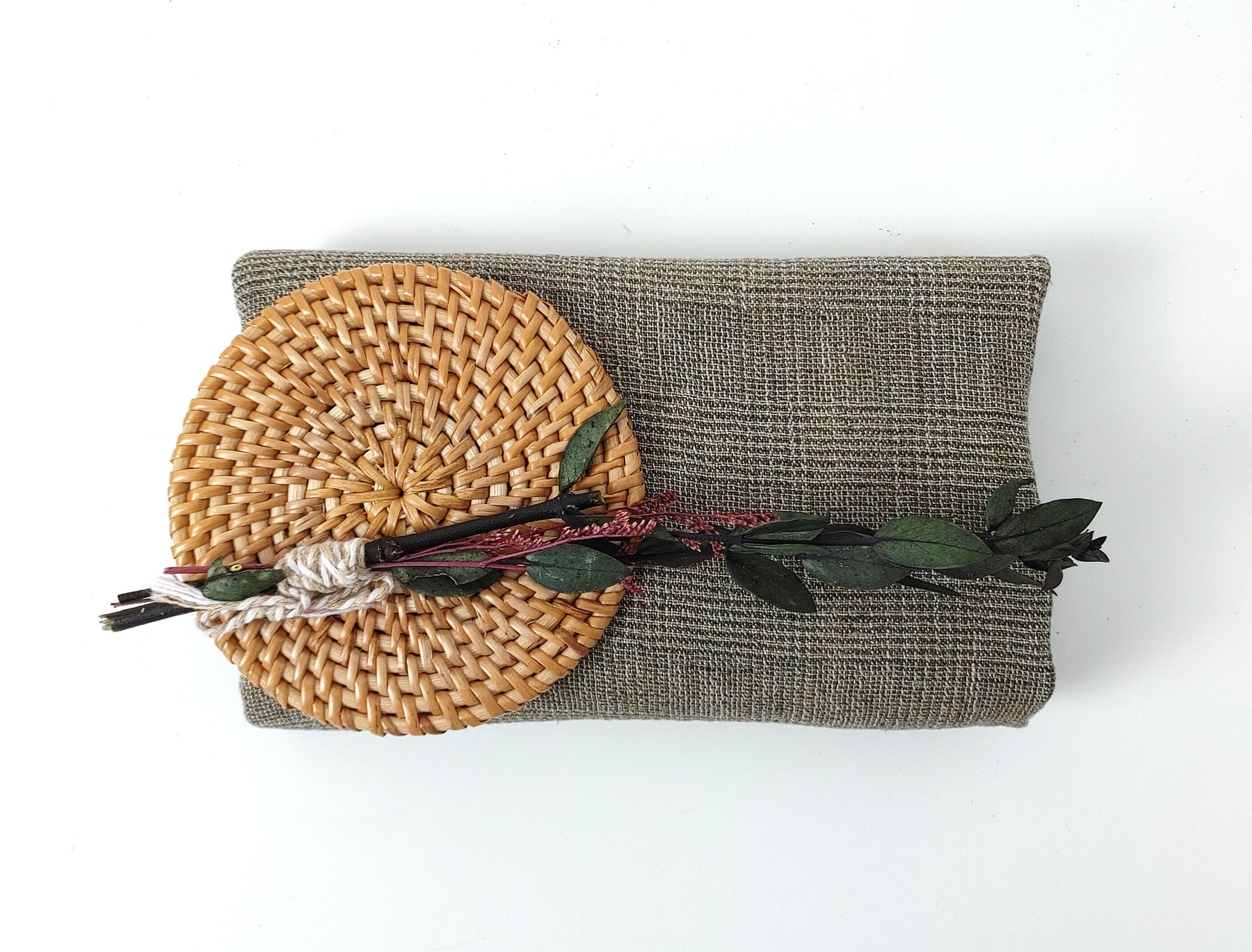 Linen and Nylon yarns are twisted together to make special effect.