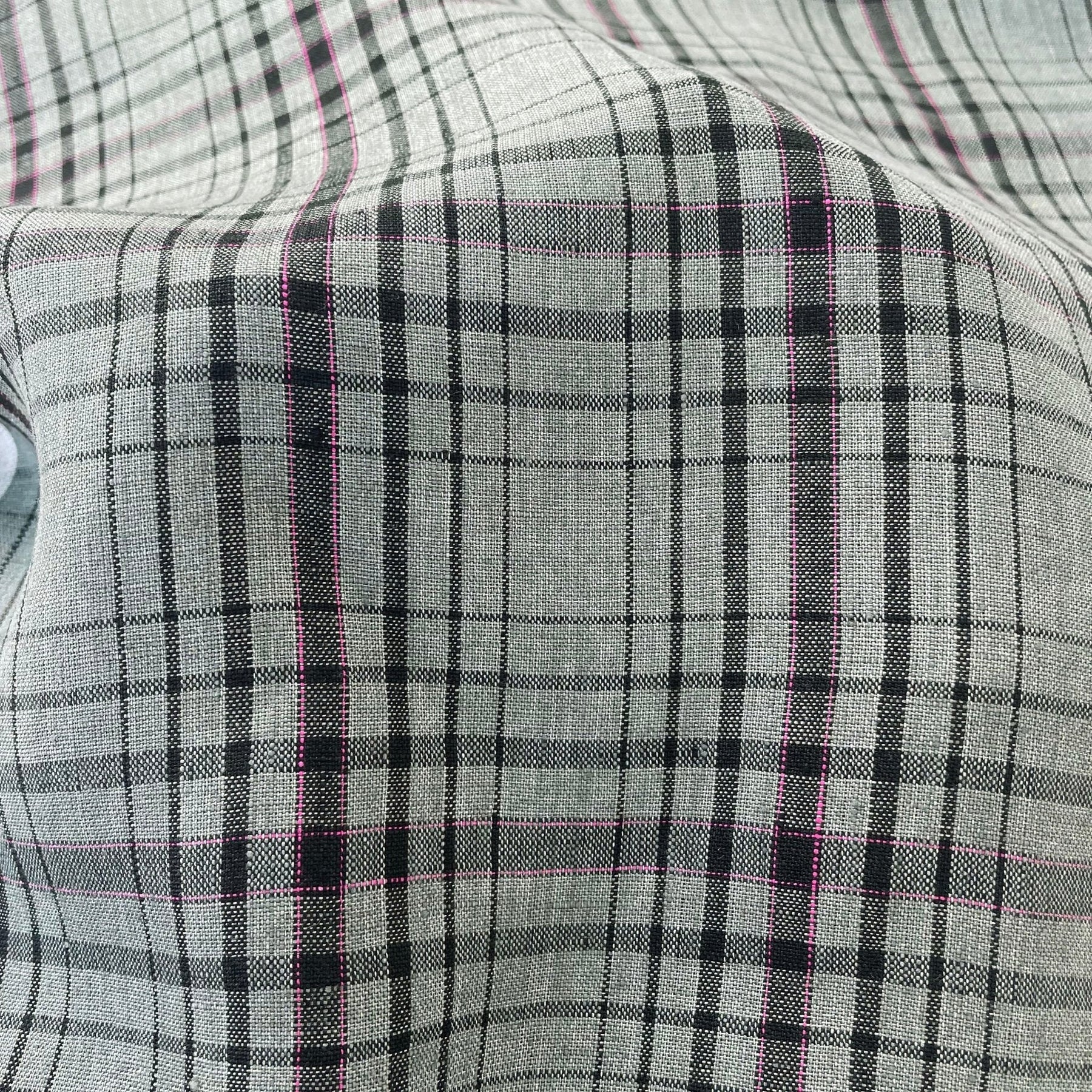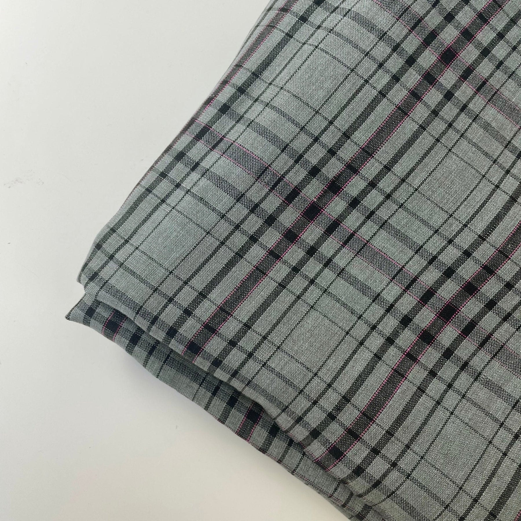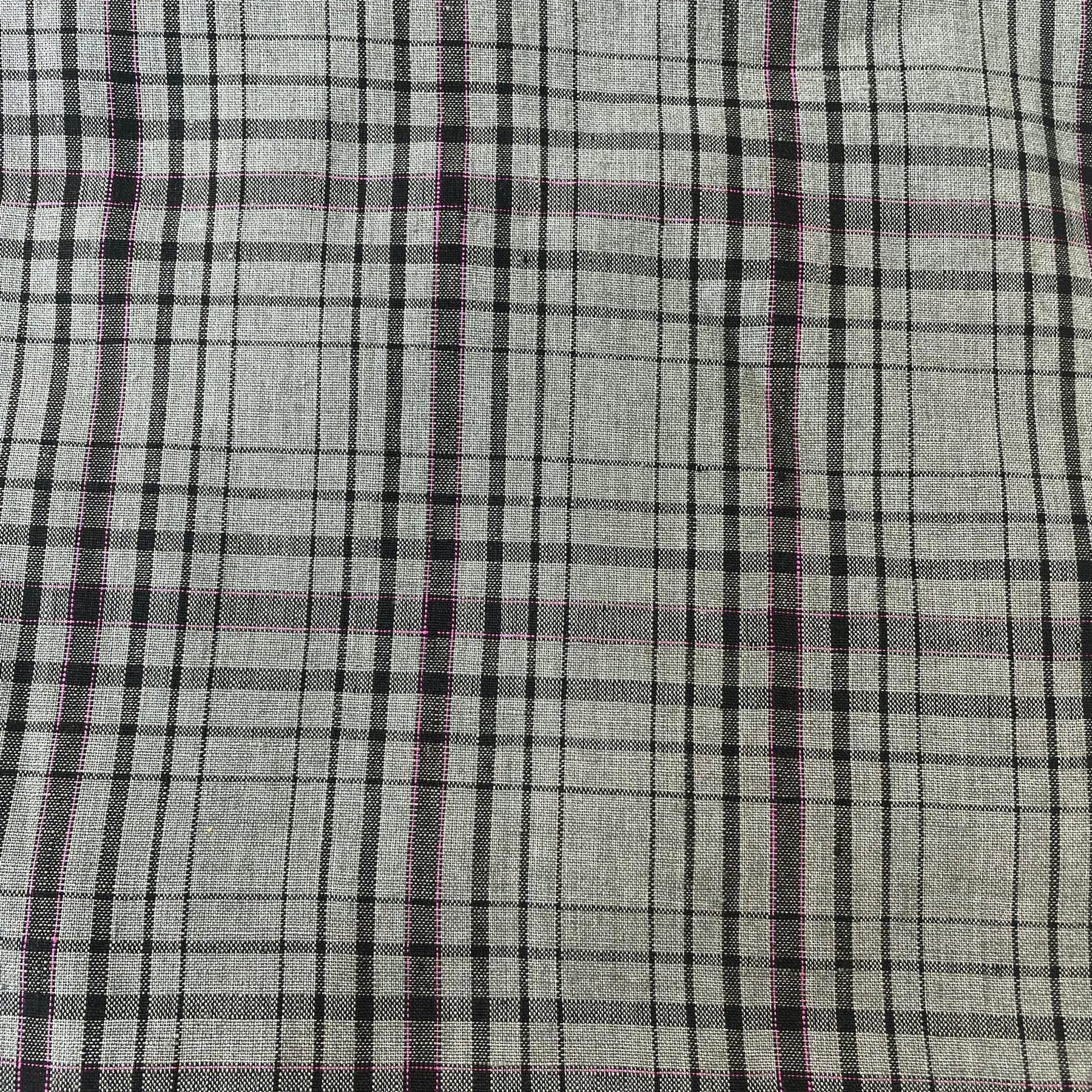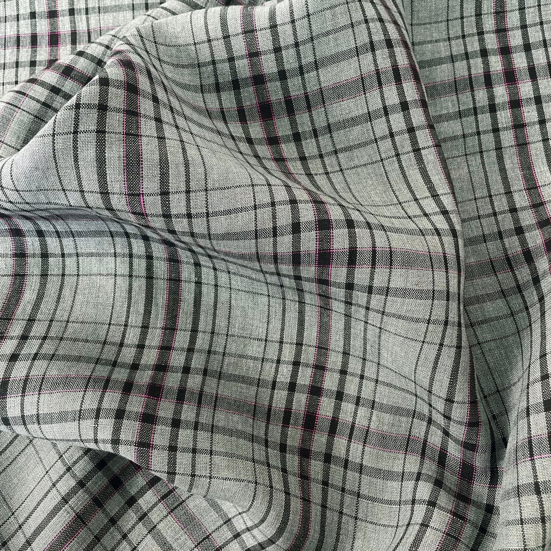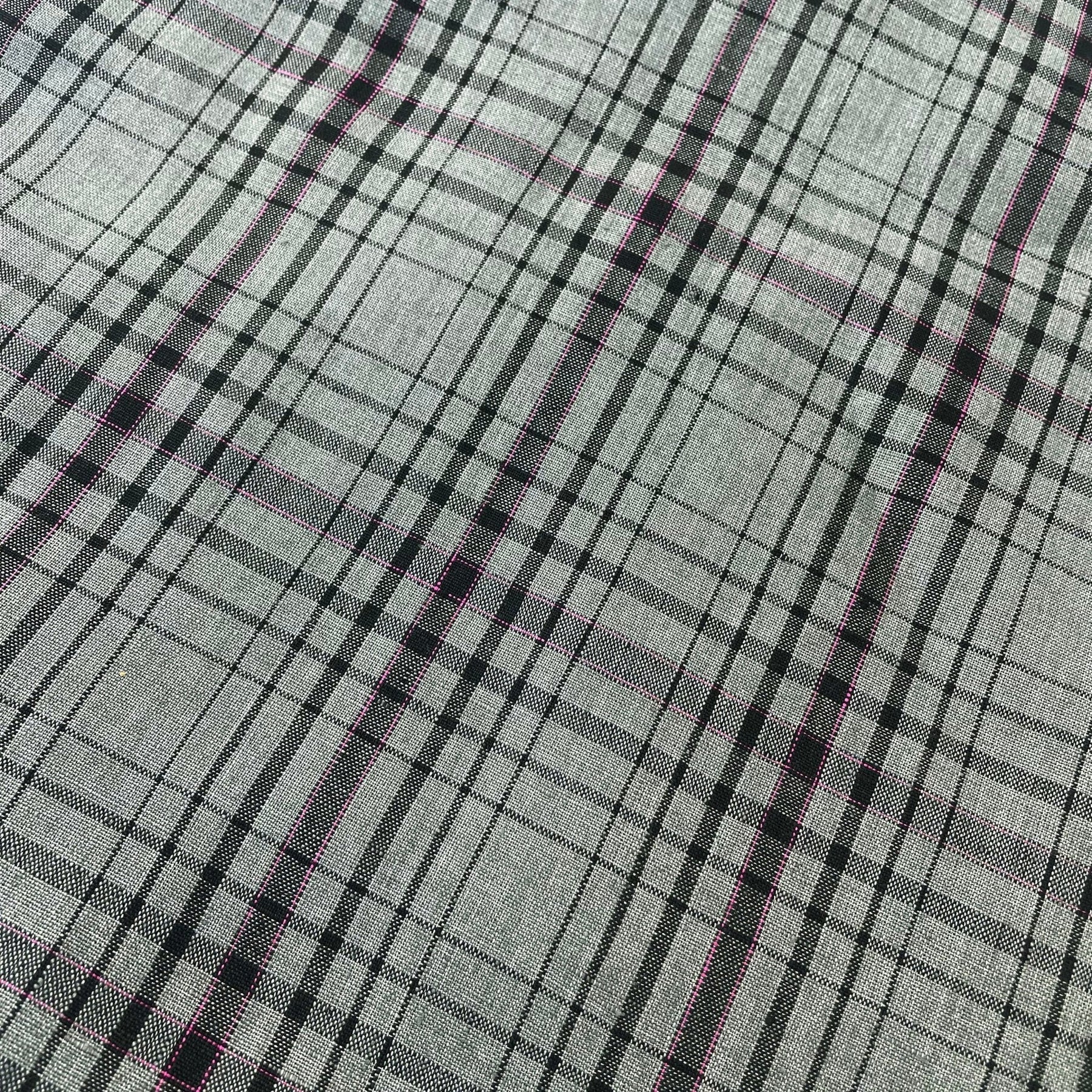 For clothing, you could make a variety of garments such as shirts, skirts, dresses, or even pants. The simple check pattern would work well for any of these items, and the pink pin could be used as a pop of color for details such as buttons, pockets, or contrast stitching.